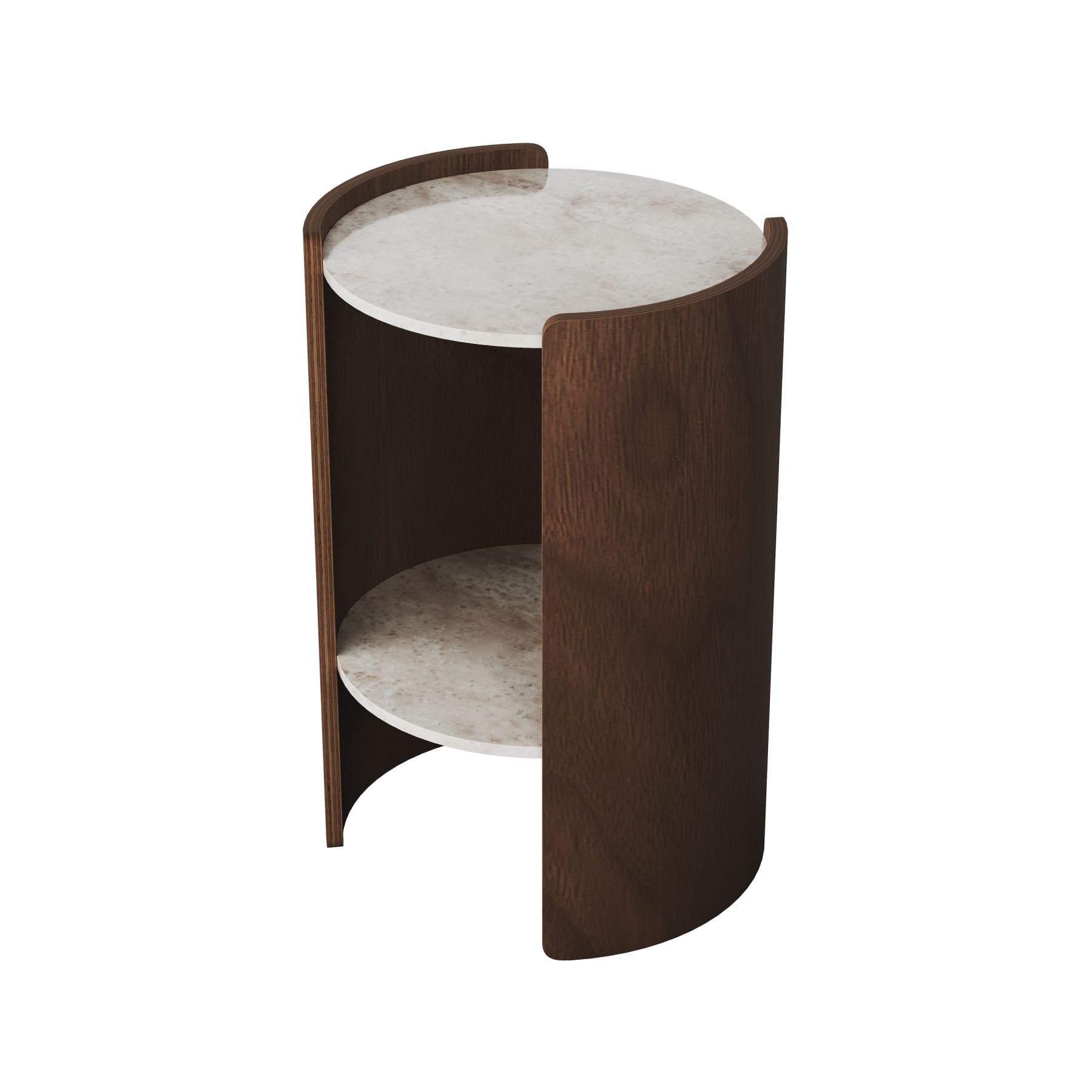 При производстве используется шпон ореха, покрытие белый полупрозрачный лак, столешница акриловый камень