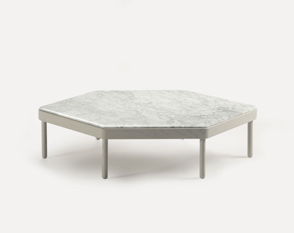 При разработке приставных столиков Mosaico, которые комбинируются с небольшими диванами и пуфами в студии Yonoh вдохновлялись валенсийской плиткой. Все понимают, что из отдельных плиток разной формы и цвета можно составить огромное количество разных рисунков. Так и в случае с мебелью Mosaico: отдельные элементы стыкуются друг с другом, а чтобы композиция не получилась скучной, похожей по форме на кроссворд, дизайнеры добавили кривые и диагонали. При желании вы легко замкнёте мебель в круг благодаря шестиугольным столикам.