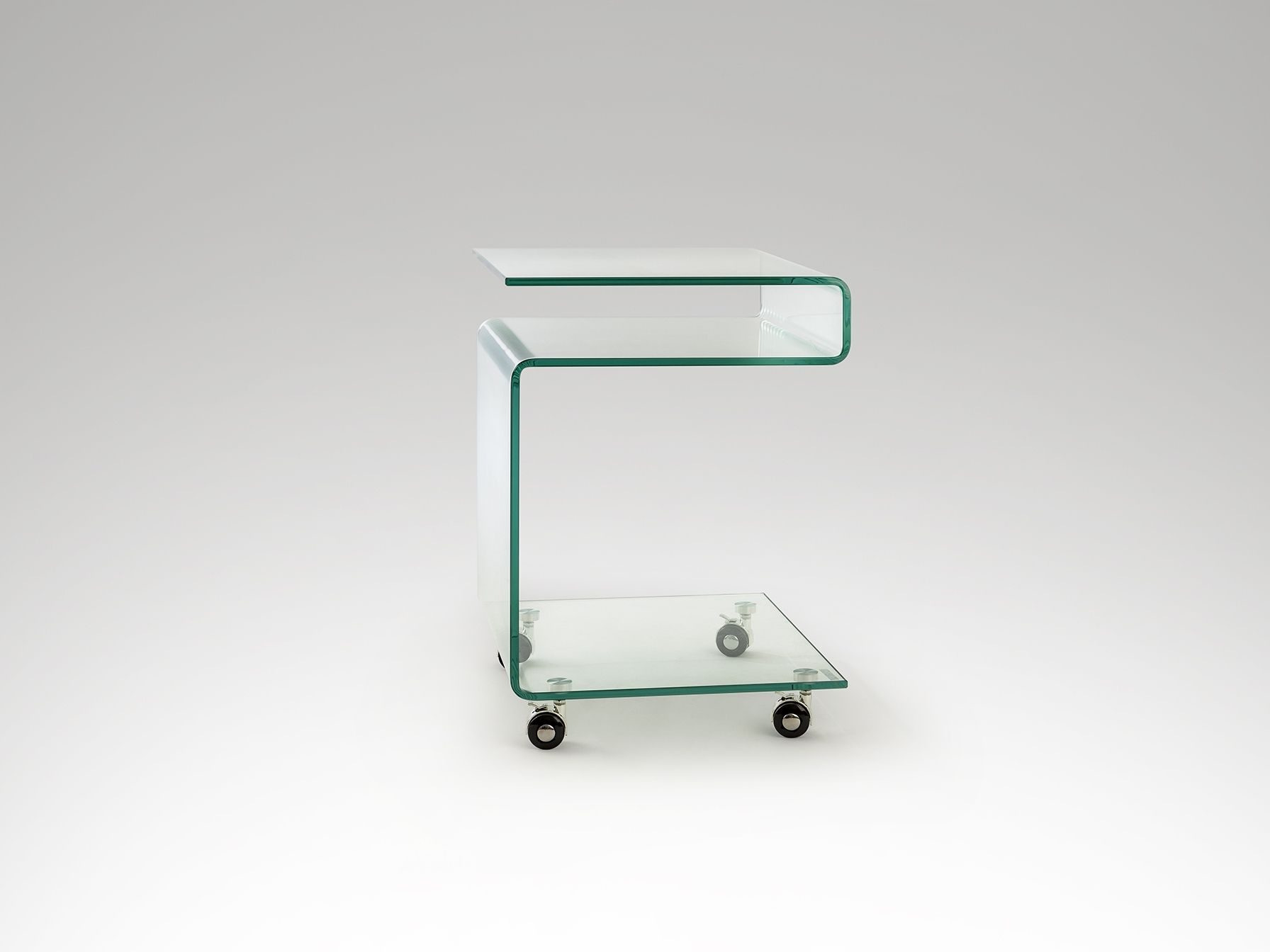 Журнальный столик на колесиках из гнутого стекла 10 мм, прозрачный.