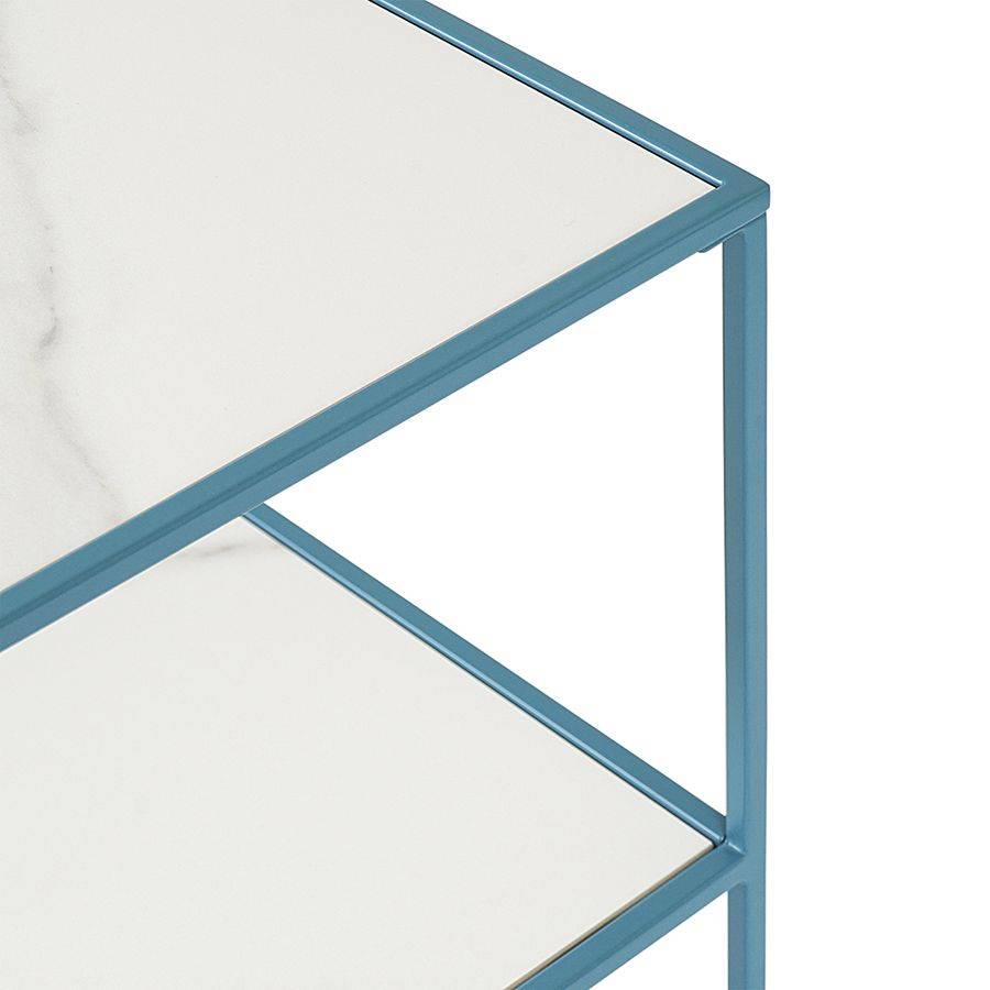 Материалы: столешница — керамика, каркас — сталь. Размеры: 38х38х52 см. Цвет: бирюзовый.