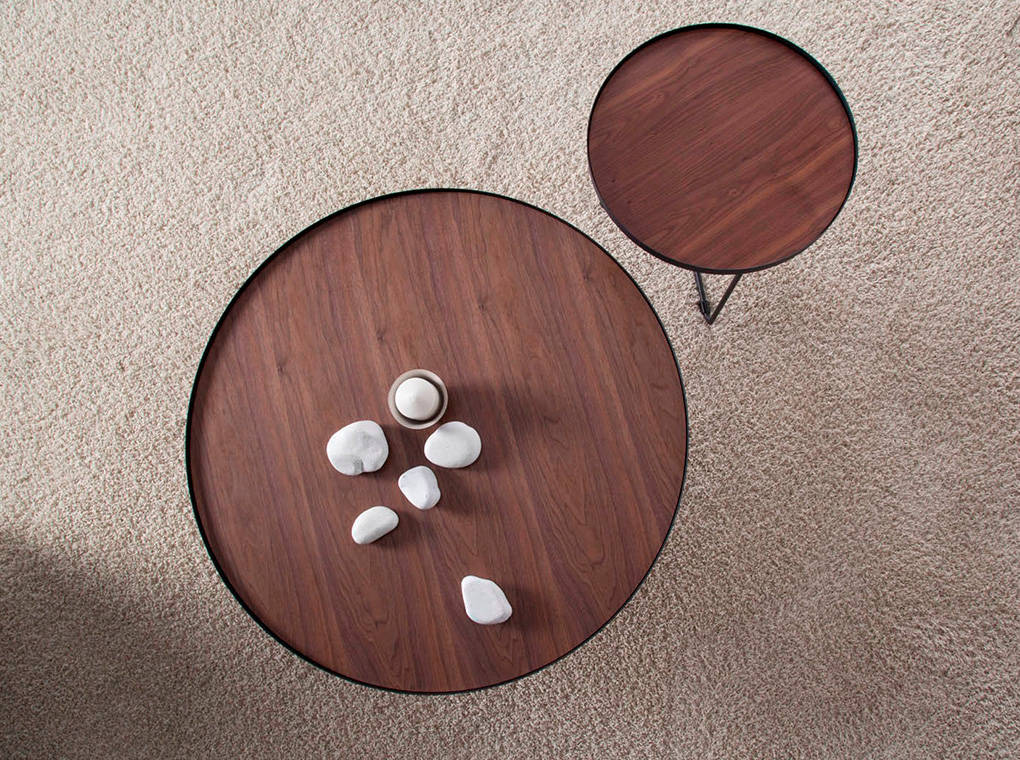 Журнальный столик C047 очарует всех поклонников незамысловатых предметов интерьера, относящихся к минимализму. Здесь тонкие сварные ножки едва заметны в сравнении с большой столешницей, которая подчеркнуто выделена обручем. Изделие не будет загромождать пространство, но при этом в полной мере справится со своим функционалом. Столик имеет круглую форму. Столешница диаметром 47 см выполнена из МДФ и шпона орехового дерева (в базовом фабричном варианте). Этот цвет широко применим в европейских интерьерах, легко гармонирует со многими цветовыми решениями. Столешница окантована металлическим обручем, к которому приварены опоры. Вся конструкция покрыта черной порошковой краской, которая защищает металл от негативного воздействия влаги, механических повреждений. В свою очередь, ограничительный обруч также защищает края столешницы от сколов и порезов. Три опоры внизу соединяются друг с другом в тройную ось, обеспечивая равномерное распределение нагрузки и прочность для всей конструкции. Масса столика составляет 8 кг, высота – 45 см. В коллекции журнальных столиков от фабрики Angel Cerda представлена аналогичная модель С046, но с другими габаритами.