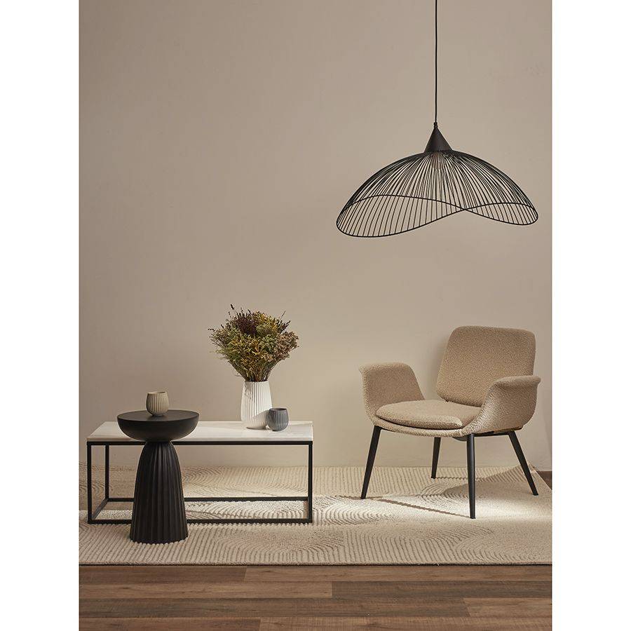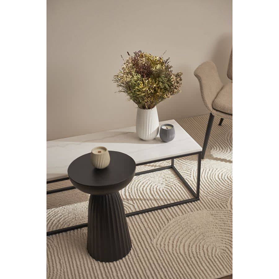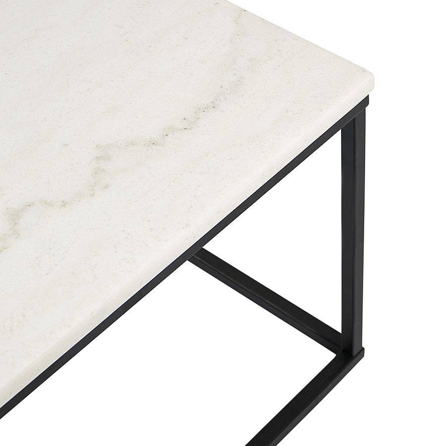 Материалы: столешница — мрамор, каркас — сталь с порошковым покрытием. Размеры: 90х40х35 см. Цвет: белый/черный.