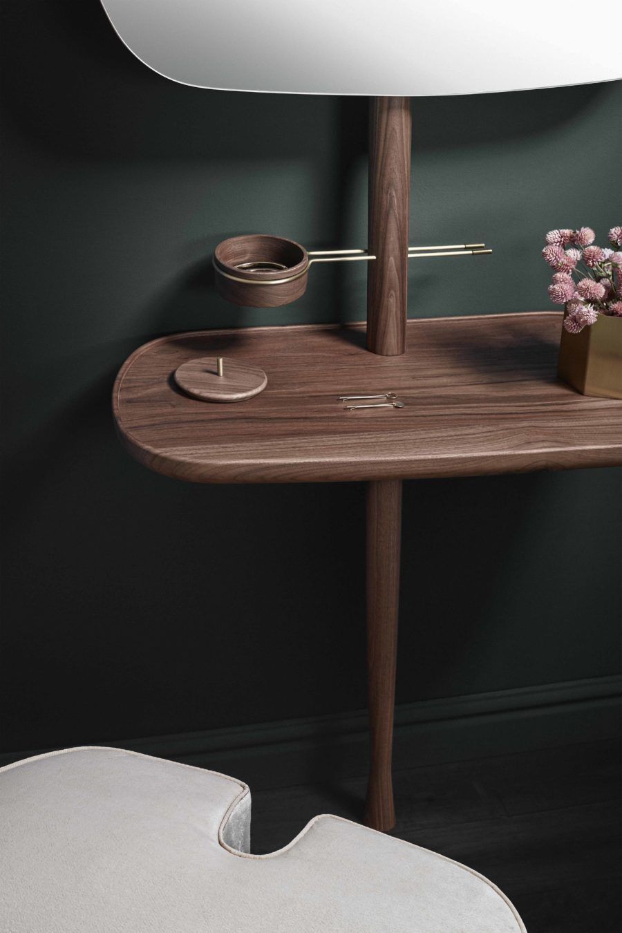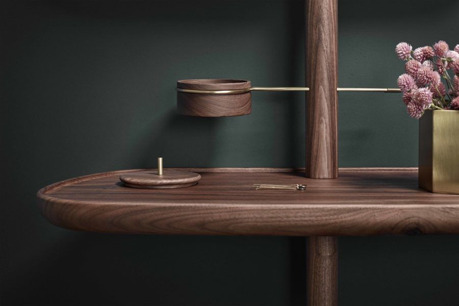 Мебель из коллекции Nomon Home позволяет получать огромное удовольствие от рутинных моментов, которые мы привыкаем не замечать за повторяемостью действий. С предметами интерьера Nomon элементарное возвращение домой превращается в маленькое событие.Кажется, будто дизайнер Андрес Мартинез бросает вызов физике, создавая объёмную конструкцию на ножке из древесины грецкого ореха. На самом деле в навесных частях модуля находятся скрытые крепления, надёжно фиксирующие зеркало и полку у стены. Расположение зеркала вариативно: можно поместить его вертикально или горизонтально. Металлические элементы конструкции выполнены из полированной латуни.Полка и зеркало для прихожей Momentos выделяются запоминающимся образом, а их функциональность безупречна: теперь все «кочующие» аксессуары находятся на своих местах. Кстати, Momentos можно купить не только в прихожую, но и в гардеробную или личную комнату.