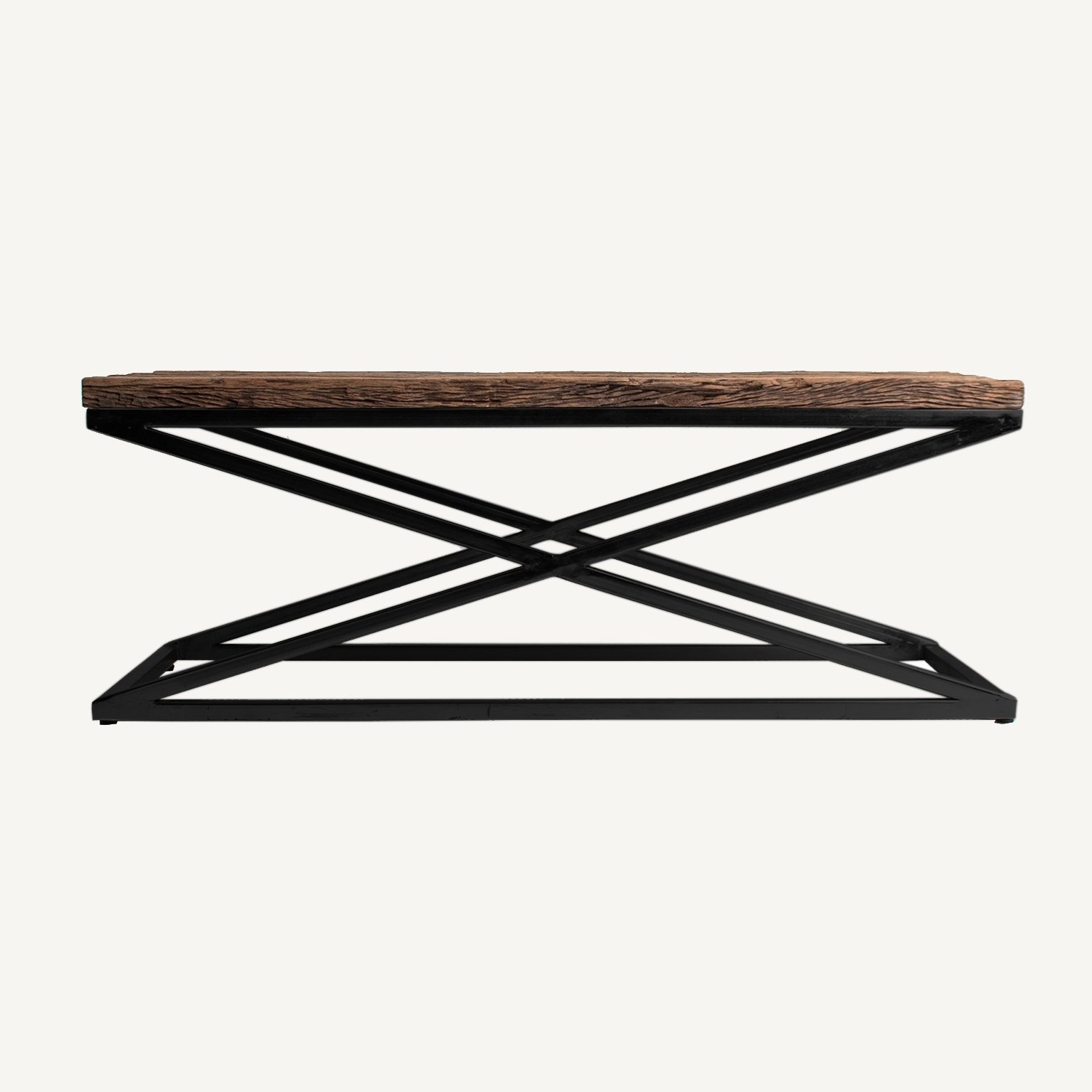 Журнальный столик Akron, натурального цвета, индустриальный стиль. Изготовлен из тикового дерева в сочетании со сталью.