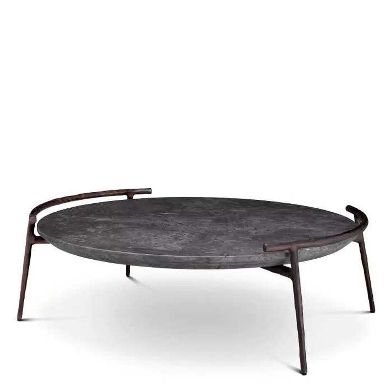 Журнальный столик выполнен натурального мрамора и алюминия в отделке бронза.