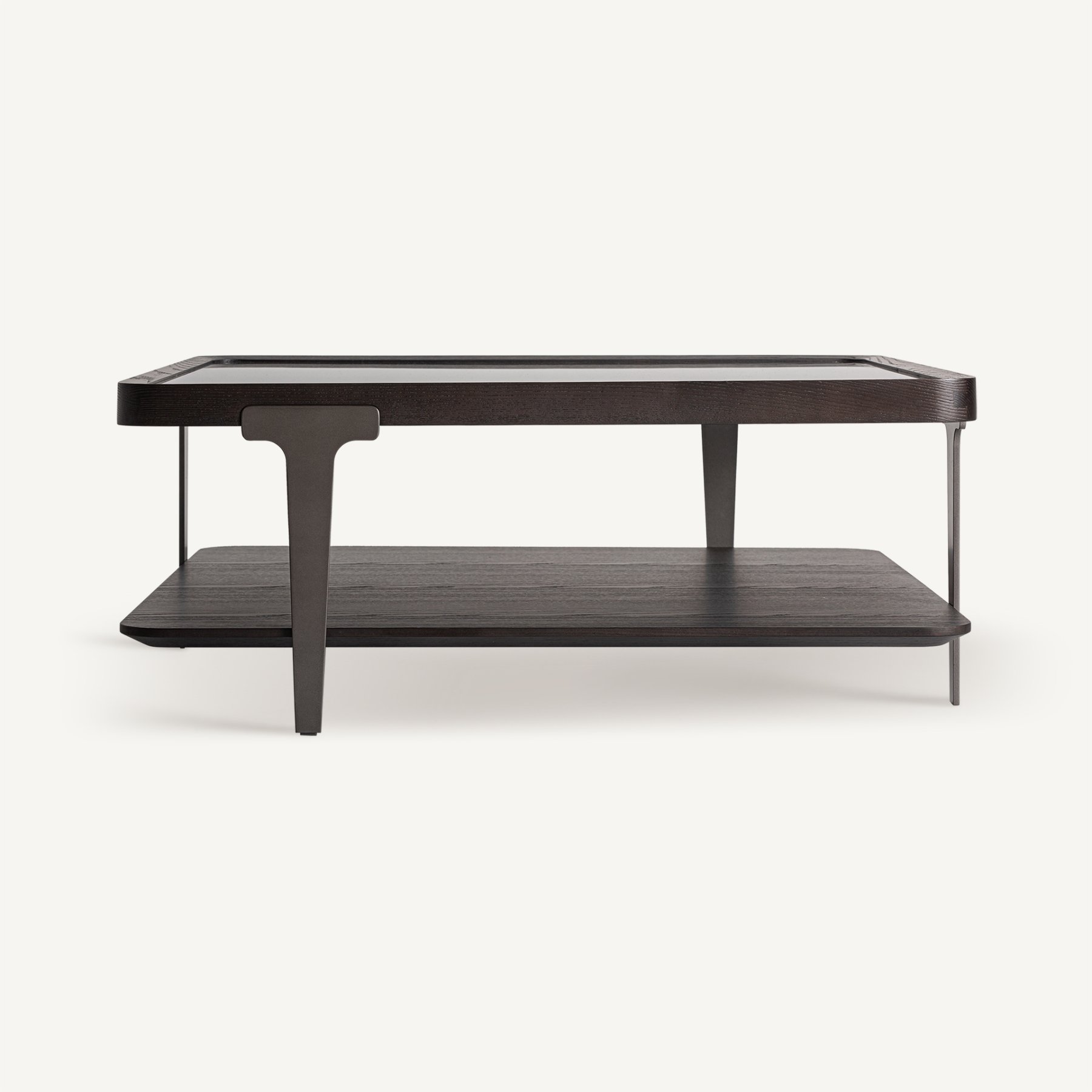 Журнальный столик Breil черного цвета в стиле арт-деко. Изготовлен из древесины ясеня в сочетании со стеклом. Съемное изделие.