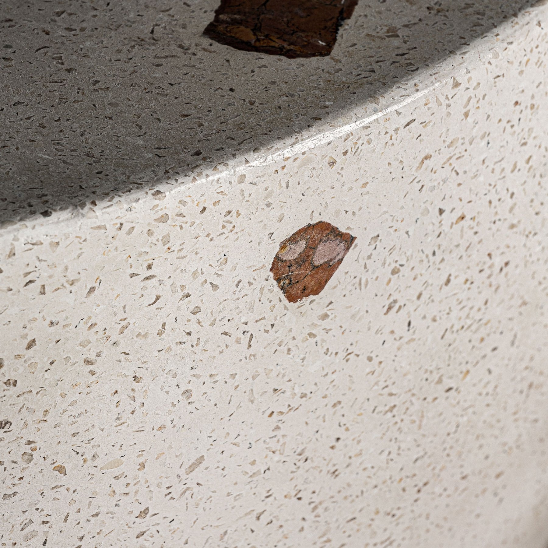 Журнальный столик MASSA, белый цвет, современный стиль. Изготовлен из терраццо.