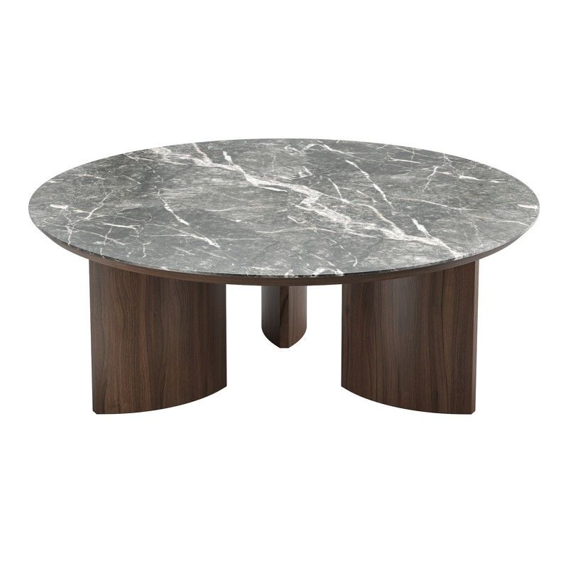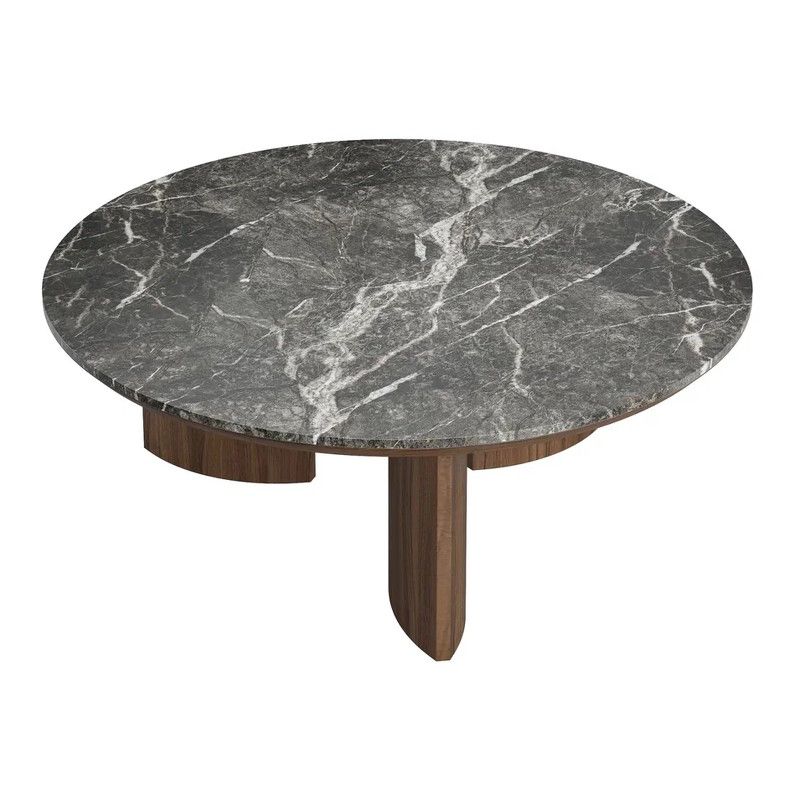 подстолье и ноги стола выполнены из высококачественного, сертифицированного МДФ высокой плотности. Отделка – натуральный шпон северо-американского ореха. Рисунок натурального шпона всегда индивидуален. Столешница - керамика в серых тонах.