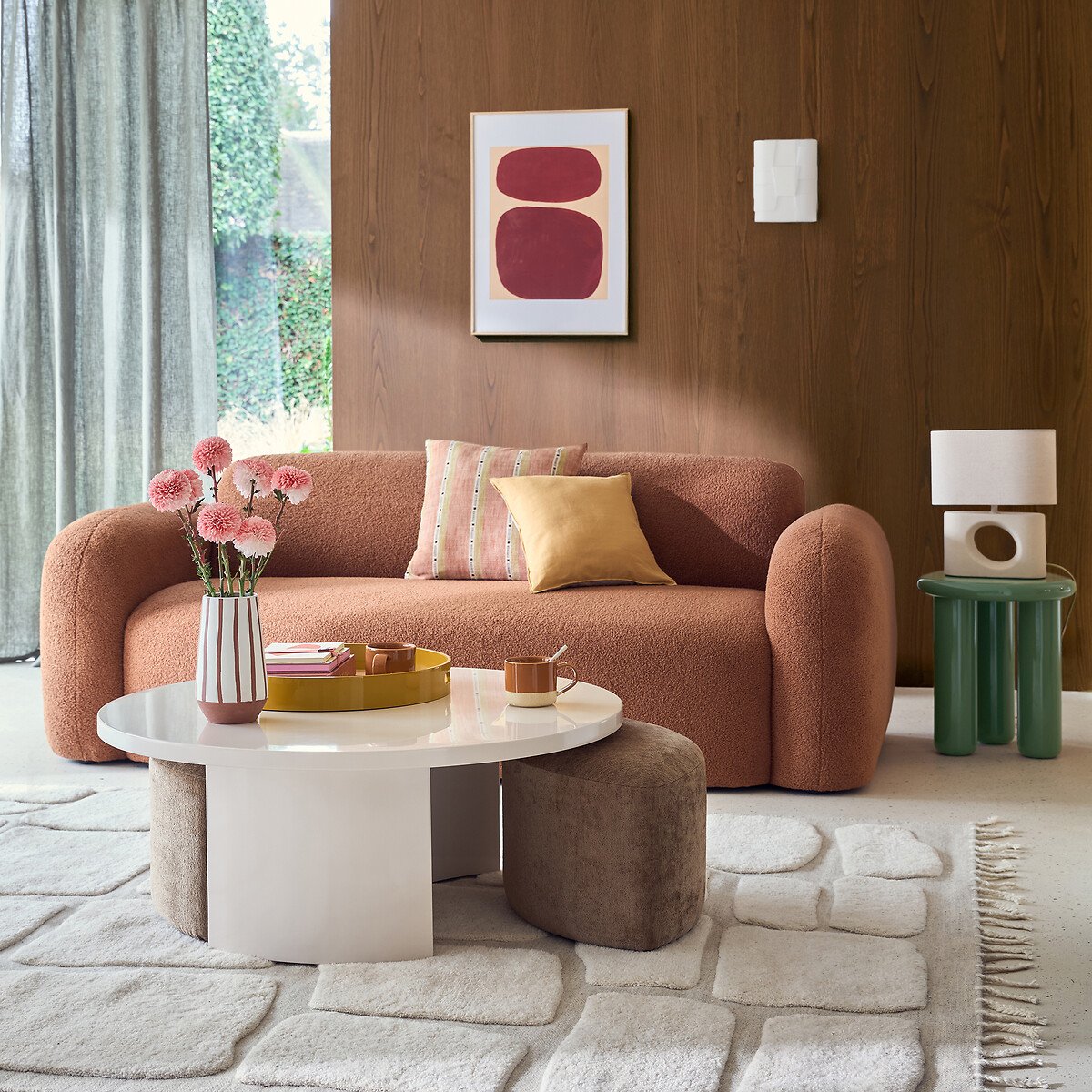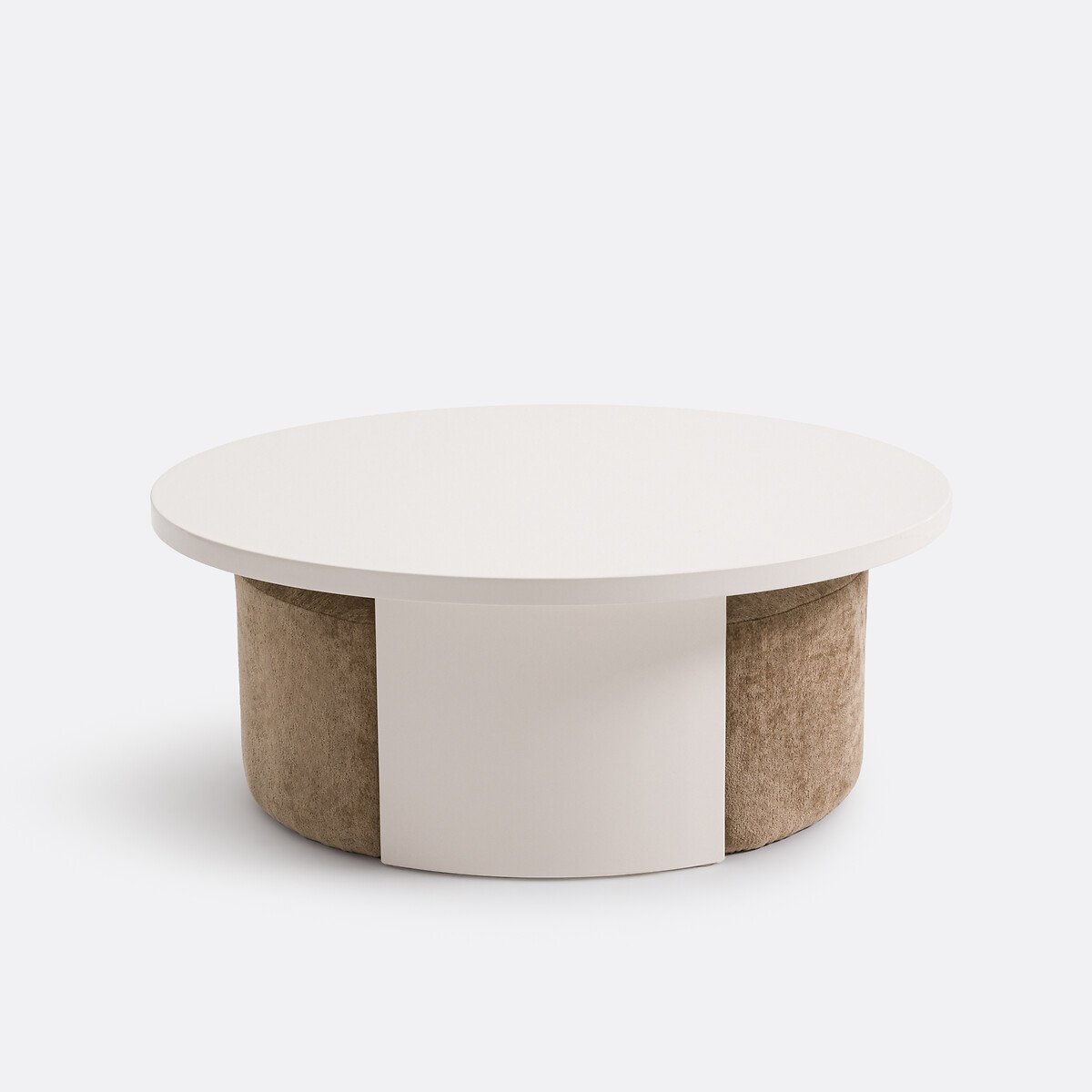 Журнальный столик Jen / Джен входит в нашу коллекцию Les Ingénieux / Ле Инжене. Наши дизайнеры в Рубе полны идей, как сделать жизнь проще, а будни красивее.Дизайнерский и функциональный журнальный столик Jen / Джен — идеальное решение для небольших помещений. Под своей лакированной белой столешницей он прячет два удобных пуфа, которые готовы послужить дополнительными сиденьями, как только вам это понадобится.Почему он вам понравится • В стиле 70-х: округлые линии, лаковое покрытие и контрастная ткань. • Все в одном : полный комплект для гостиной без лишней траты пространства. • Абсолютная дискретность: оба пуфа полностью скрываются под столом в задвинутом виде.ОписаниеЖурнальный столик • Круглая форма • Каркас из МДФ с глянцевым полиуретановым покрытием • Накладки на ножки из фетраПуфы • Обивка: 100% текстурированный полиэстер плотностью 570 г/м² с узором кофейное зерно • Наполнение из пенополиуретана, плотность 35 кг/м3 • Каркас из тополя • Накладки на ножки из фетра • Количество человек, рекомендованное для сборки: дваРекомендации по использованию • Для защиты покрытия используйте подложки под блюда и подстаканники.РазмерыЖурнальный столик • Ширина: 94,5 см • Высота: 38 см • Глубина: 94,5 см • Вес: 33 кгПуф • Ширина: 59 см • Высота: 33 см • Глубина: 35 см • Вес: 6 кг • Самостоятельная сборка. • ДРЕВЕСИНА ИЗ УСТОЙЧИВО УПРАВЛЯЕМЫХ ЛЕСОВ. Наличие знака FSC® означает, что древесина, из которой изготовлено изделие, добыта с соблюдением международных стандартов: в процессе добычи не были нарушены права коренных народов, местных жителей и работников, и заготовка велась методом устойчивого лесопользования.Размеры и вес упаковкиДве упаковки • Д86 x В42 x Г83 см, 39,5 кг • Д109 x В9 x Г107 см, 17 кг
