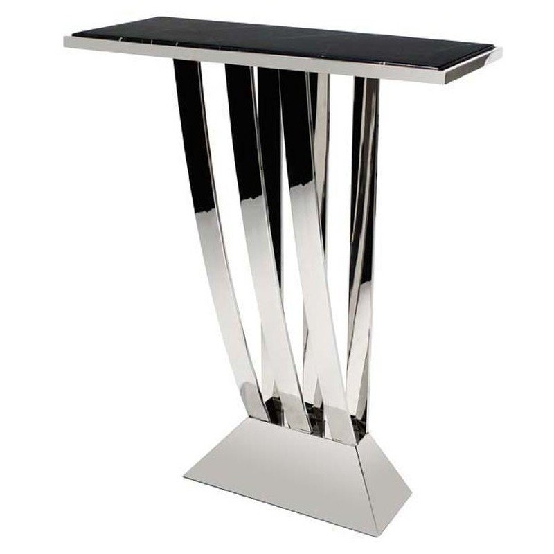 Высокая консоль выполнена из нержавеющей стали. Топ из мрамора.