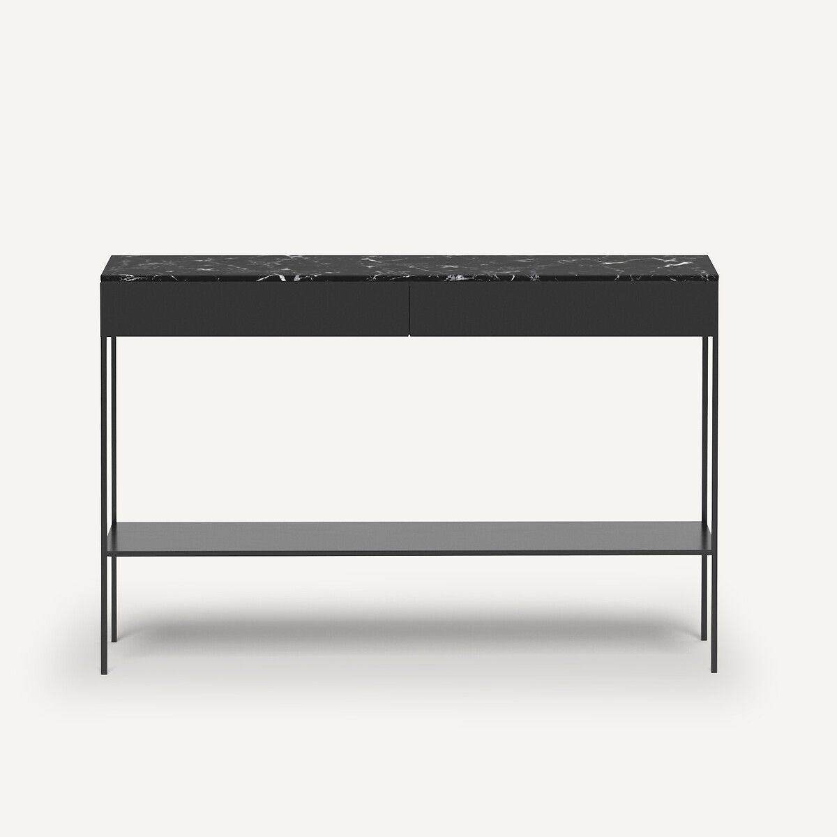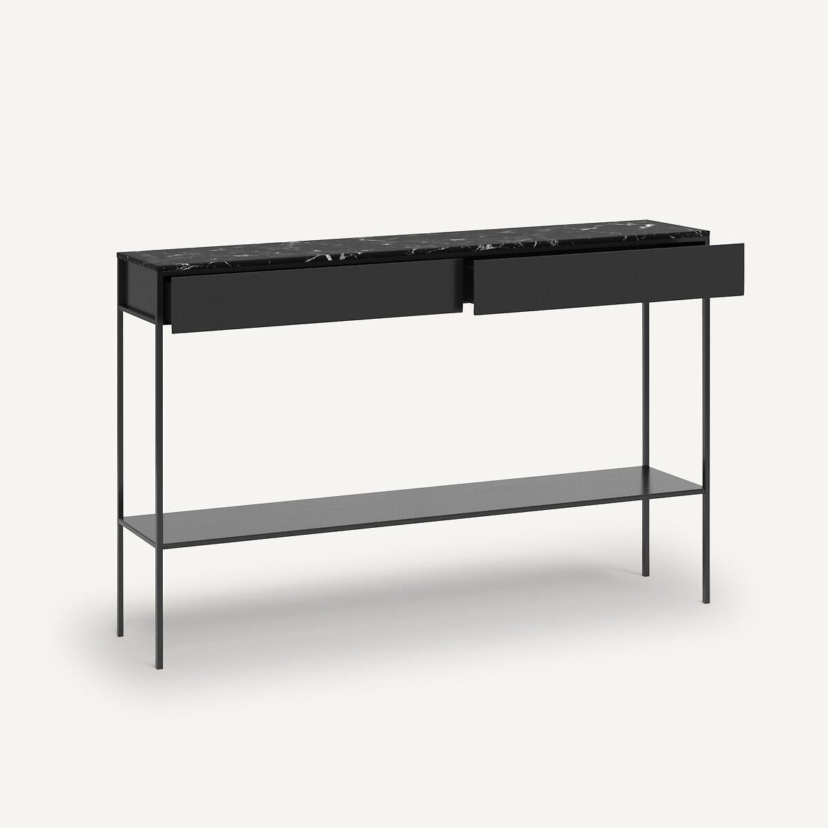 Удачное сочетание мрамора и металла подчеркивает элегантный силуэт этой консоли, два ящика предоставляют дополнительное пространство для хранения вещей.