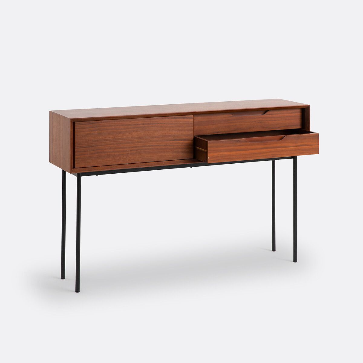 Альянс темного дерева и металла позволяет ей адаптироваться ко всем стилям интерьера. Консоль Noyeto имеет большое отделение сзади раздвижной дверки и 2 ящика. Она впишется в гостиную или комнату.