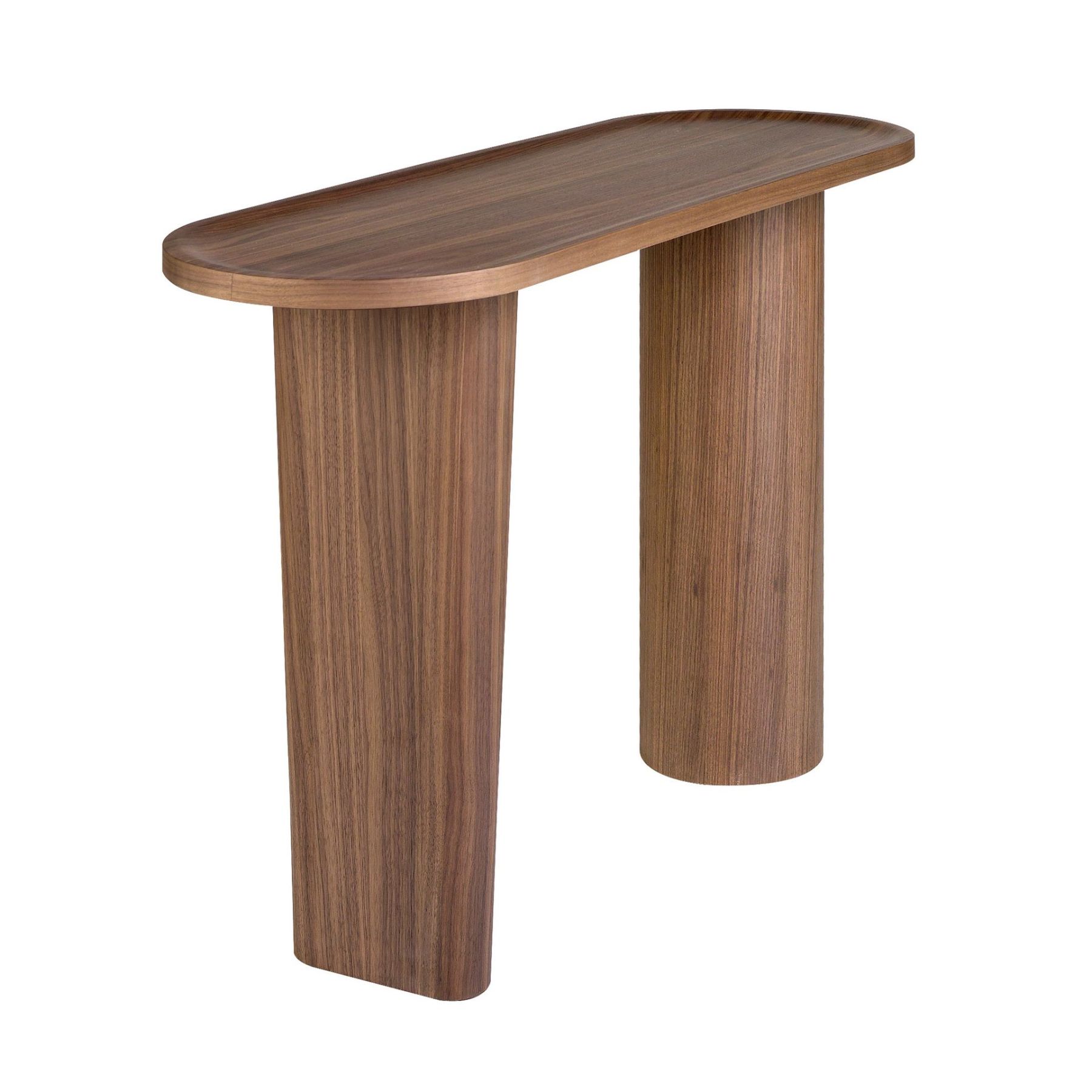Прямоугольный консольный столик современного дизайна из натурального шпона ореха и элегантной столешницей из белого фарфорового мрамора с прожилками землистого тона с глянцевой отделкой. Его конструкция из темных металлических ножек из нержавеющей стали придает современный и авангардный вид, который вы ищете в своем доме. Он имеет достаточно места для хранения вещей с 2 ящиками с системой плавного закрывания.