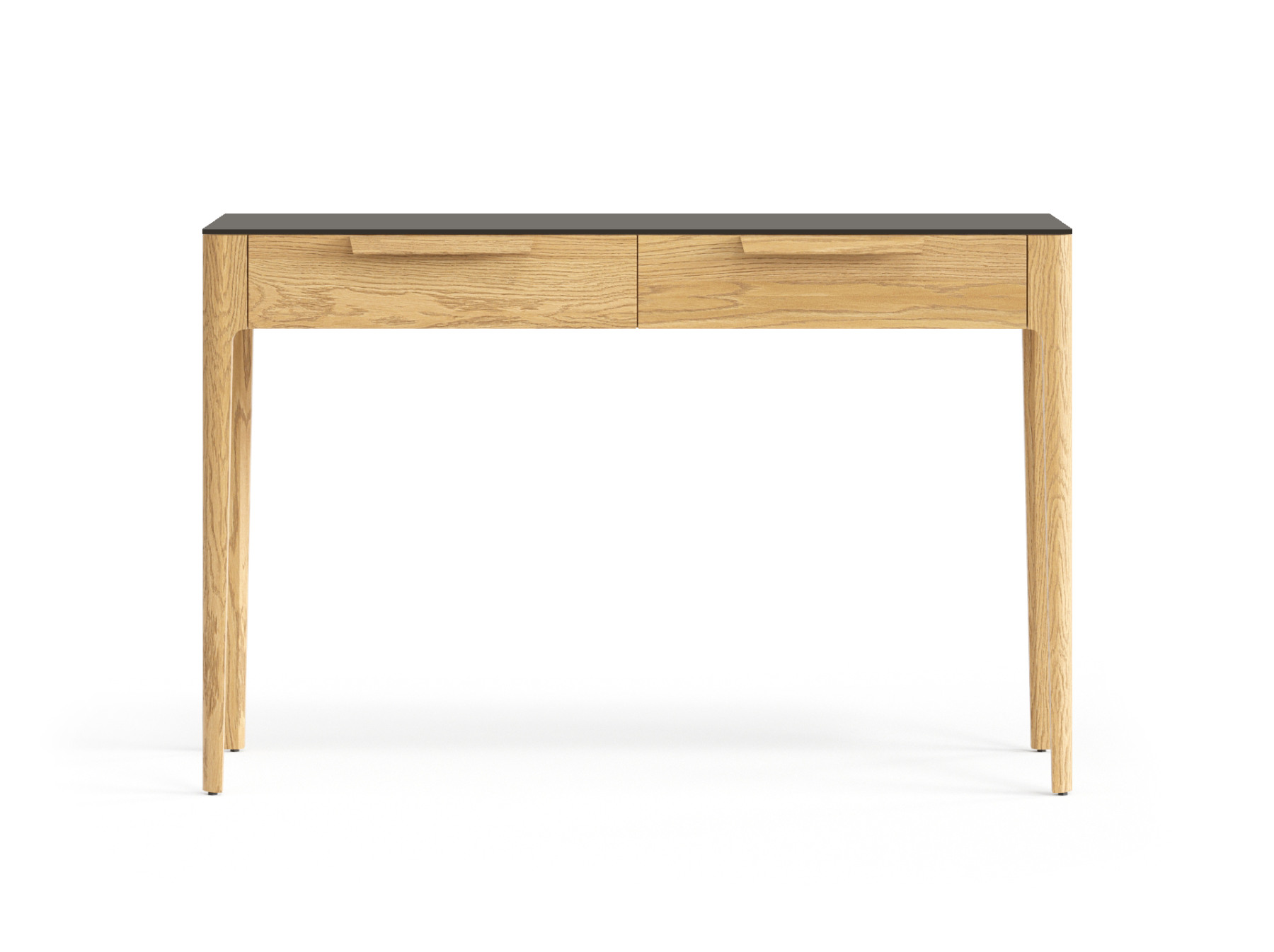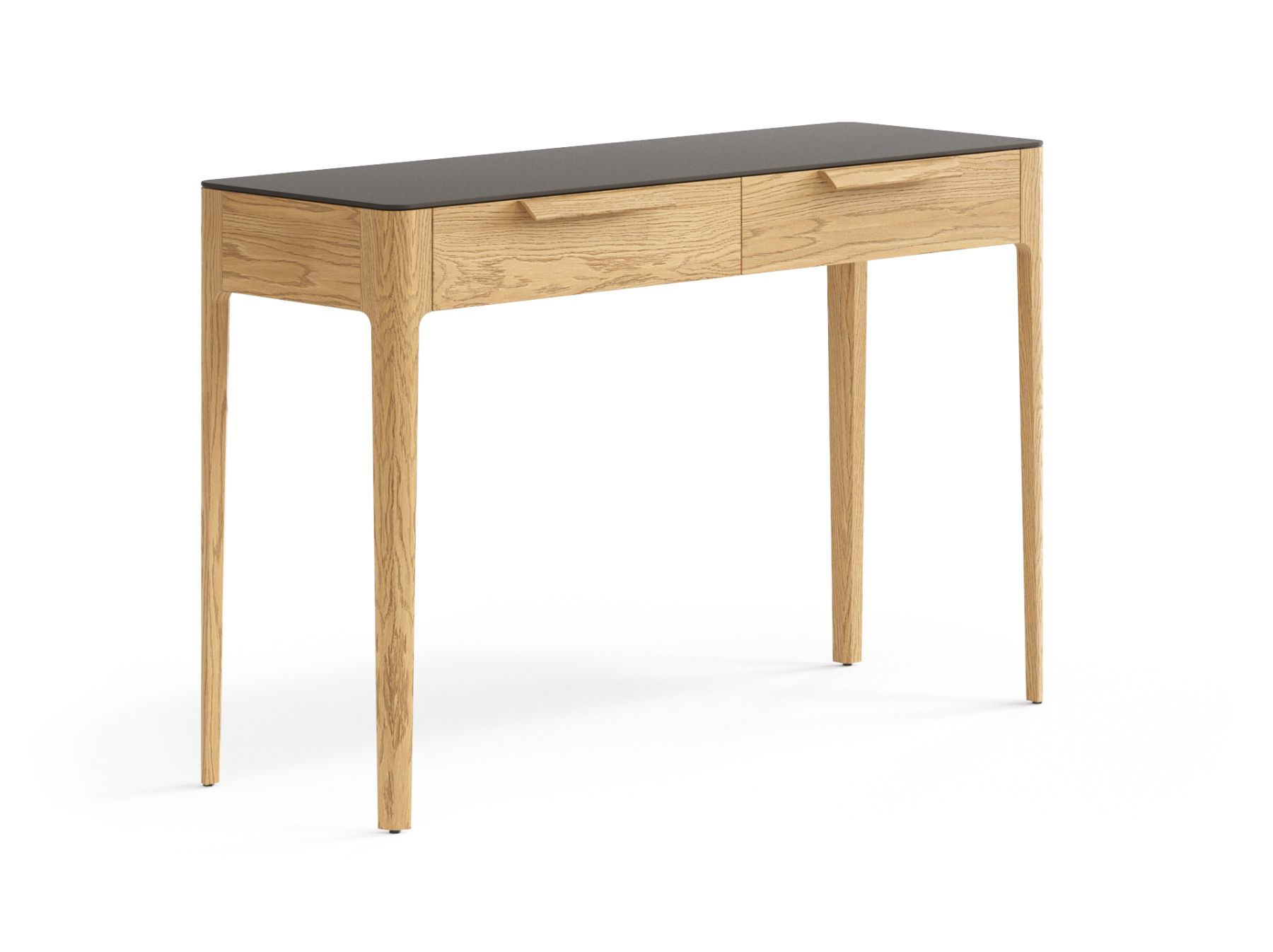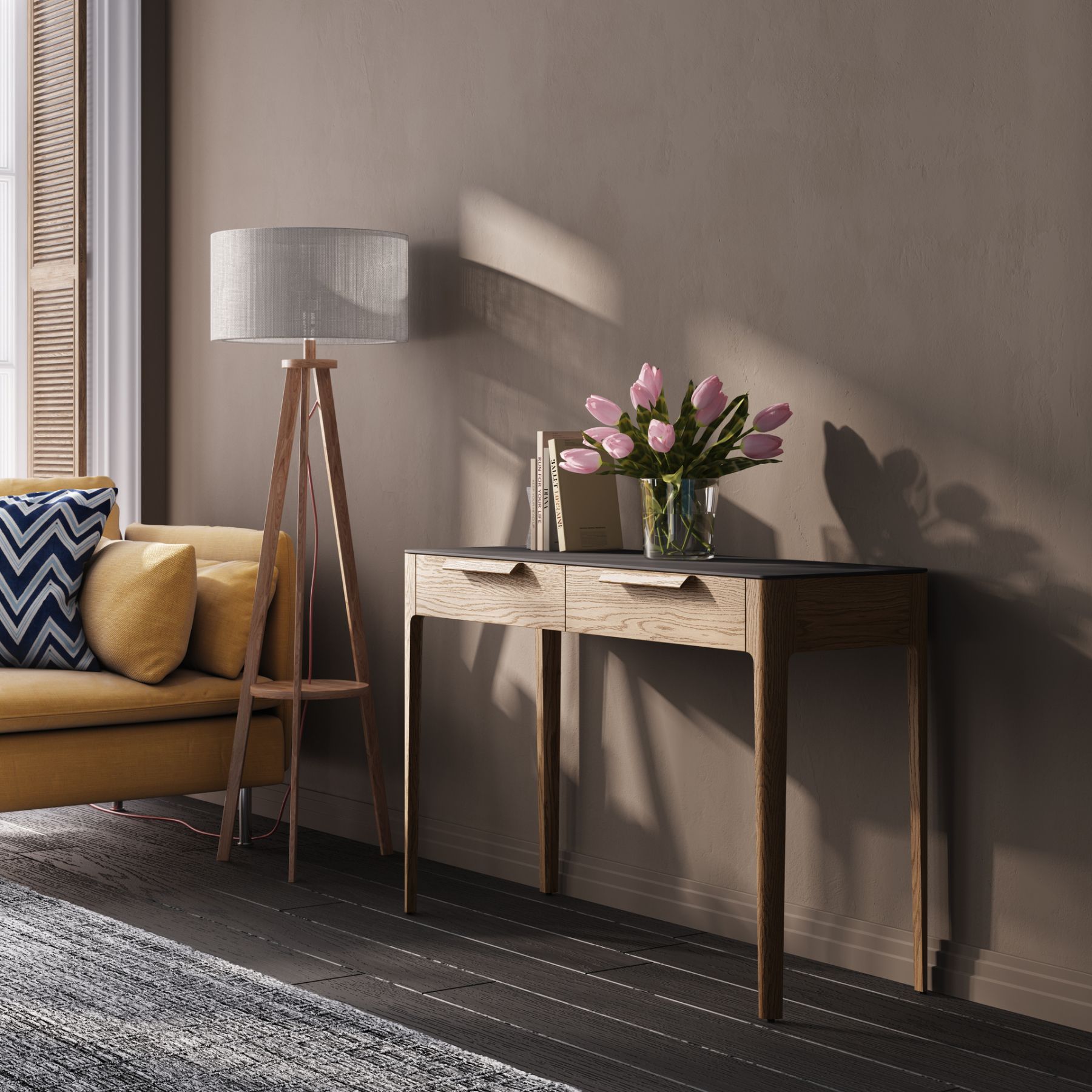 Консоль с двумя выдвижными ящиками на высоких элегантных опорах идеально впишется в любое помещение вашего дома и сделает его особенным. Изысканно сглаженные формы подчёркивают теплоту дерева, наполняют пространство природной гармонией.