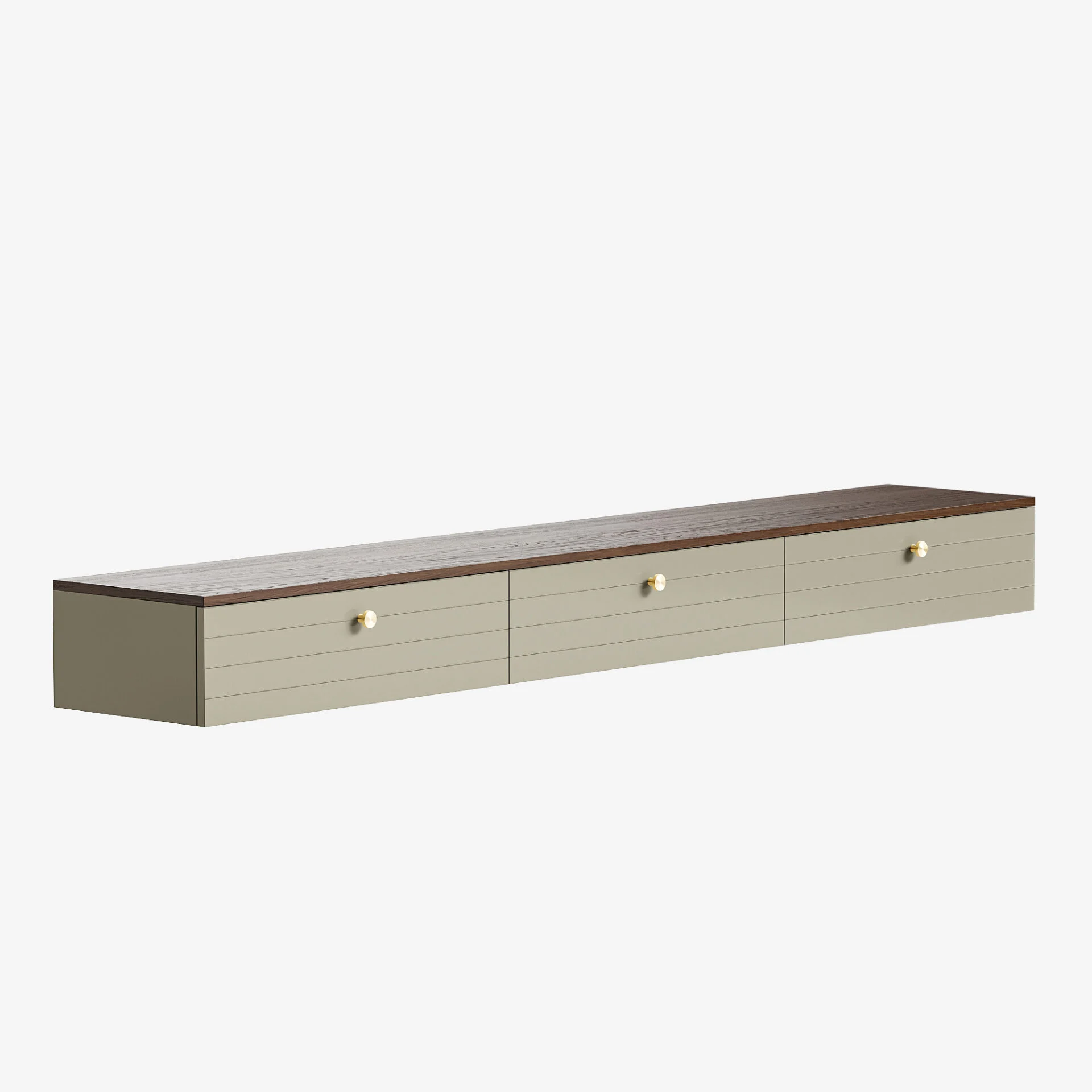 Подвесная консоль с выдвижными ящиками буквально парит в воздухе благодаря