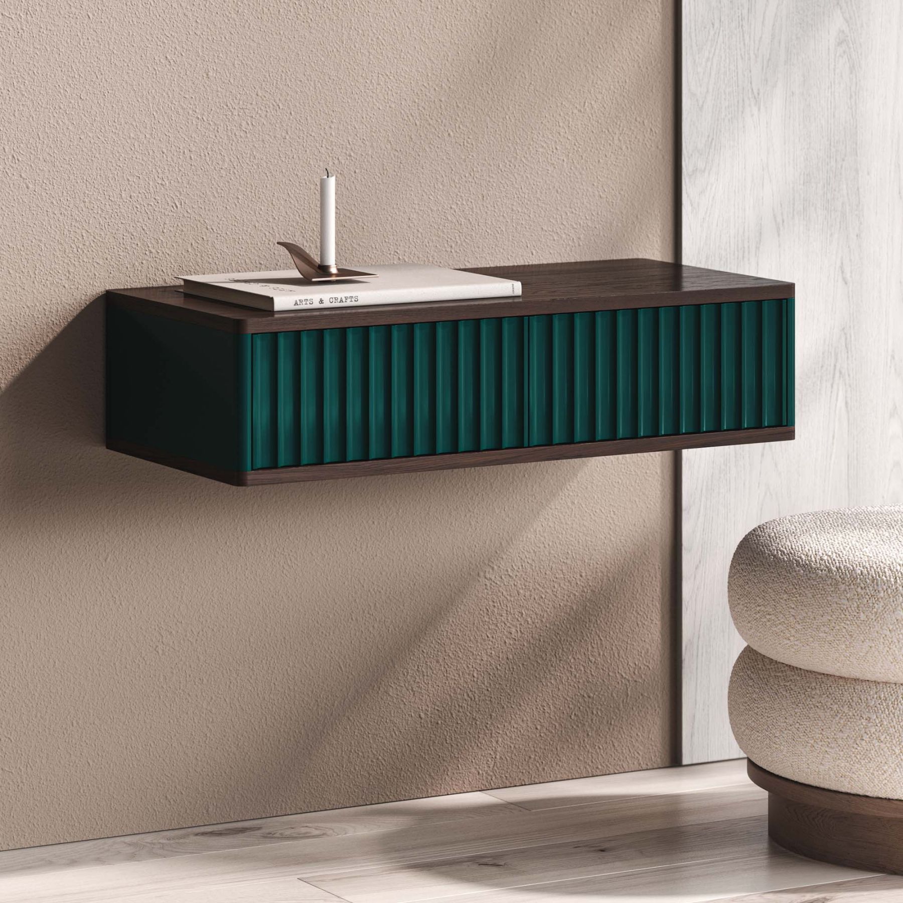 Компактная консоль с двумя ящиками в буквальном смысле парит в воздухе — она подвесная. Строгие вертикальные линии, декоративная глубокая фрезеровка и изящно закругленные детали каркаса — отличительные черты дизайна этой консоли. Аккуратные примыкания деталей стирают границу между ящиками. Два ящика не имеют ручек и открываются от легкого нажатия на фасады. Каким будет внешний вид консоли — решаете только вы. Благодаря лаконичному дизайну и возможности выбрать цвет и отделку консоль легко адаптируется к любому интерьерному решению. Эта консоль будет отлично смотреться как с другими изделиями из коллекции, так и в качестве самостоятельного предмета интерьера. Крепеж к стене для подвесных изделий не предусмотрен в стандартной комплектации, поскольку каждый тип перегородок требует своего специфического крепежа.