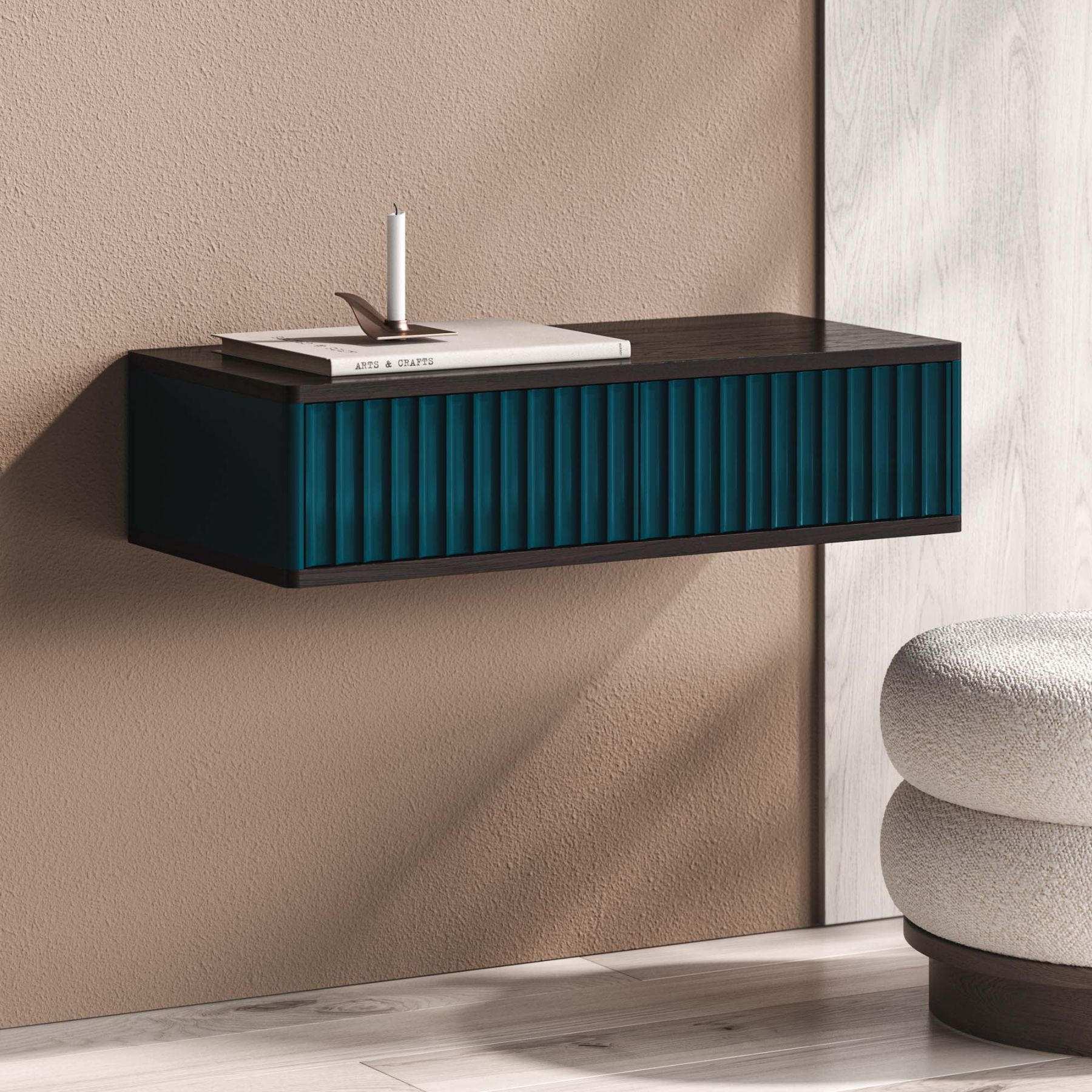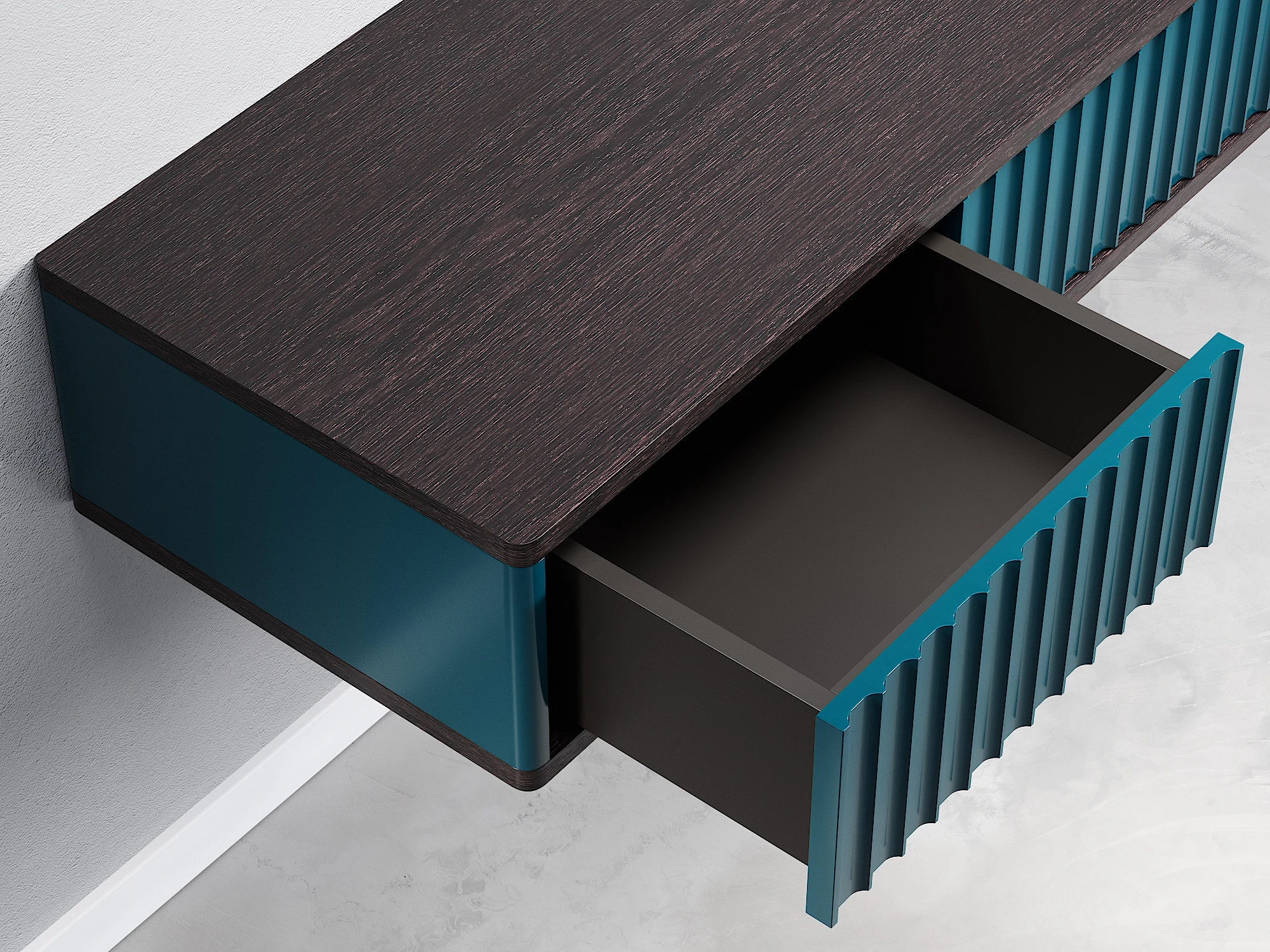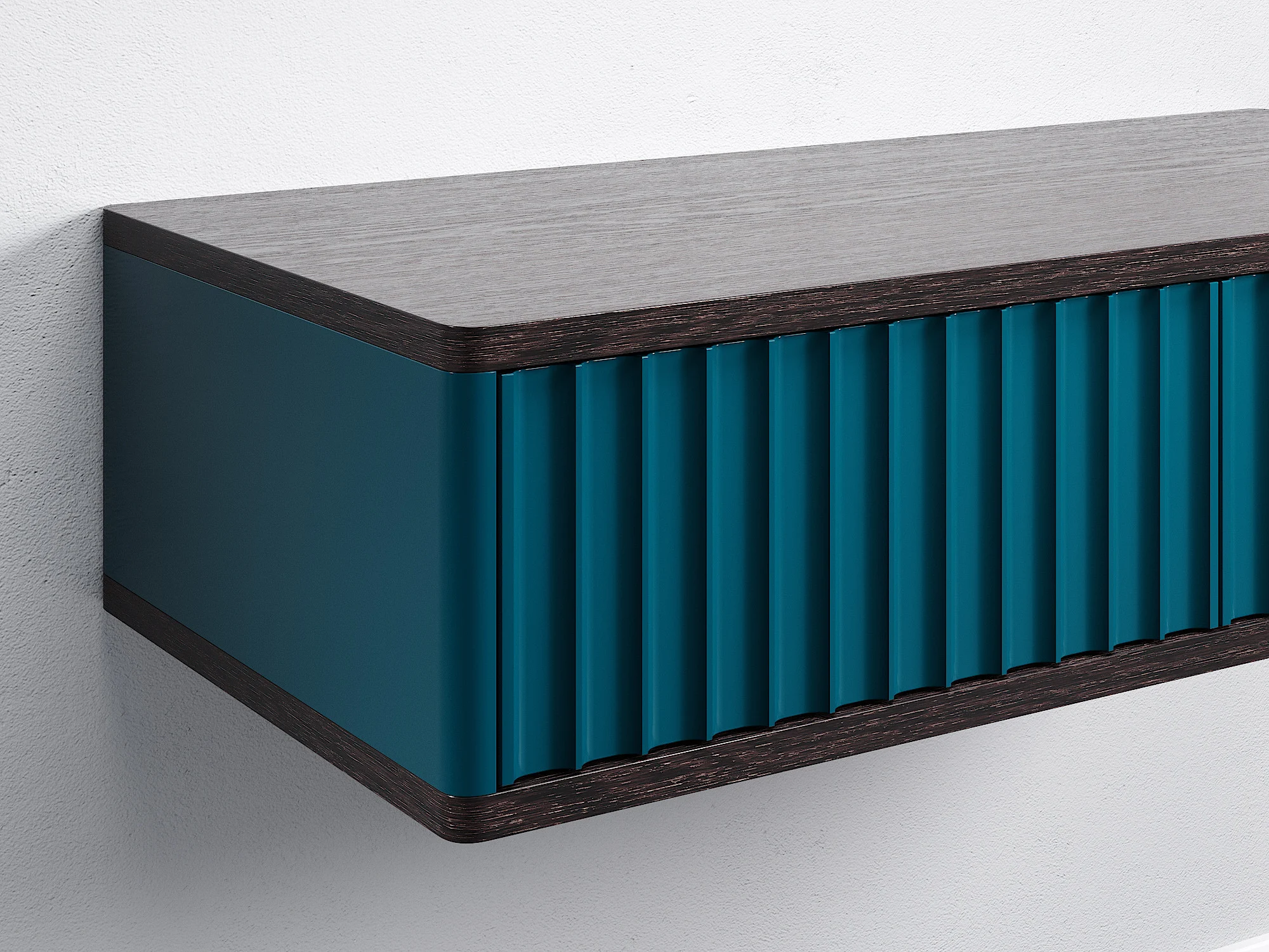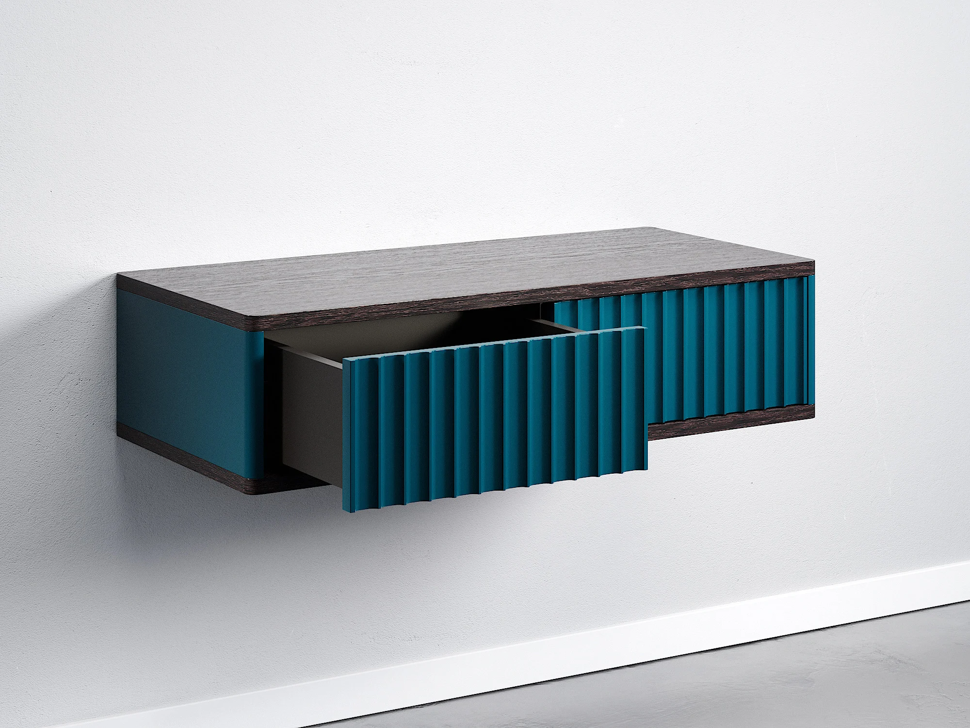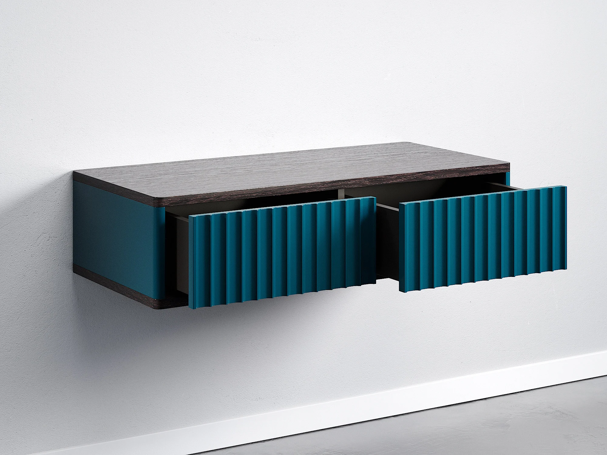 Компактная консоль с двумя ящиками в буквальном смысле парит в воздухе — она подвесная. Строгие вертикальные линии, декоративная глубокая фрезеровка и изящно закругленные детали каркаса — отличительные черты дизайна этой консоли. Аккуратные примыкания деталей стирают границу между ящиками. Два ящика не имеют ручек и открываются от легкого нажатия на фасады. Каким будет внешний вид консоли — решаете только вы. Благодаря лаконичному дизайну и возможности выбрать цвет и отделку консоль легко адаптируется к любому интерьерному решению. Эта консоль будет отлично смотреться как с другими изделиями из коллекции…., так и в качестве самостоятельного предмета интерьера. Крепеж к стене для подвесных изделий не предусмотрен в стандартной комплектации, поскольку каждый тип перегородок требует своего специфического крепежа.