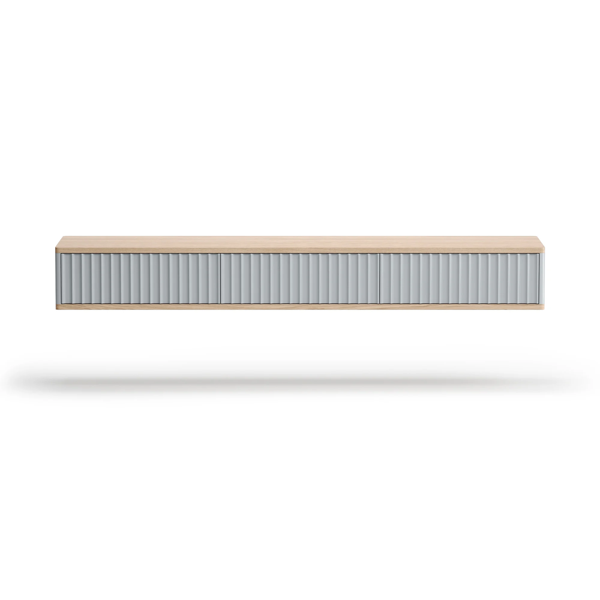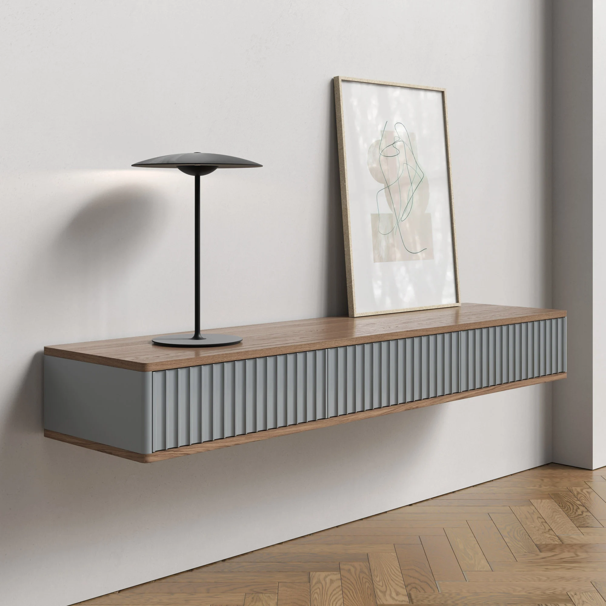 Добавьте яркий акцент в интерьер с помощью вместительной подвесной консоли с тремя ящиками. В коридоре она организует удобное хранение документов, перчаток и головных уборов, а в спальне станет отличным туалетным столиком. Изящные линии, игра теней на фасадах и ритмичный узор — отличительные черты дизайна этой консоли. Моментально реагирует на ваши прикосновения — ящики выдвигаются плавно и бесшумно от легкого нажатия на фасады. Используйте консоль как самостоятельный предмет интерьера или с другими изделиями из коллекции.