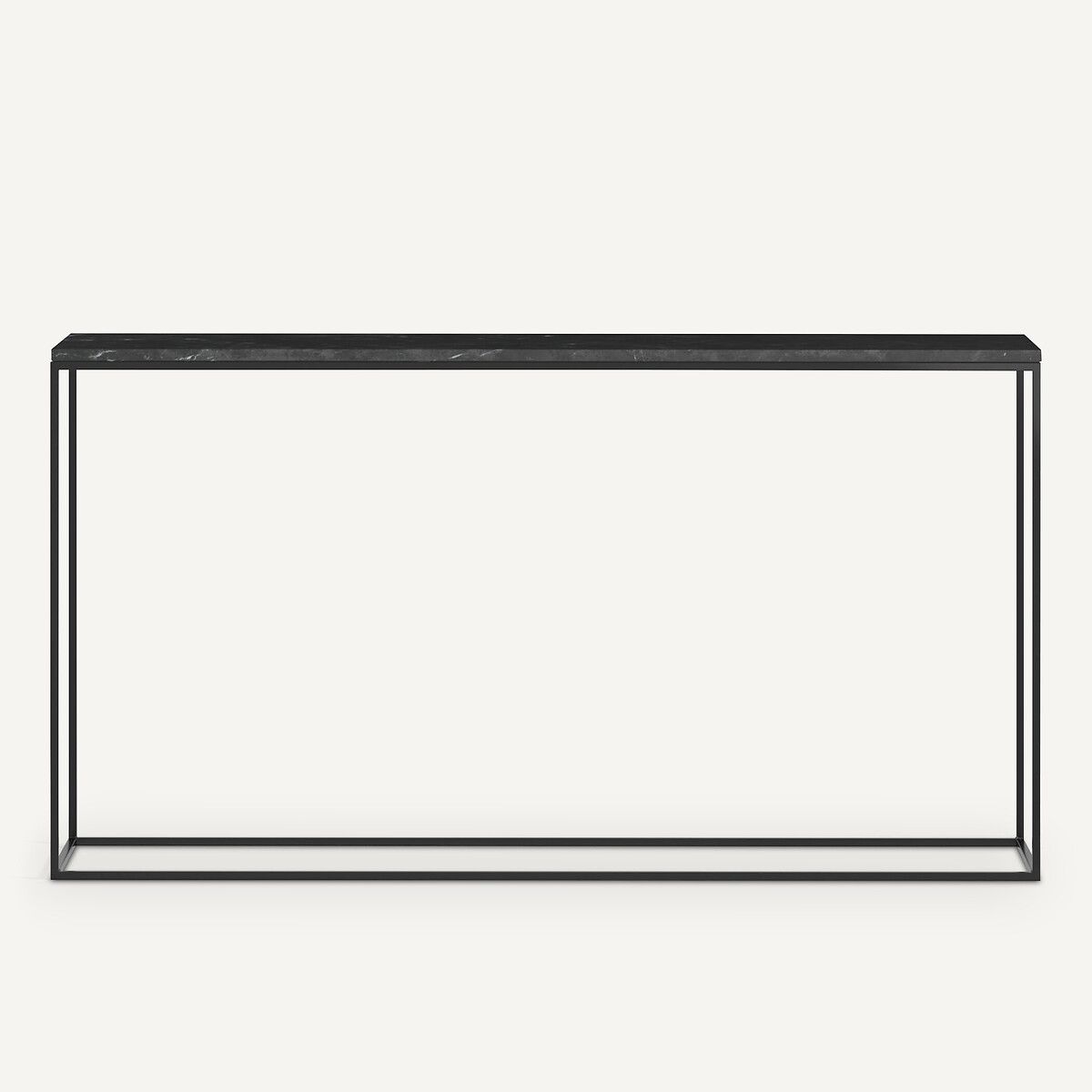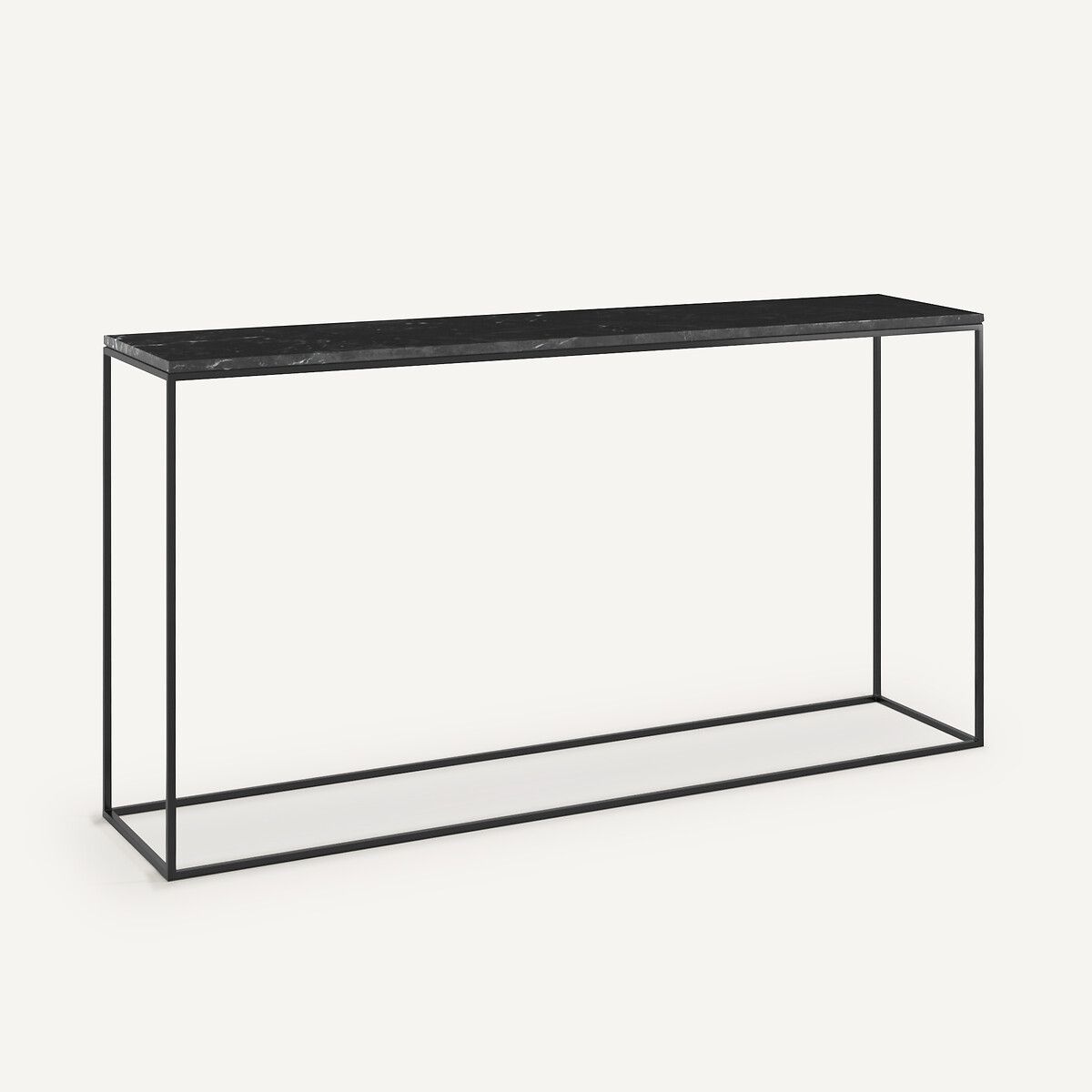 Широкая столешница из мрамора, мягкого и прочного благородного камня, а также из тонкого металлического каркаса: элегантность и простота.