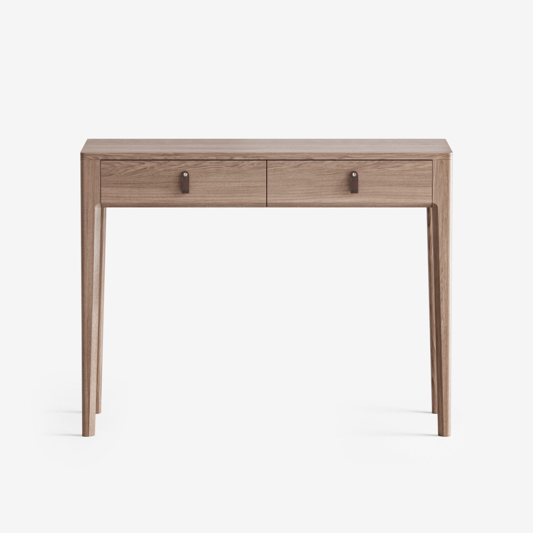 Идеален в качестве туалетного или учебного столика, а также для зонирования прихожей. Компактная глубина (40-50 см) позволяет разместить его даже в самом узком помещении, не загромождая пространство. Утонченный дизайн с фрезеровкой ножек и ручками из натуральной кожи делает его изысканной деталью интерьера.