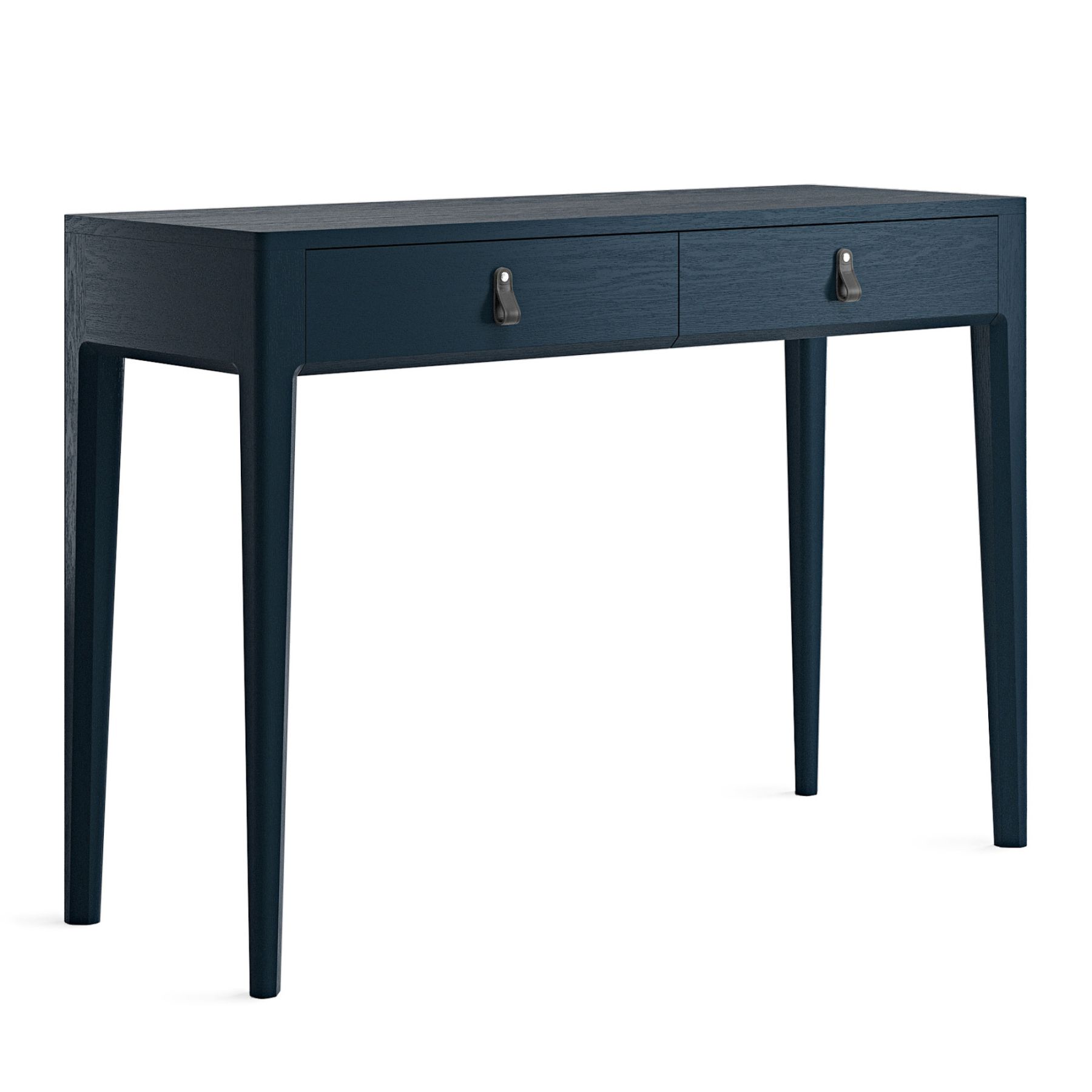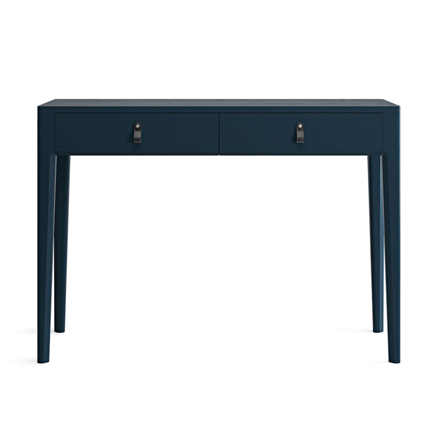 Этот стол уверенно выполнит функцию косметического столика. Компактные габариты позволяют использовать его в узком холле или небольшой комнате, а утонченный образ модели поддерживается оригинальной фрезеровкой ножек и ручками из натуральной кожи, выполненными вручную мастерами The IDEA.