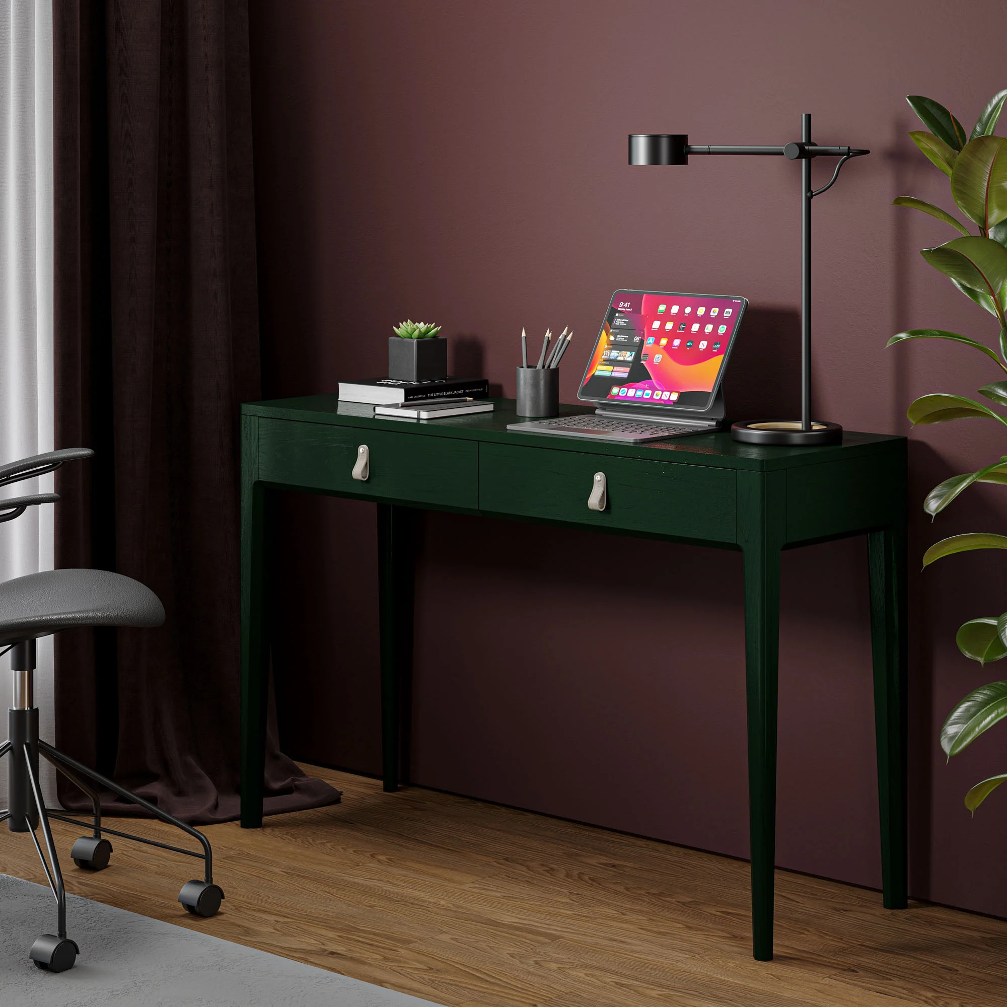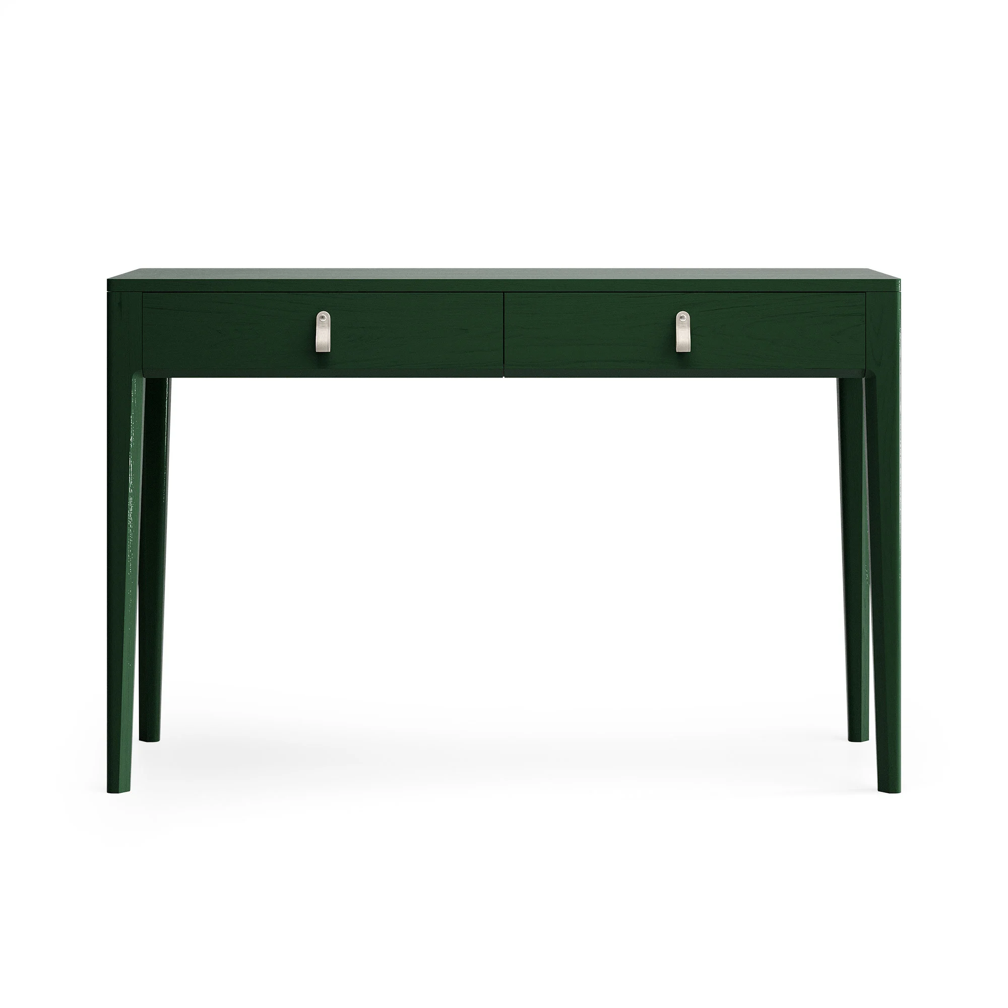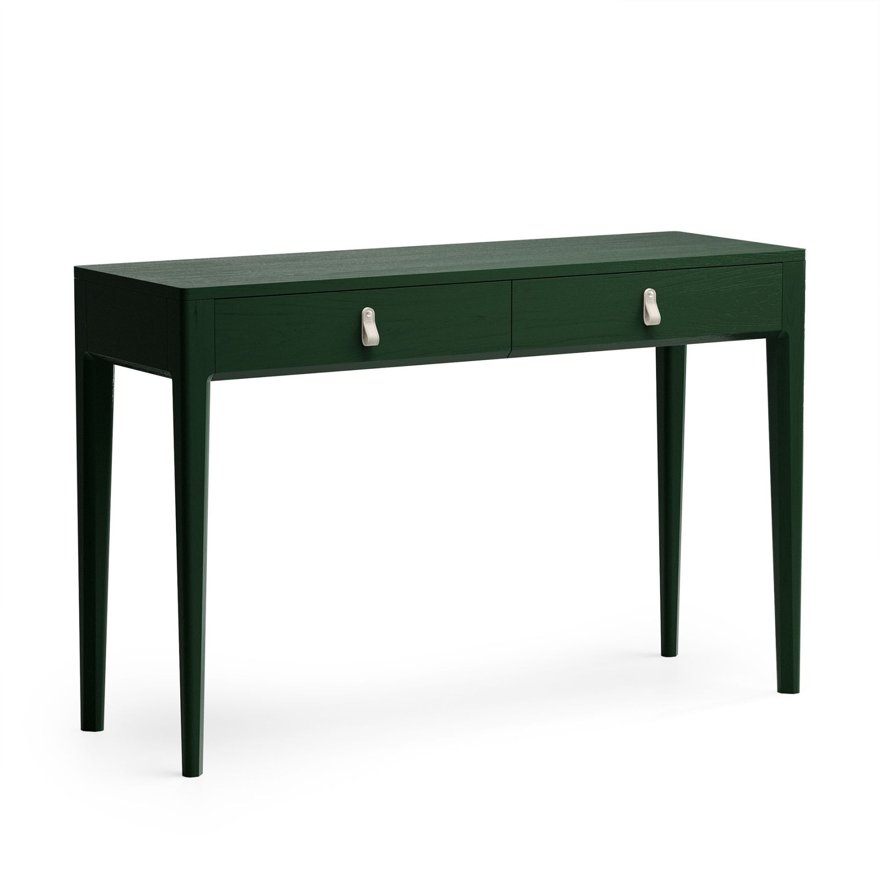 Этот стол уверенно выполнит функцию косметического столика. Компактные габариты позволяют использовать его в узком холле или небольшой комнате, а утонченный образ модели поддерживается оригинальной фрезеровкой ножек и ручками из натуральной кожи, выполненными вручную мастерами The IDEA.
