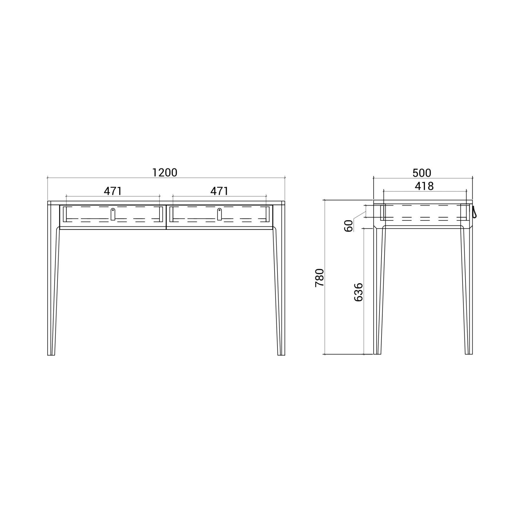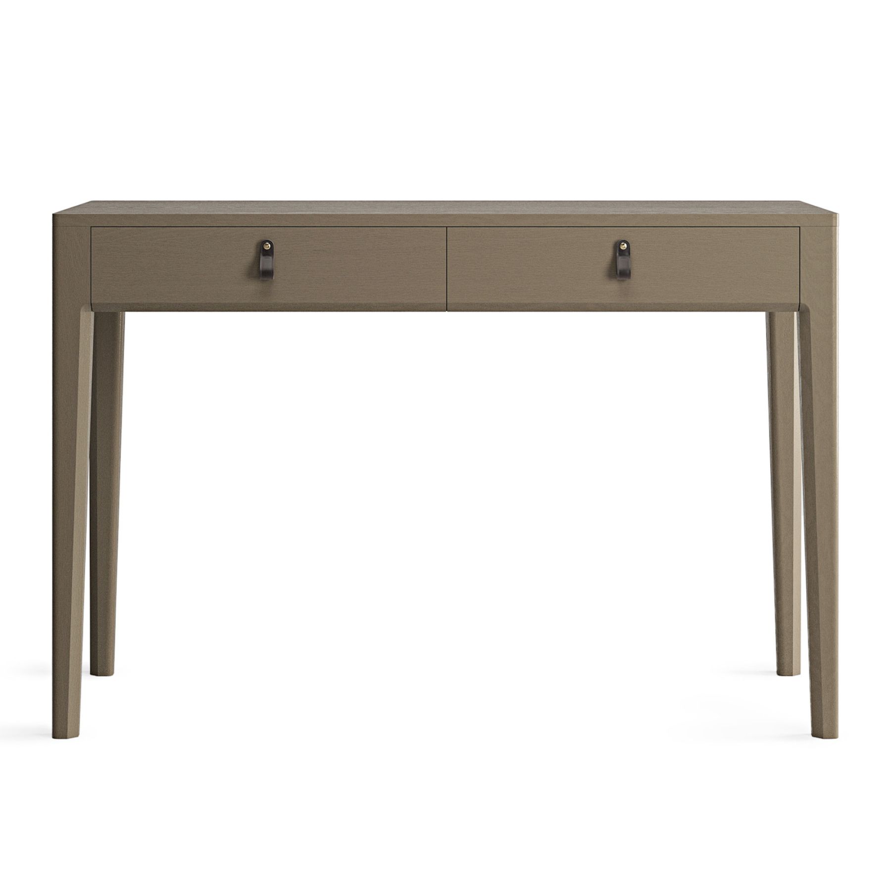 Этот стол уверенно выполнит функцию косметического столика. Компактные габариты позволяют использовать его в узком холле или небольшой комнате, а утонченный образ модели поддерживается оригинальной фрезеровкой ножек и ручками из натуральной кожи, выполненными вручную мастерами The IDEA.