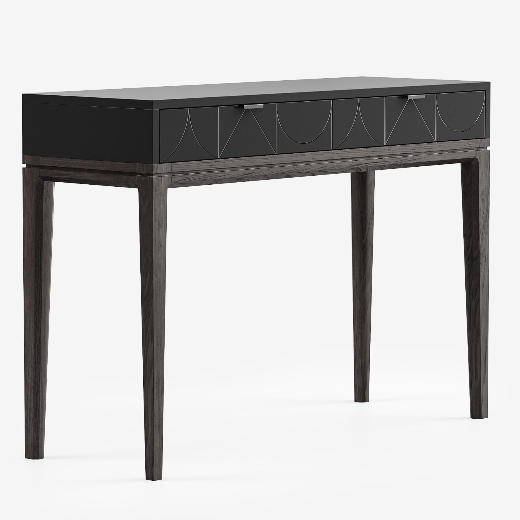 Консольный стол TIMELESS — элегантное и практичное изделие для вашего дома. Легко впишется в любое пространство благодаря продуманному дизайну и компактным размерам. Используйте модель в узком холле, небольшой комнате или в качестве косметического столика. Оригинальная фрезеровка ножек и ручек из натуральной кожи выполнена мастерами THE IDEA.