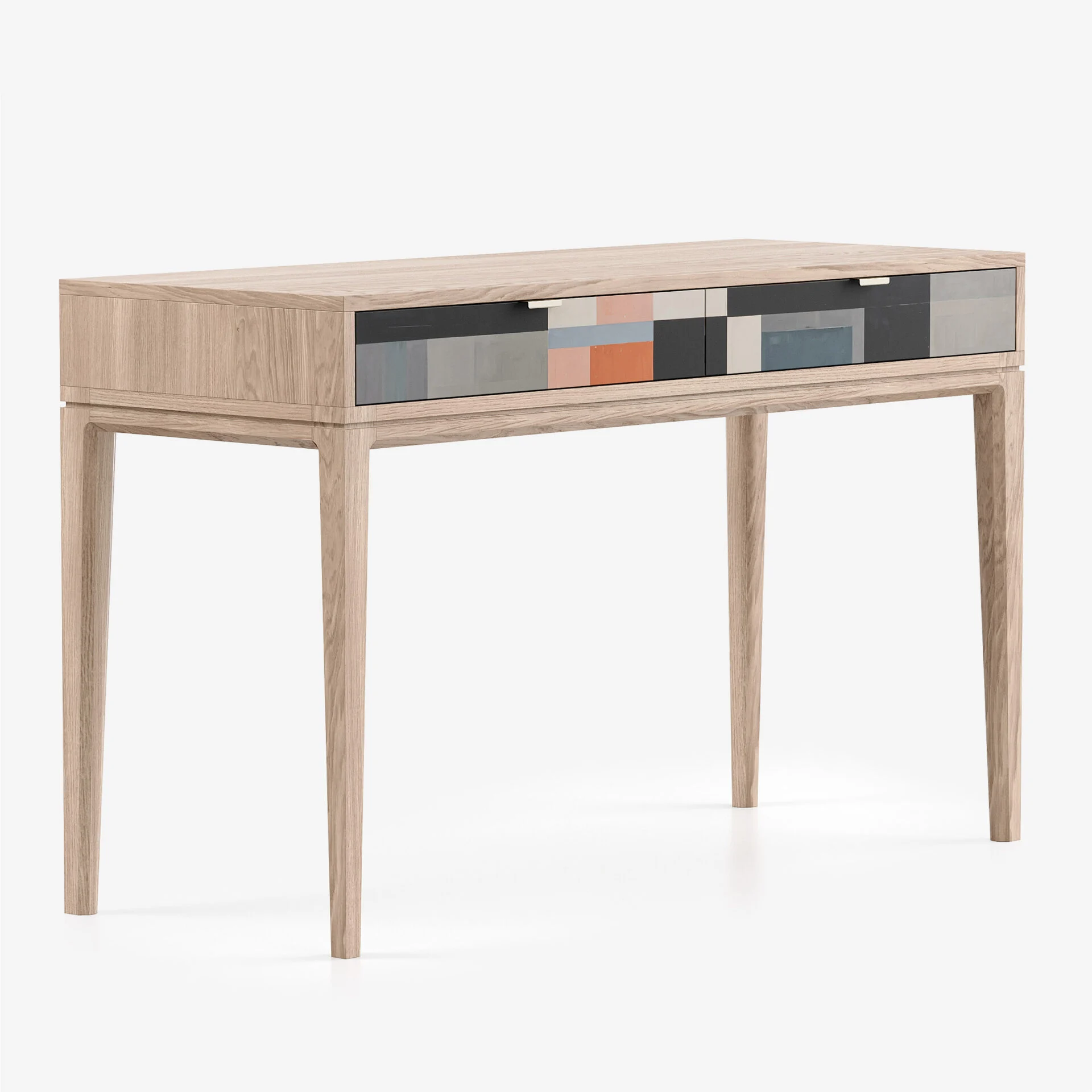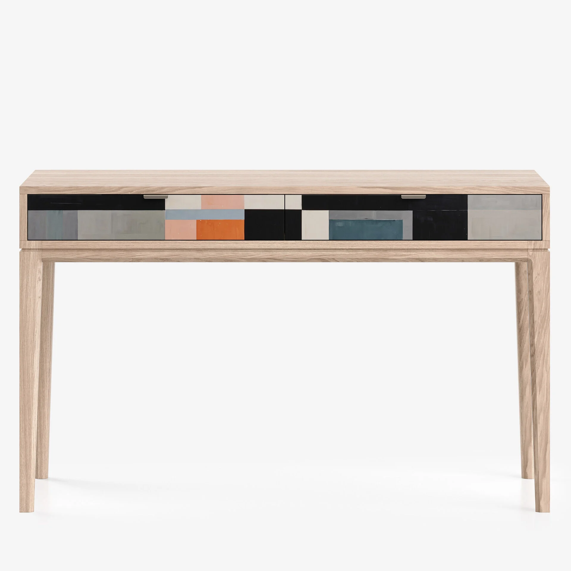 Универсальный консольный стол, который уверенно выполнит функцию косметического столика. Компактные габариты позволяют использовать стол в узком холле или небольшой комнате, а утонченный образ модели поддержан оригинальной фрезеровкой ножек и металлическими ручками, выполненными вручную мастерами The IDEA.