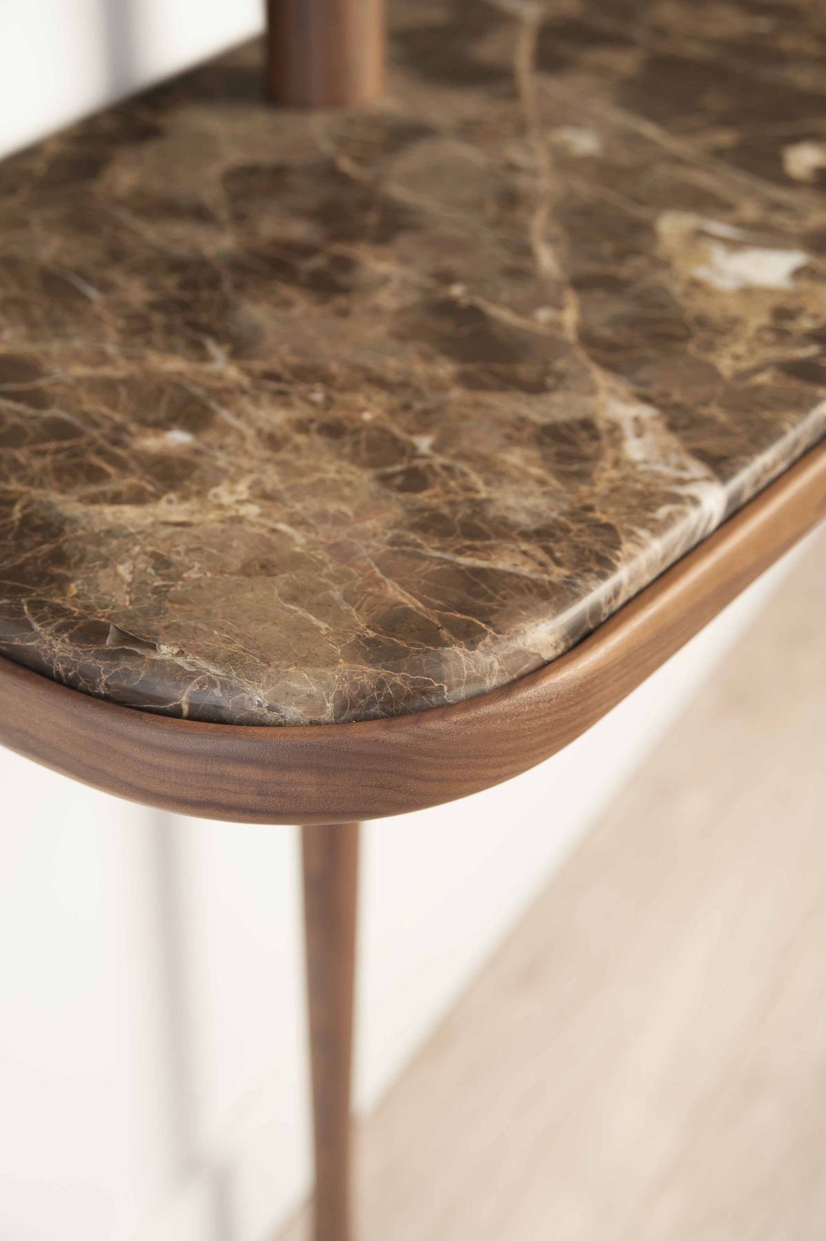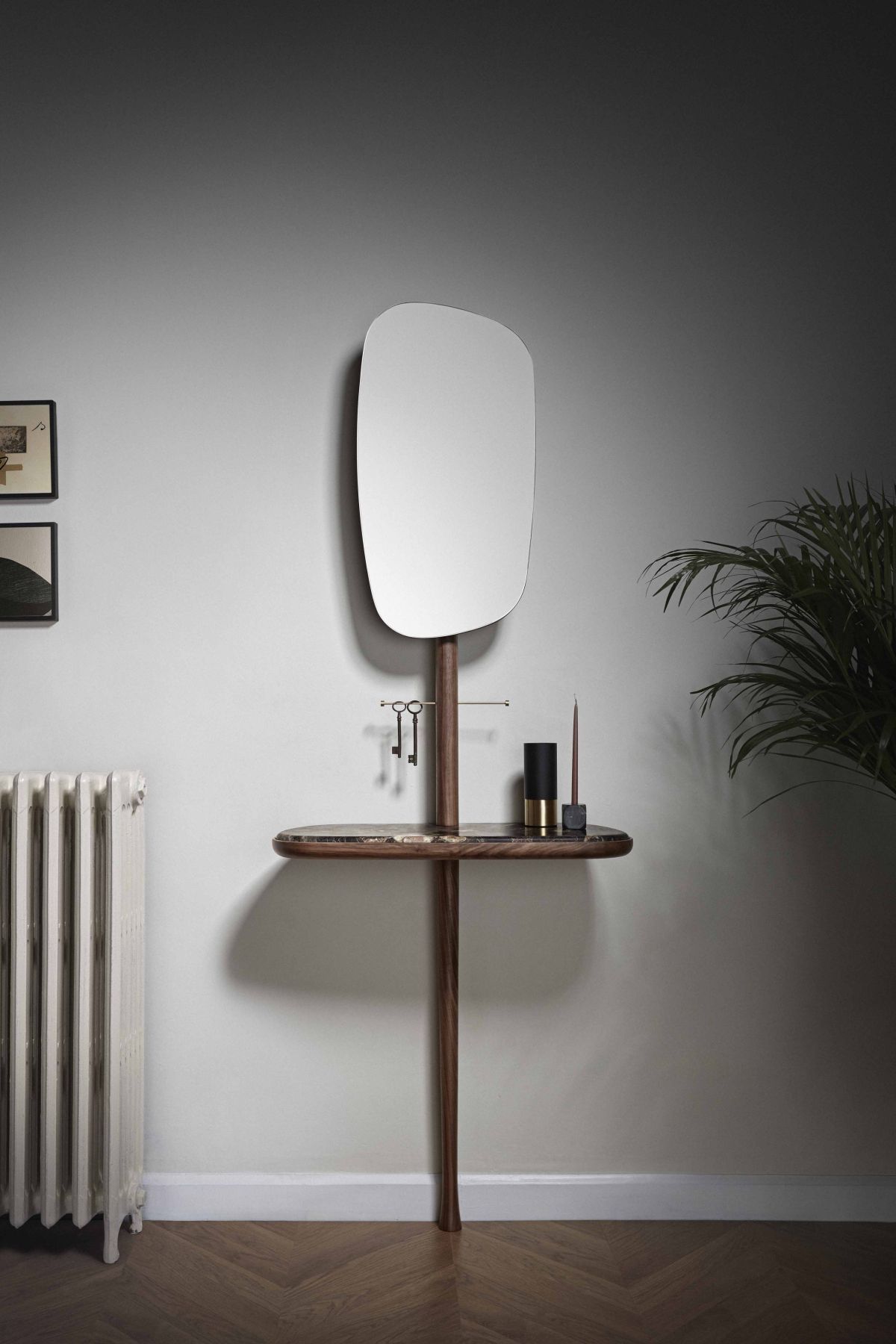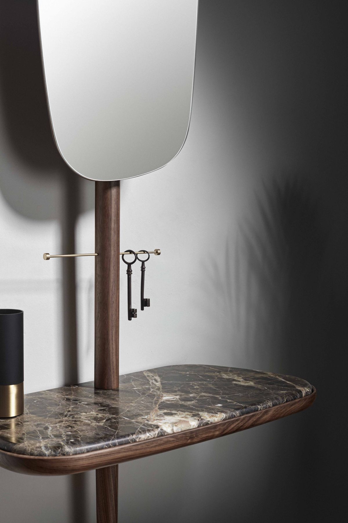 Мебель из коллекции Nomon Home позволяет получать огромное удовольствие от рутинных моментов, которые мы привыкаем не замечать за повторяемостью действий. С предметами интерьера Nomon элементарное возвращение домой превращается в маленькое событие.Кажется, будто дизайнер Андрес Мартинез бросает вызов физике, создавая объёмную конструкцию на ножке из древесины грецкого ореха. На самом деле в навесных частях модуля находятся скрытые крепления, надёжно фиксирующие зеркало и полку у стены. Расположение зеркала вариативно: можно поместить его вертикально или горизонтально. Металлические элементы конструкции выполнены из полированной латуни.Полка и зеркало для прихожей Momentos выделяются запоминающимся образом, а их функциональность безупречна: теперь все «кочующие» аксессуары находятся на своих местах. Кстати, Momentos можно купить не только в прихожую, но и в гардеробную или личную комнату.