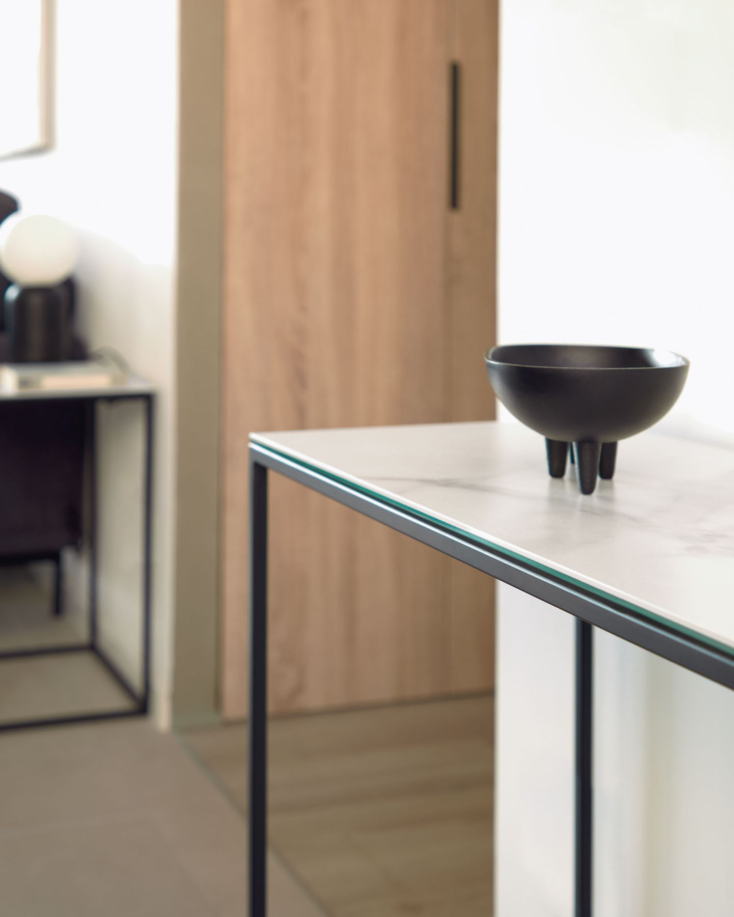 Консольный стол Rewena был разработан и создан с керамической столешницей на стальной основе. Эта модель вдохновлена минималистскими тенденциями и в основном сделана из переработанных материалов.