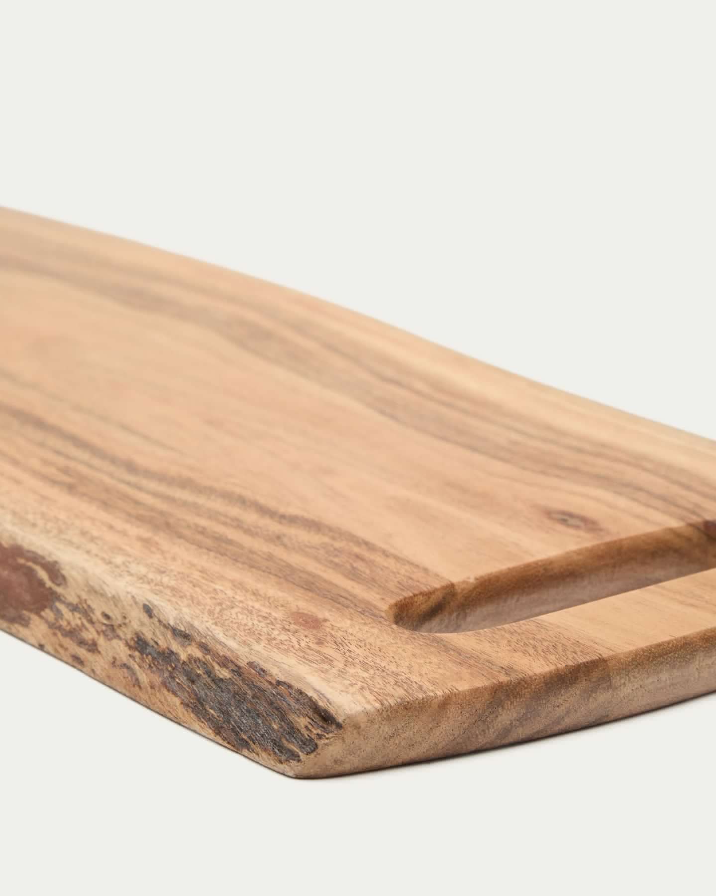 Сервировочная доска Zeun с органическими формами изготовлена из древесины акации, поэтому каждая доска имеет уникальные прожилки и оттенки, не существует двух одинаковых.