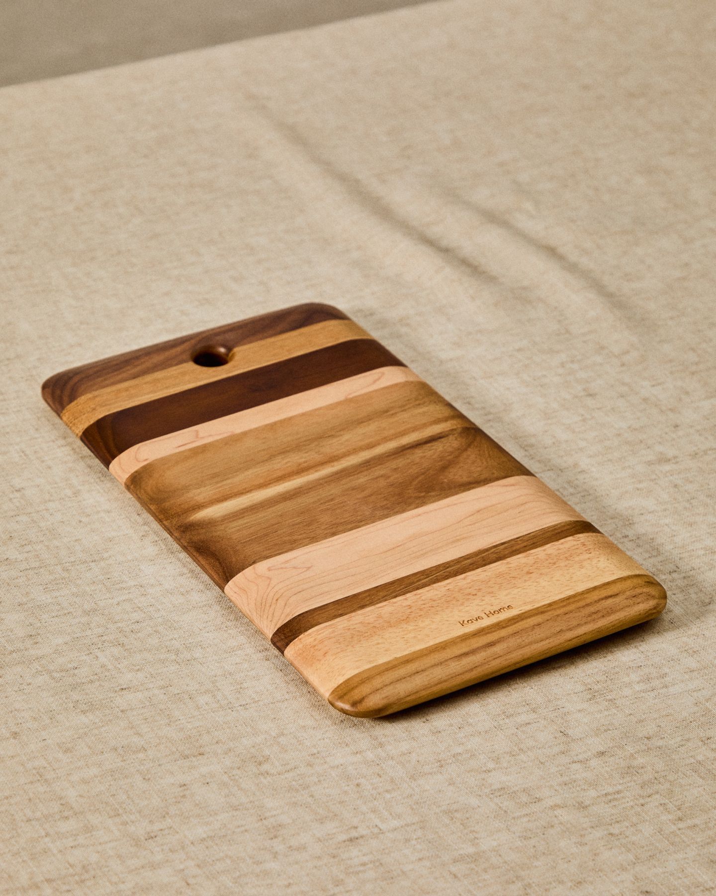Коллекция Nover изготовлена из комбинированных пород дерева. Каждый предмет эксклюзивен, обладает уникальным рисунком и оттенками, которые придают ему неповторимый характер. Древесина сертифицирована FSC™ на 100%, что гарантирует контролируемую цепочку поставок и ответственное лесопользование. Функциональные и декоративные изделия идеально подойдут для вашей кухни и столовой.