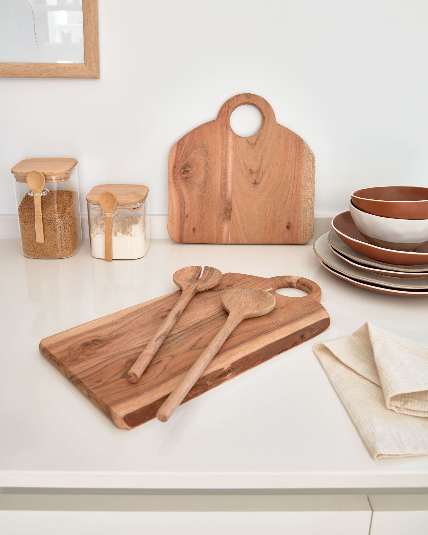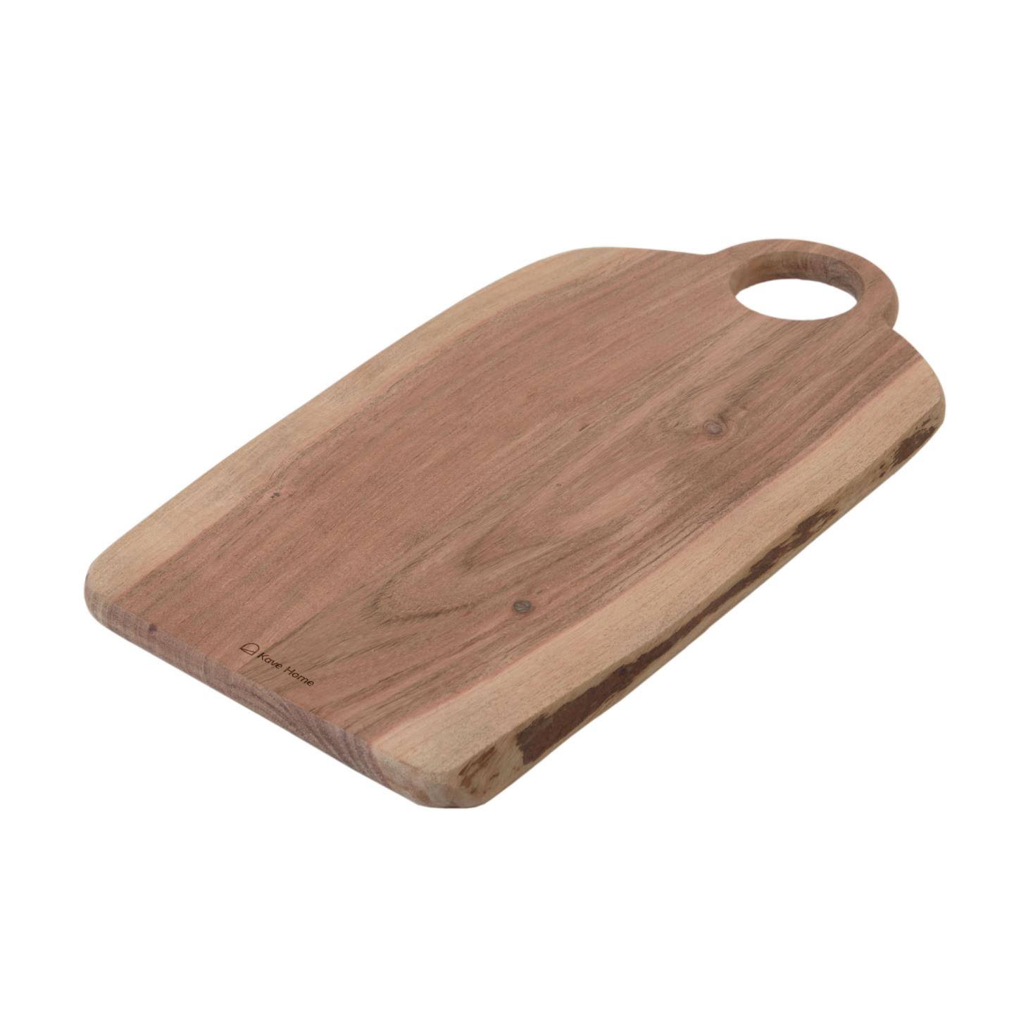 Сервировочная доска прямоугольной формы из массива акации с натуральной отделкой. Обратите внимание на уникальные тона и текстуры. Хотя он не подходит для посудомоечной машины, его легко мыть вручную.