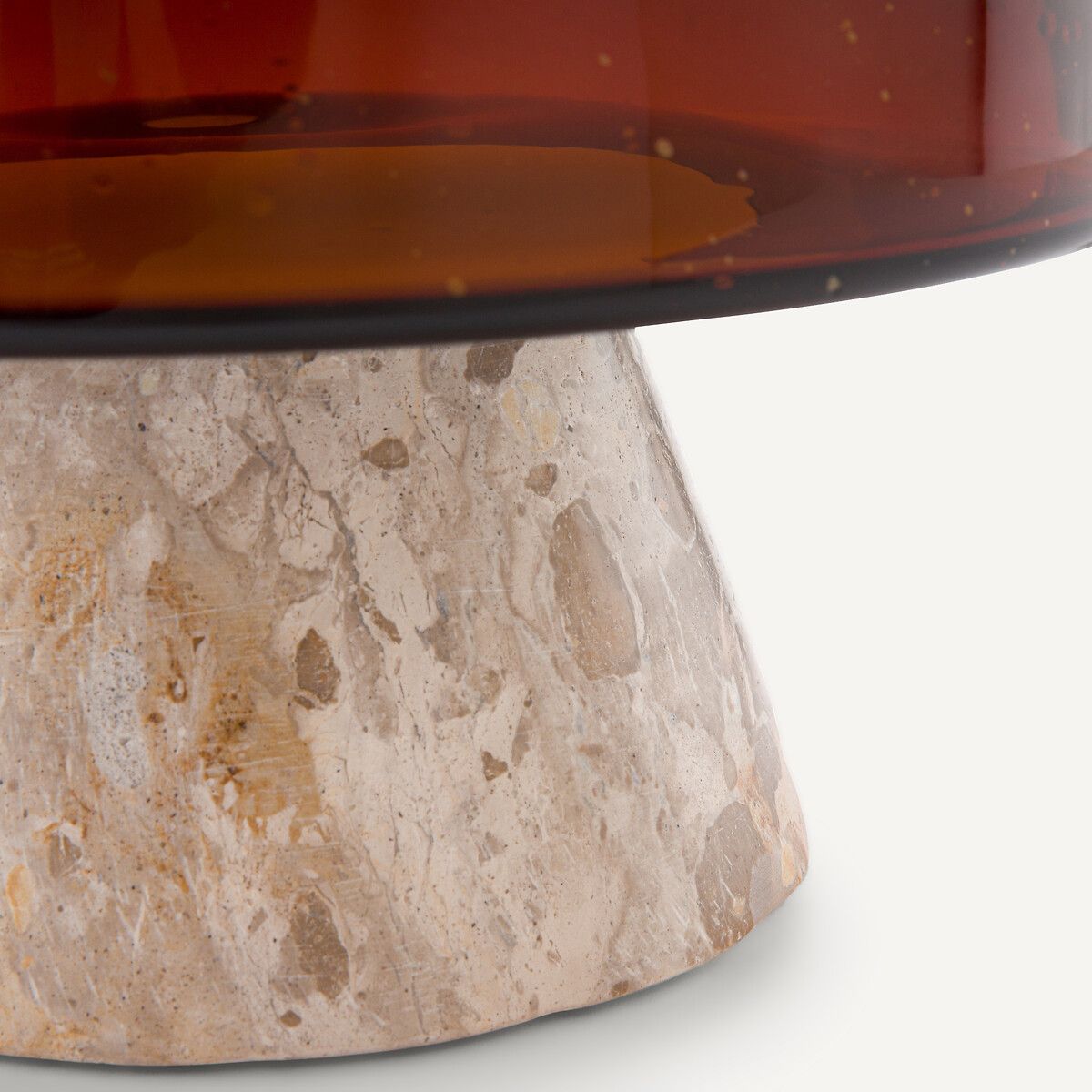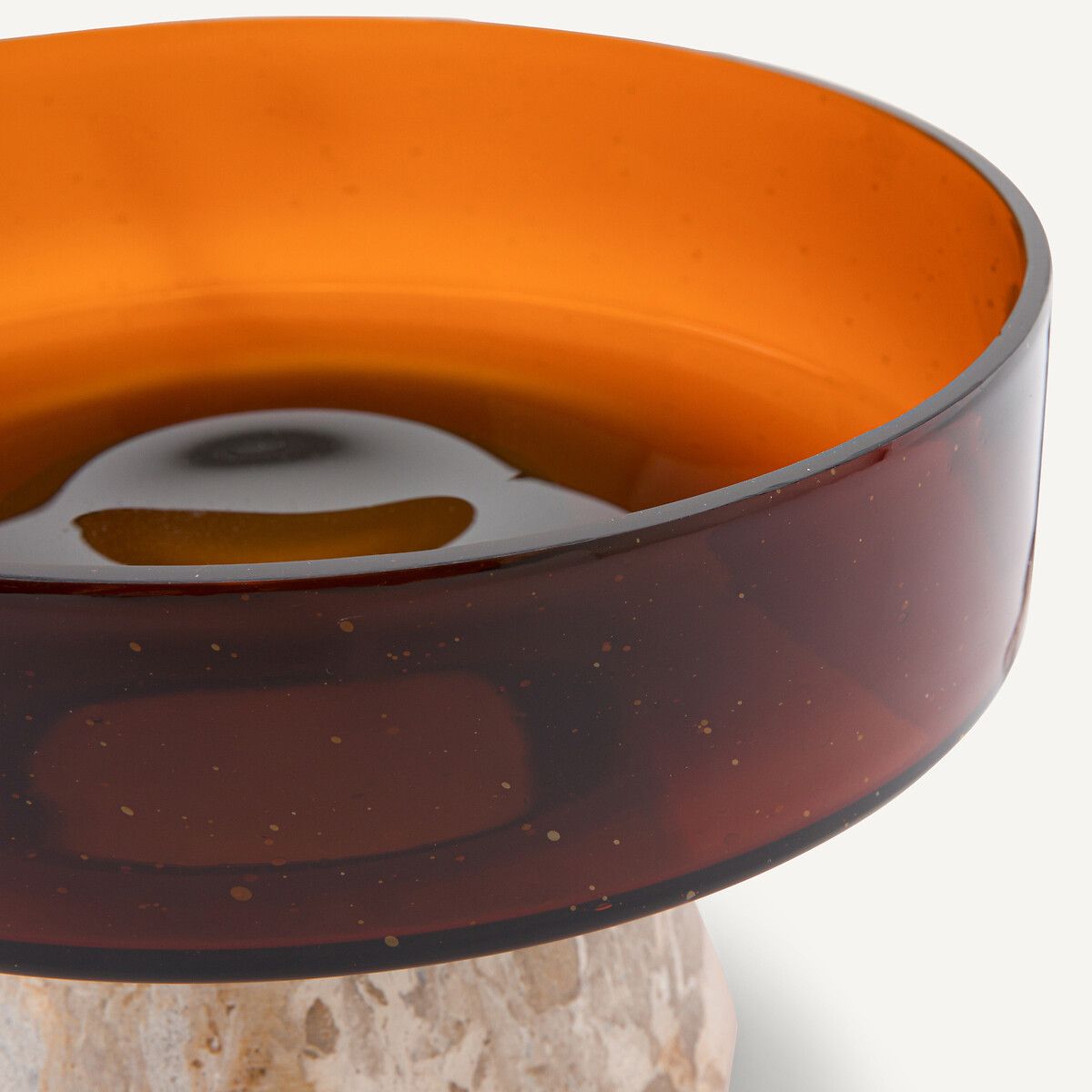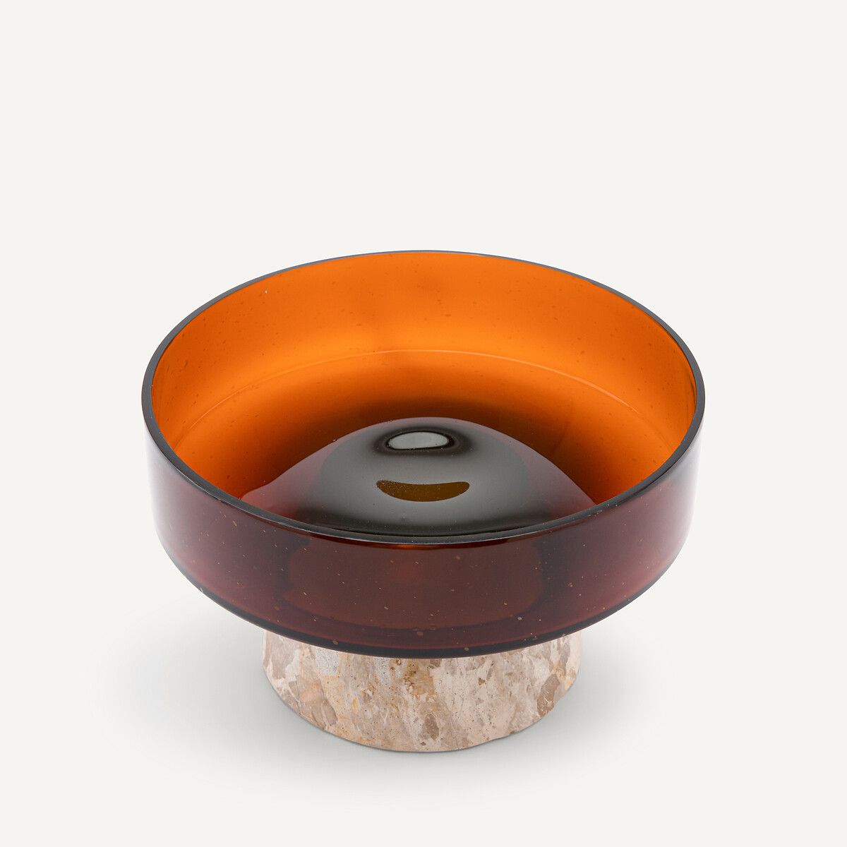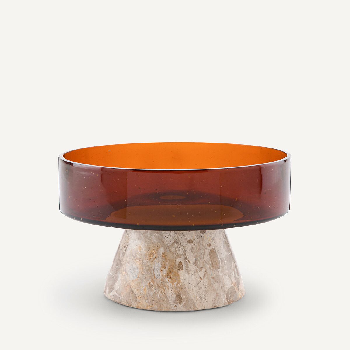 Чаша Trapani с плавными изгибами и большими размерами из тонированного стекла с подставкой из мрамора.