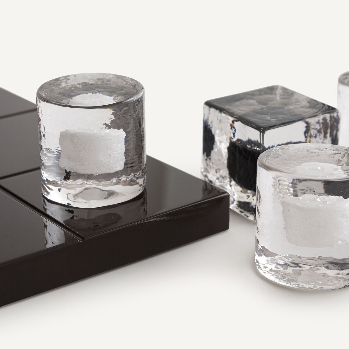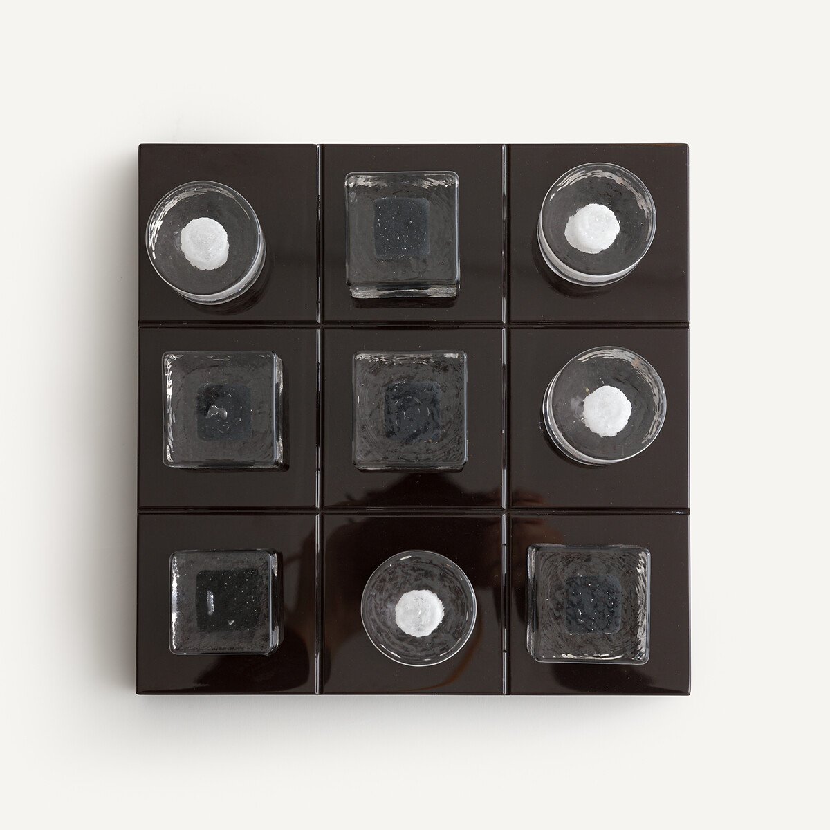 Весело и эстетично. Persée / Персэ задумана как самостоятельный предмет декора. На шоколадном поле (игровой доске) фишки из выдувного стекла, выполненные в черном и белом цветах, улавливают свет в тонкой игре оттенков.Их прозрачность и изысканные детали создают элегантный и вневременной эффект, характерный для изделий ручной работы из стекла. Дизайн AMPM.Описание • Столешница из МДФ, покрытие нитроцеллюлозным лаком • 9 съемных фишек из выдувного стекла, окрашенного в массе. Ручная работа, каждое изделие уникально. Форма, цвет и размеры изделия могут незначительно отличатьсяРазмерыСтолешница • Ширина: 25 см • Глубина: 25 см • Толщина: 1,5 смРазмеры деталей : • Кубическая форма: 5 x 4,5 x 5 см • Цилиндрическая форма: Диаметр 5 см x 5 смРазмеры и вес упаковкиОдна упаковка • Ш29 x В14 x Д29 см, 3,44 кг