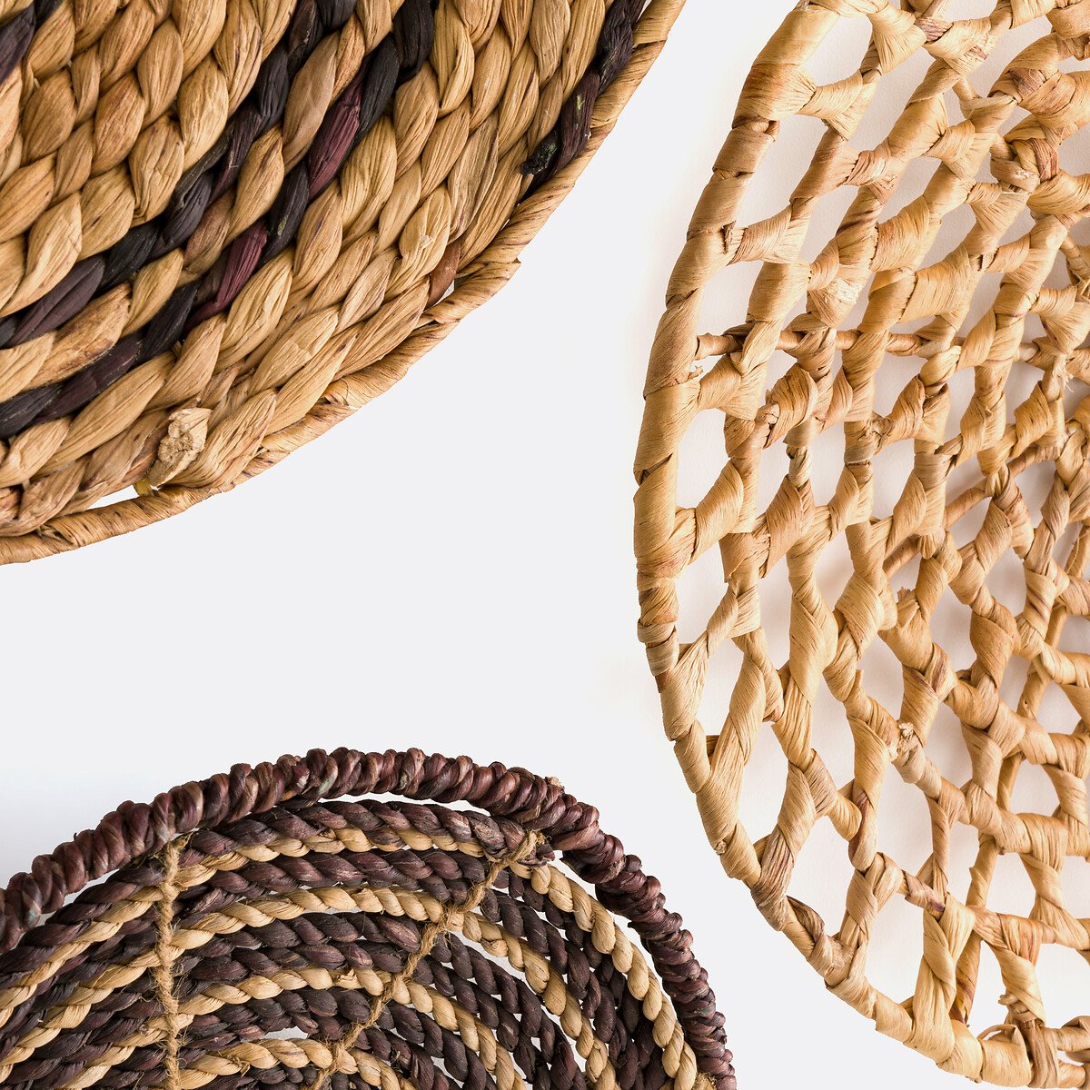 — 3 диска из водного гиацинта, вставляющиеся один в другой, спиральный мотив.