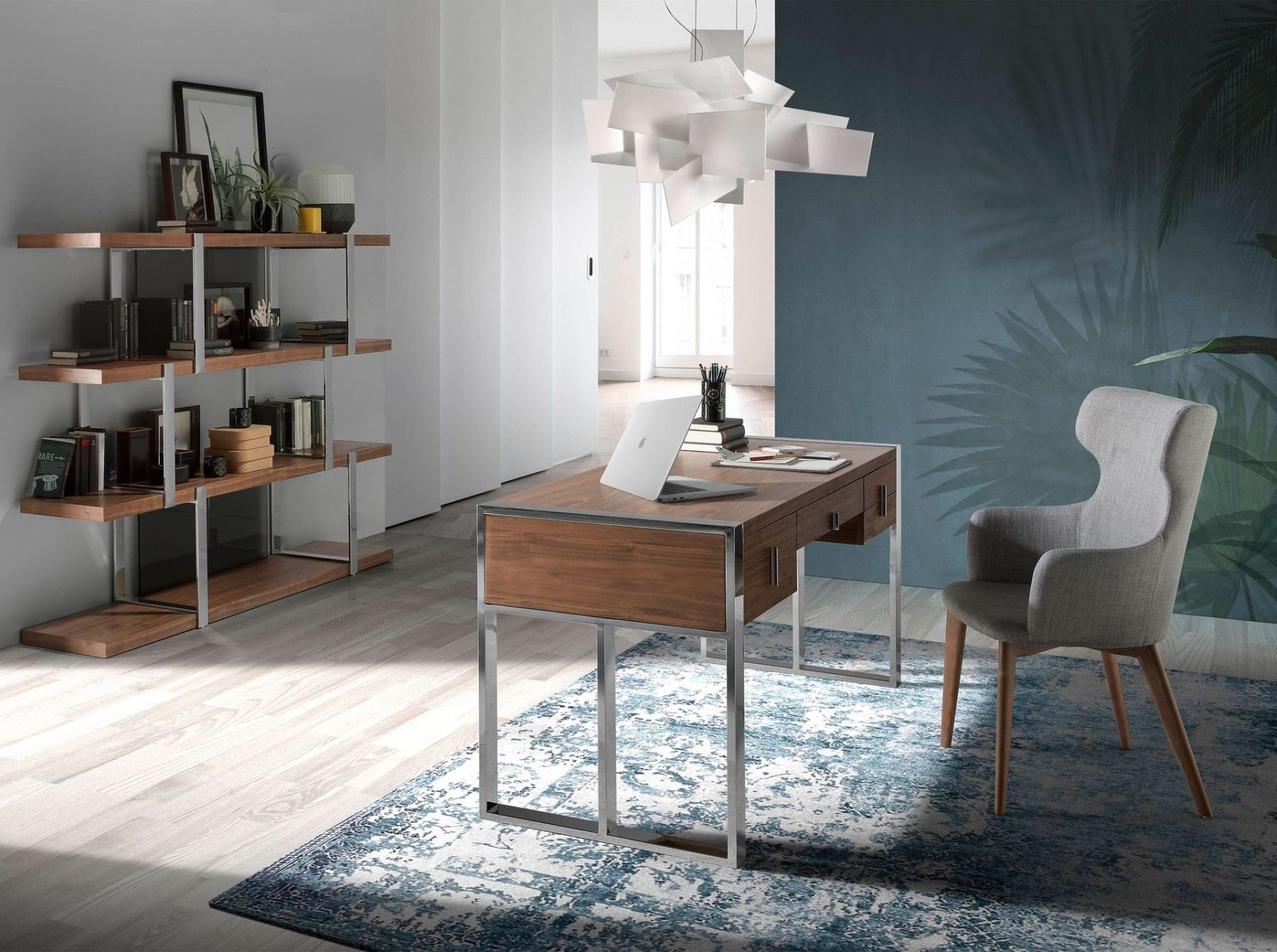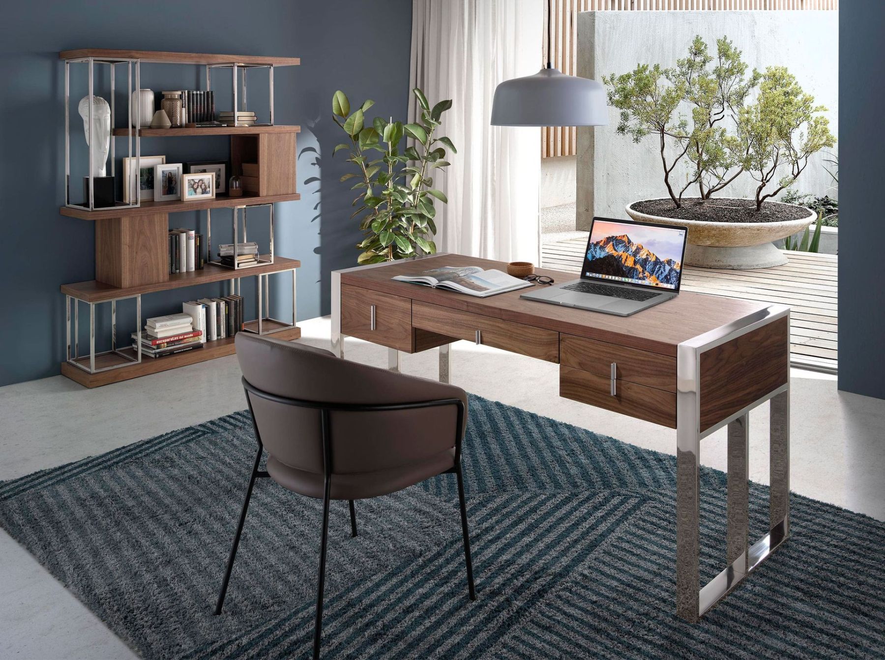 Идеальный стол, чтобы привнести тепло и авангард в ваш офис, кабинет или рабочую зону, а также сохранить все в порядке благодаря четырем ящикам с системой плавного закрывания и оригинальным серебристо-серым ручкам.