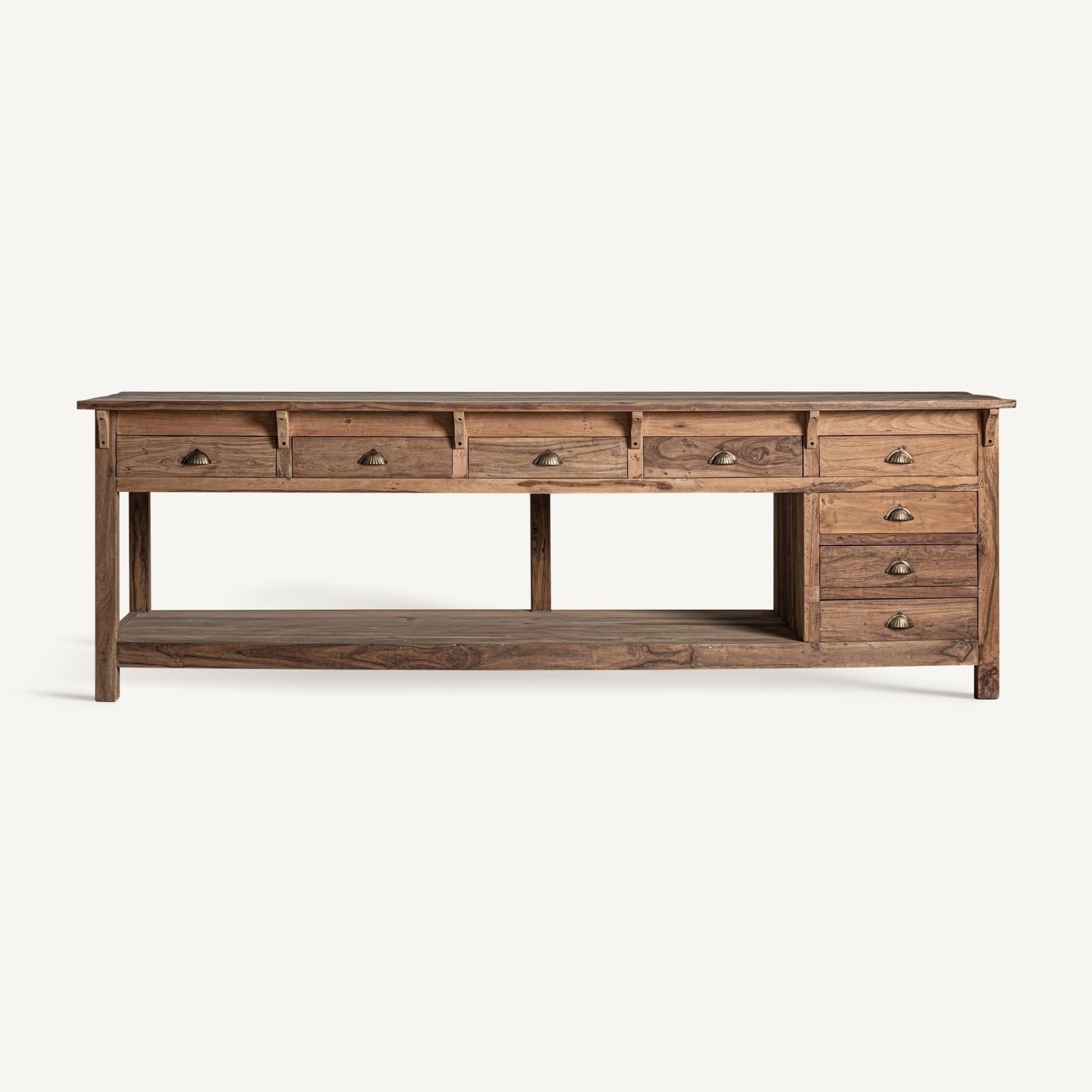 Письменный стол Nehren, коричневый цвет, колониальный стиль. Изготовлен из вторичной древесины.