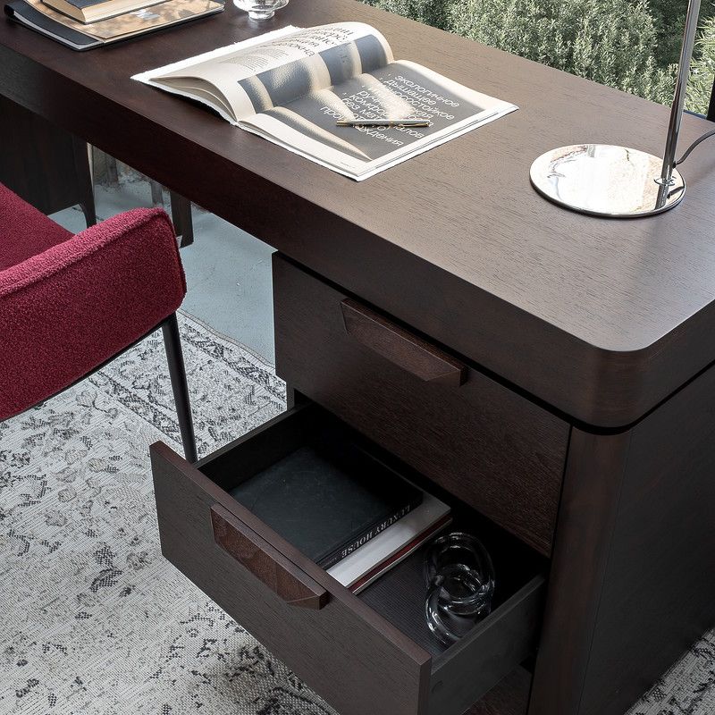 У стола 3 выдвижных ящика с направляющими системы soft-close. Уникальная система последнего поколения добавляет невероятную плавность открывания/закрывания. Ручки из массива дерева.