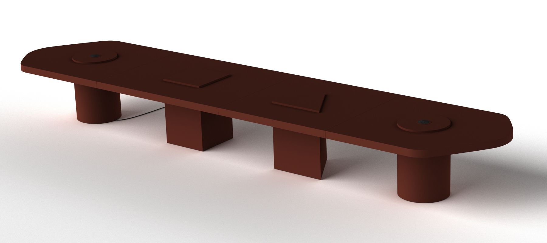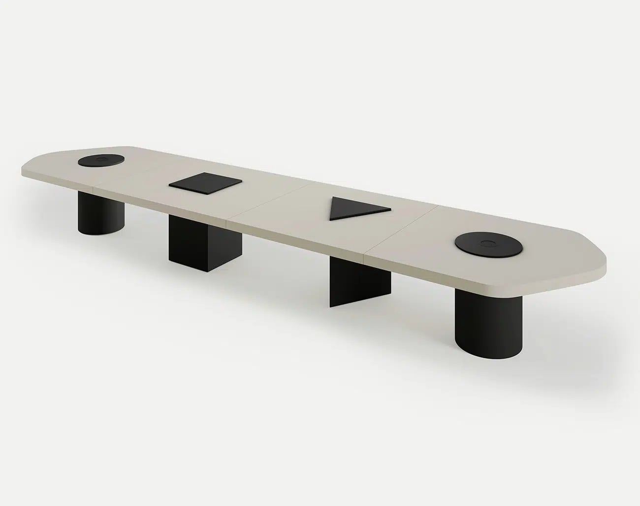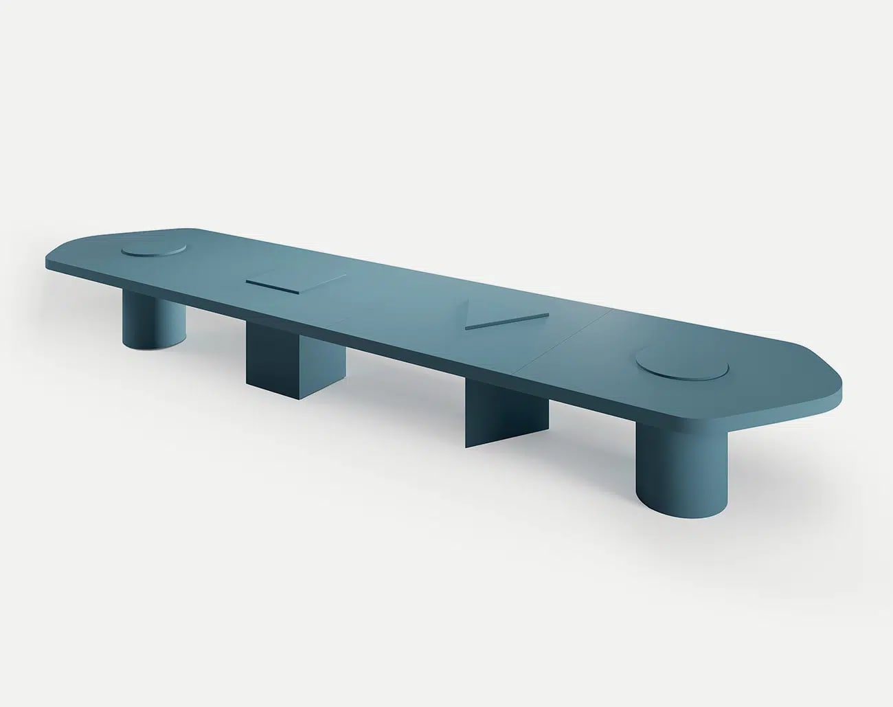 Конференц-стол, спроектированный как модульная система, позволяет динамично и гибко конфигурировать рабочие места или помещения для совещаний. Всего из четырех модулей можно создавать различные конфигурации, начиная от начальной длины в 3,2 м и заканчивая конфигурациями большего размера, используя модули с различными геометрическими формами в качестве основы. Начальный и конечный модули размером 160 см с кругом в качестве основания сохраняют скульптурную составляющую, контрастирующую с асимметричной столешницей. В модуле длиной 140 см в качестве основания используется треугольник, а в модуле длиной 180 см - квадрат. Каждый модуль стола Bold может быть покрыт одноцветным матовым или глянцевым лаком, а также матовым цветным покрытием.