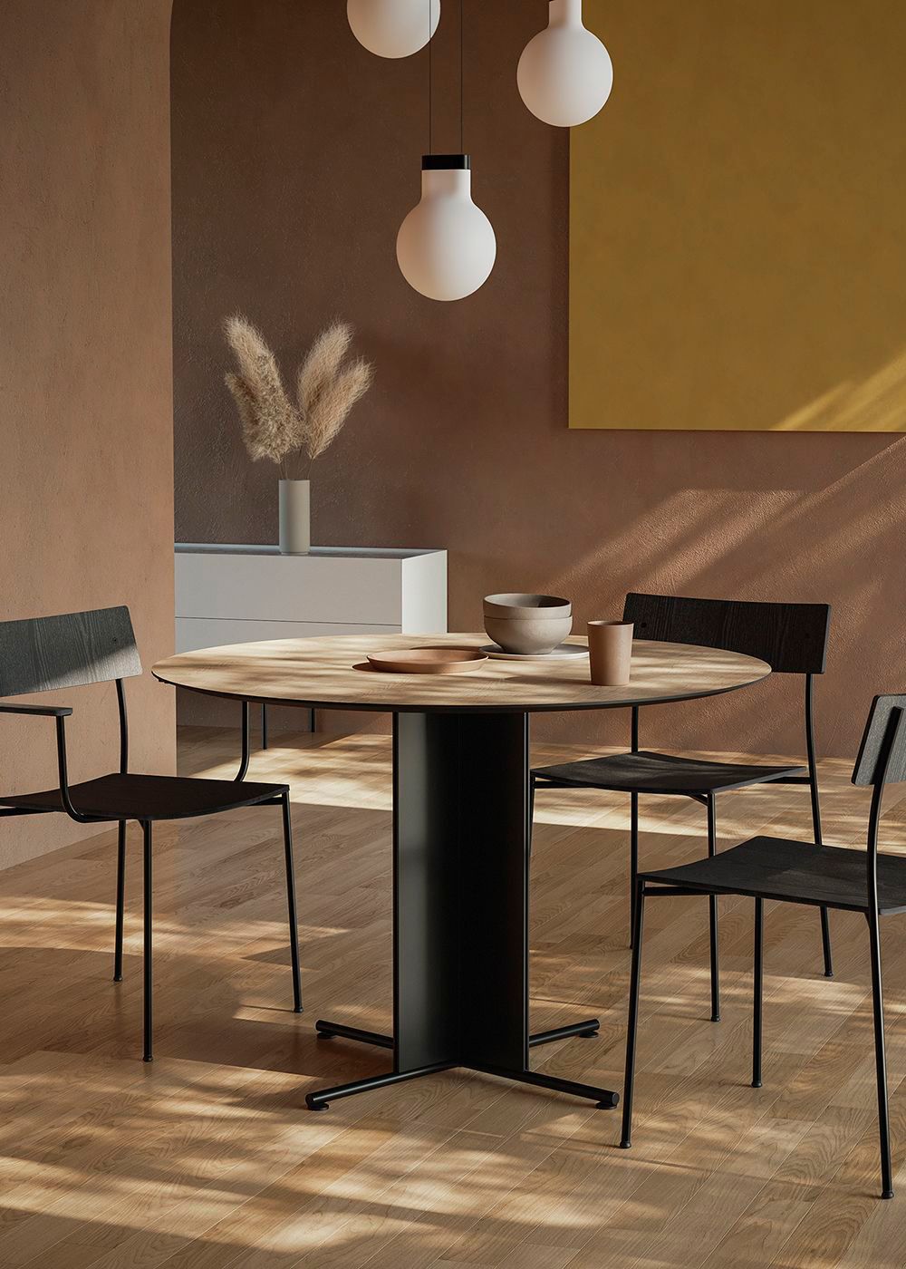 Линейная структура основания стола OX сформулирована из крестов, симметричных и точных, которые поддерживают непрерывный диалог с изогнутой вершиной. Доступный в широком разнообразии цветов и размеров, в результате получается сбалансированная и строго функциональная композиция. Основа выполнена из стали с черным порошковым покрытием, столешница, толщиной 22 мм изготовлена из шпона дуба.