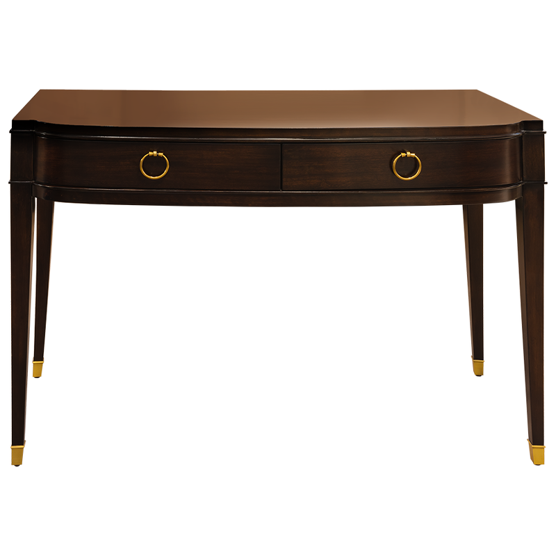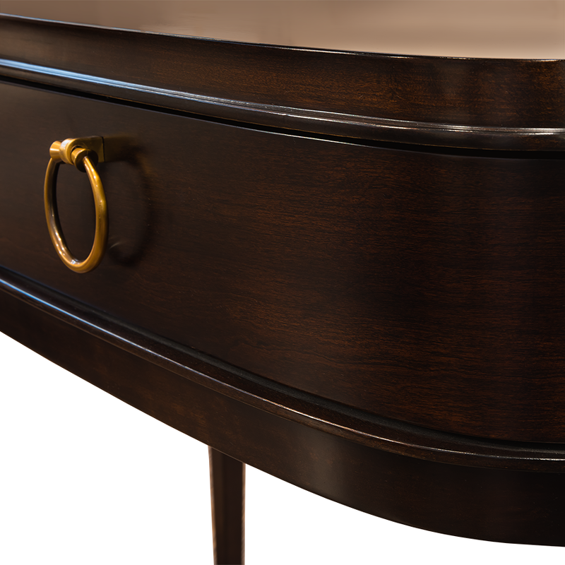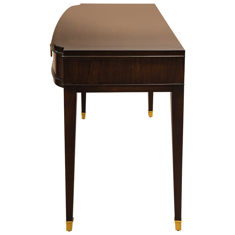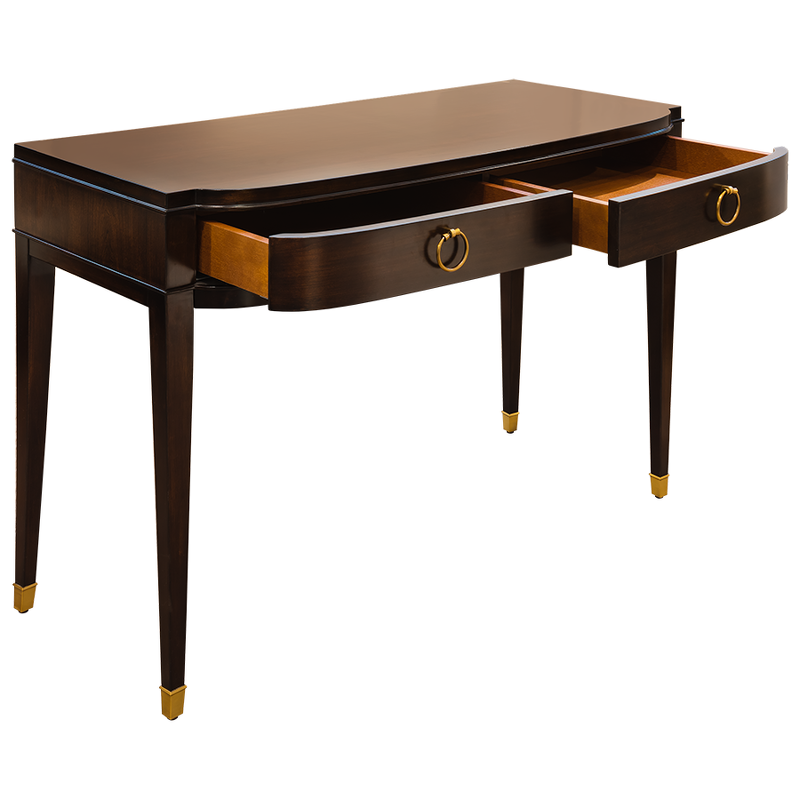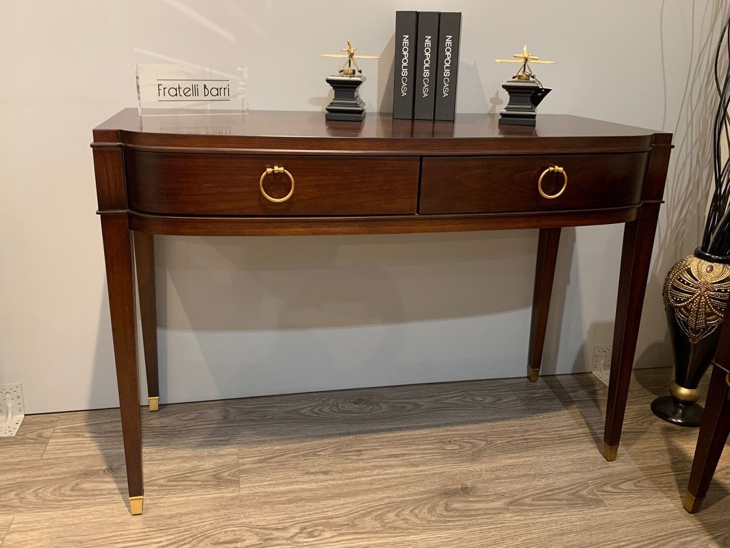 Изящный туалетный столик Modena от итальянского бренда Fratelli Barri. Столик в неоклассическом стиле, с двумя выдвижными ящиками. Закругленные фасады. Отделка - шпон вишни. На ножках металлические колпачки.