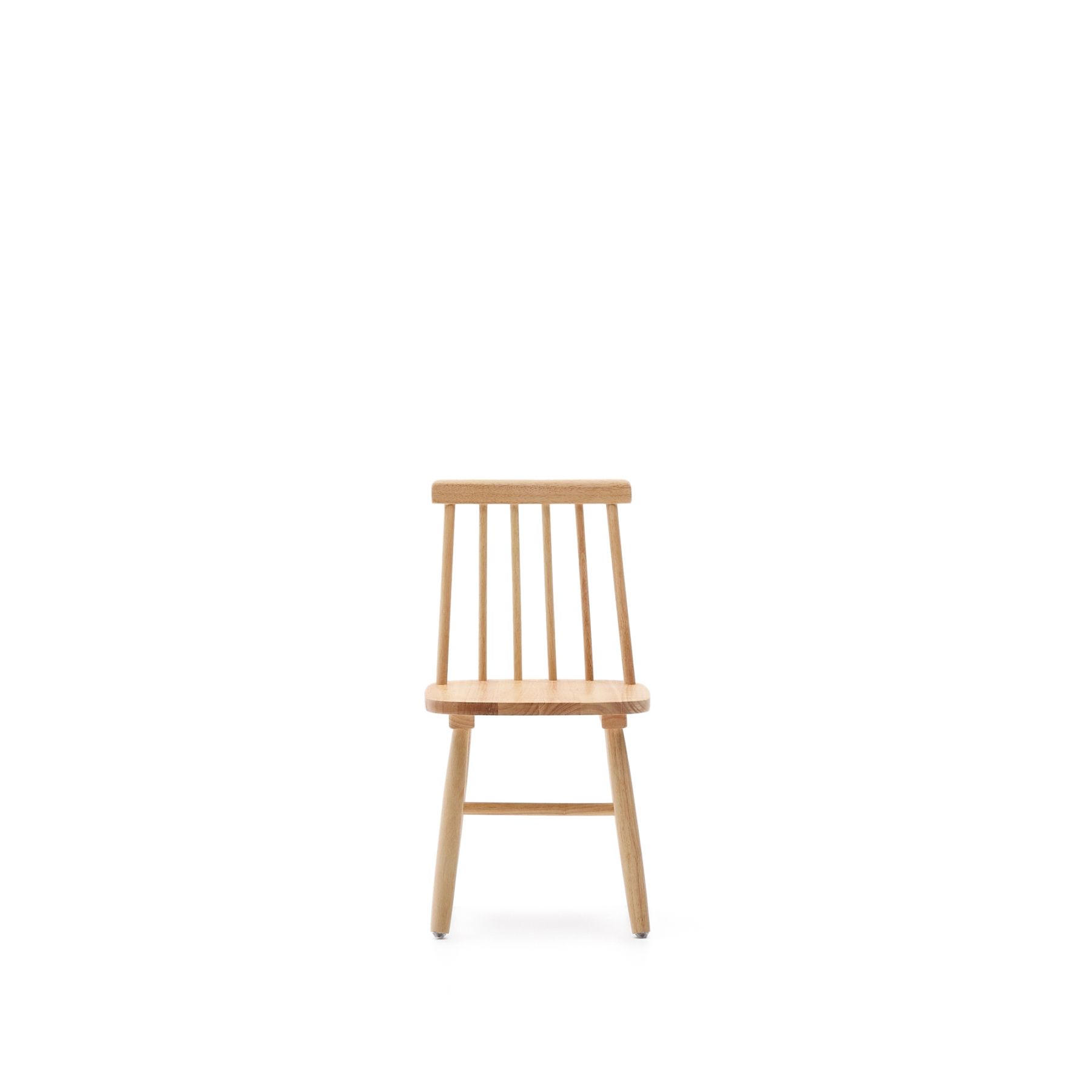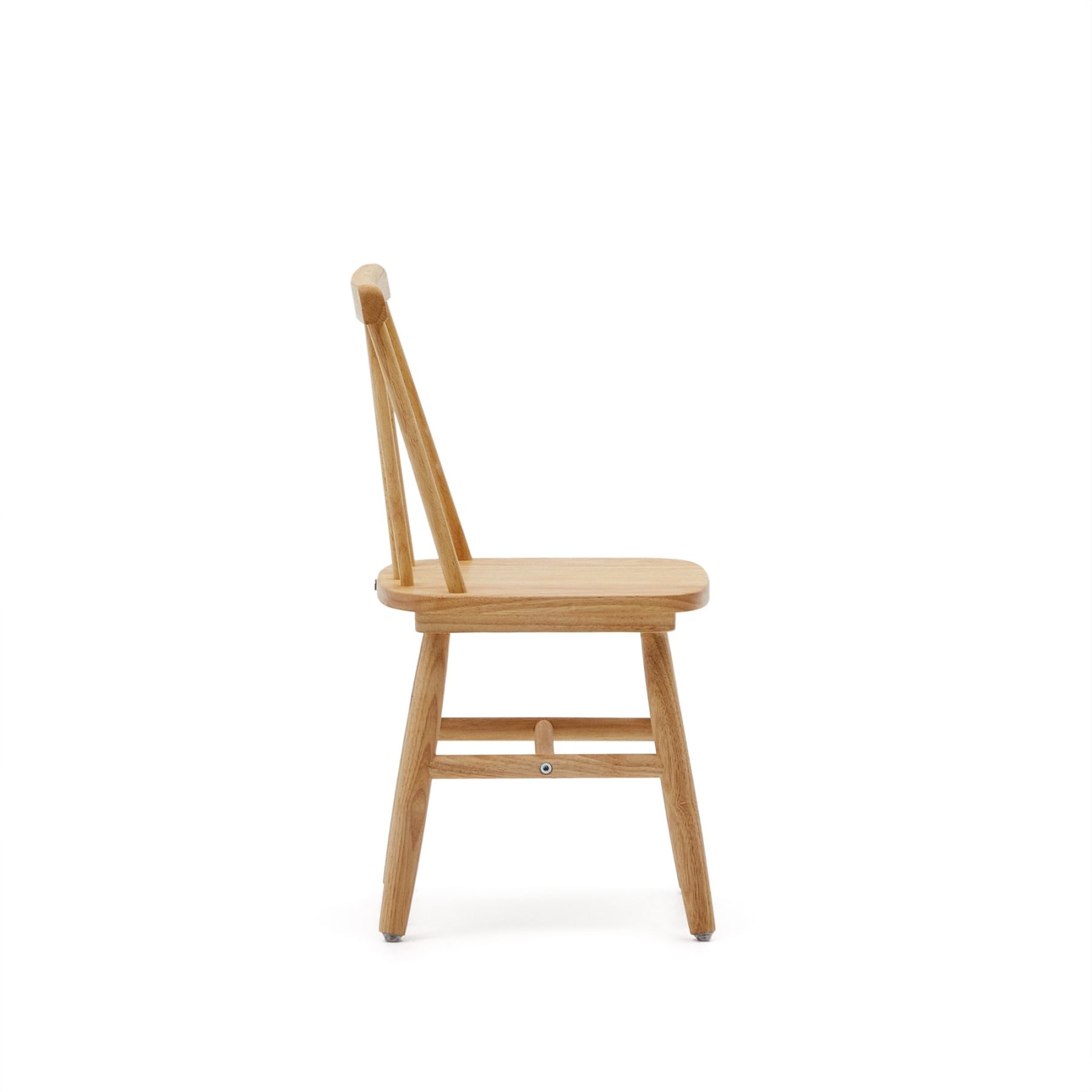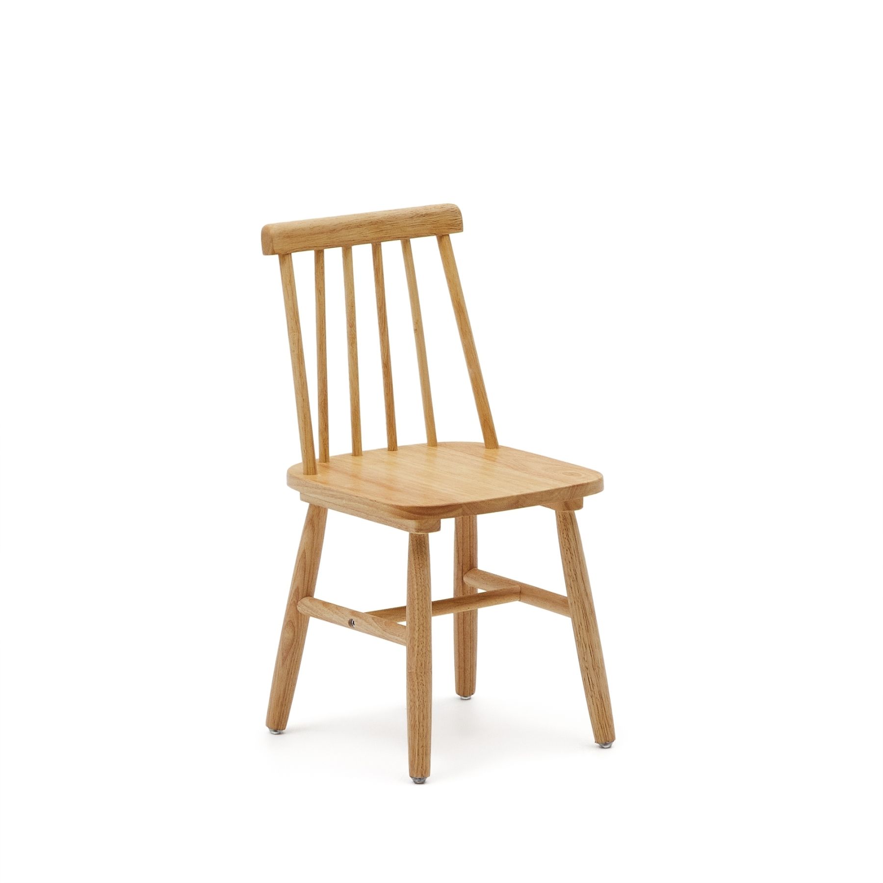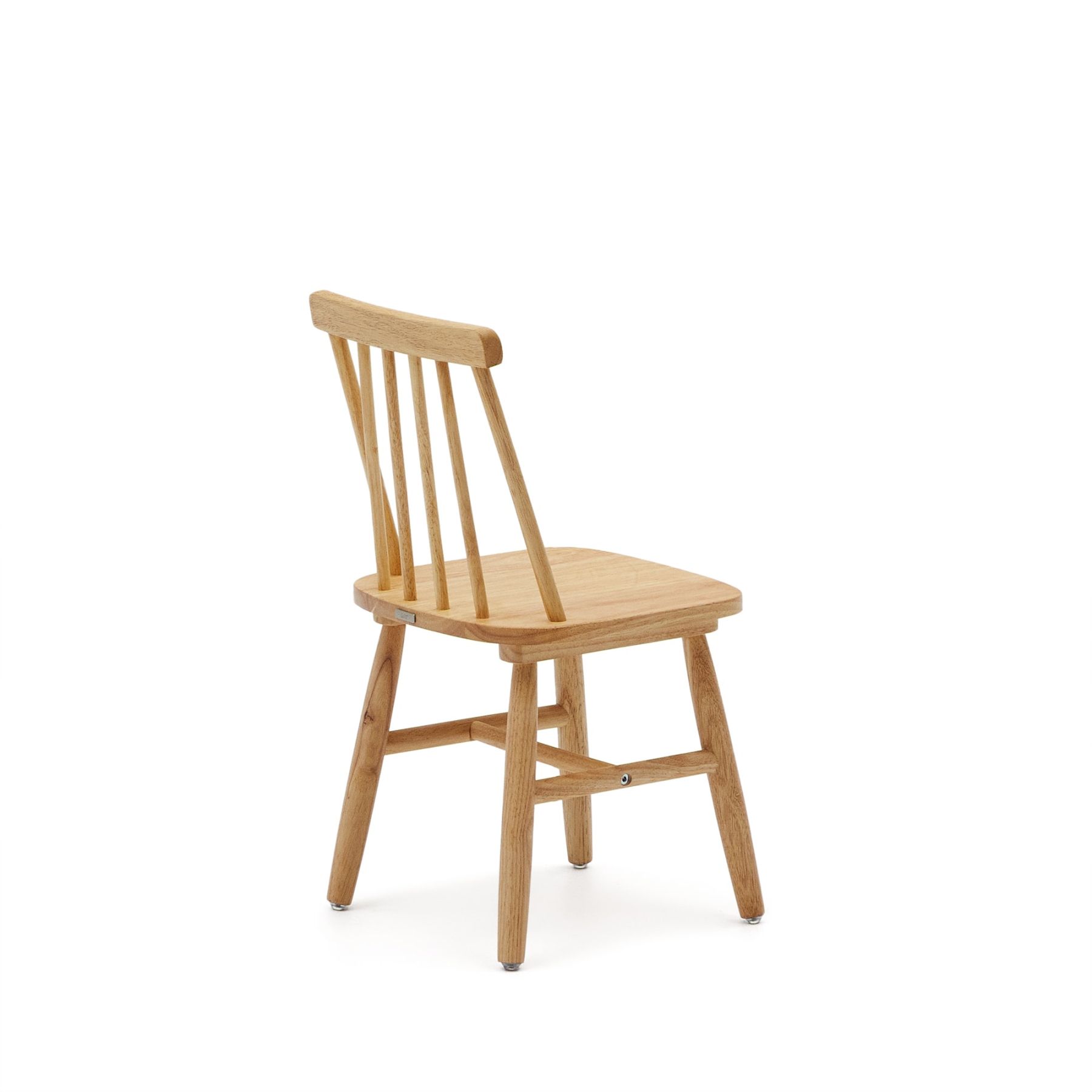Стул полностью сделан из каучукового дерева, имеет традиционную форму и конструкцию. Сиденье с глубиной 31 см оснащено реечной спинкой высотой 29 см.