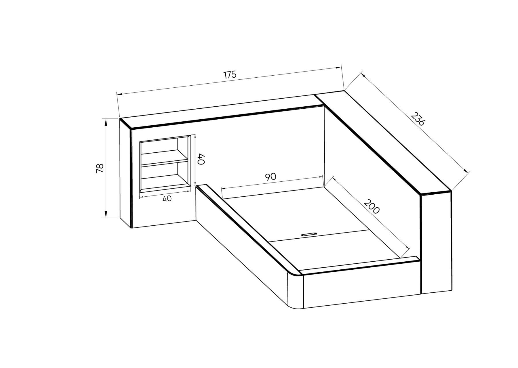 Оснащена подъёмным механизмом, местом для хранения, нишей и розеткой