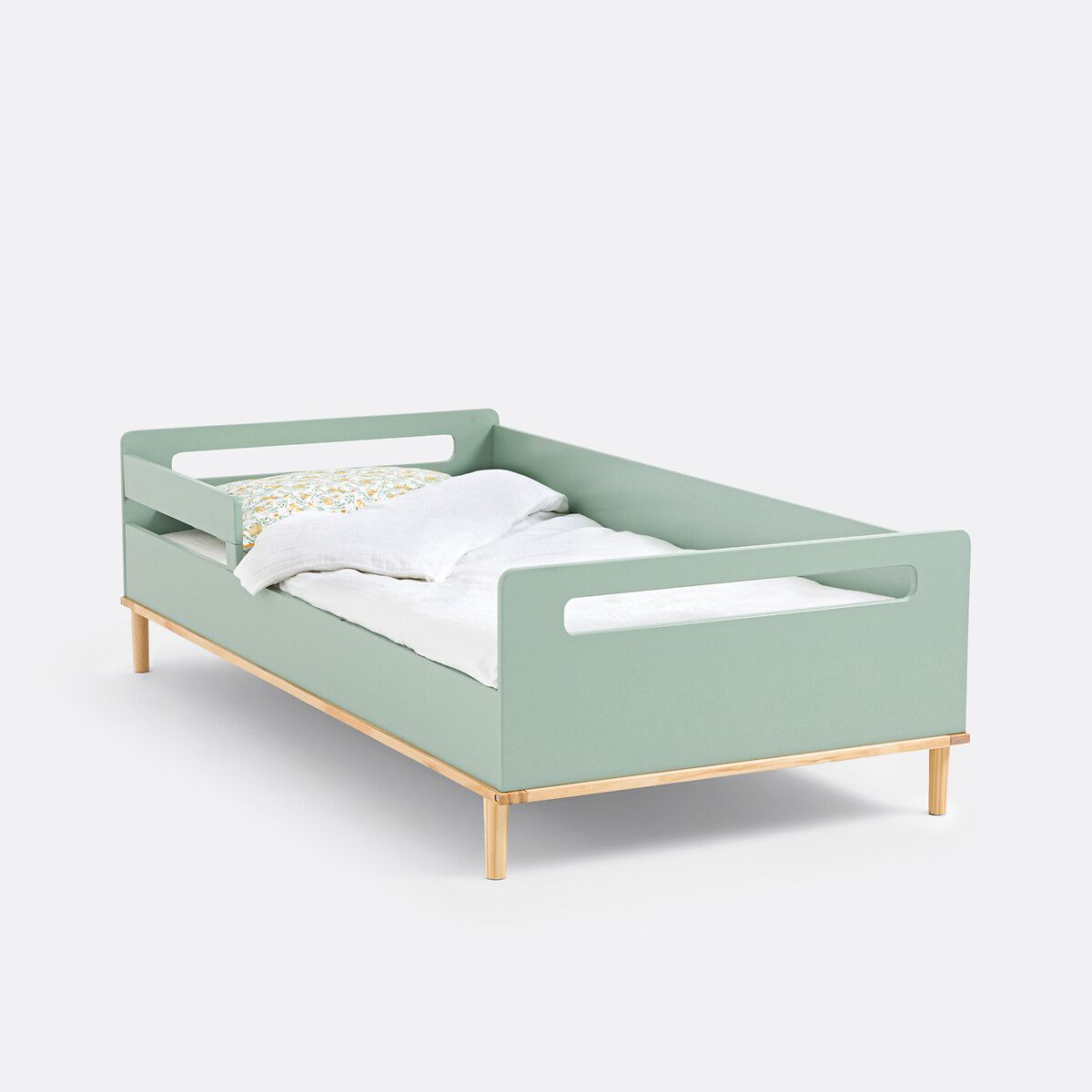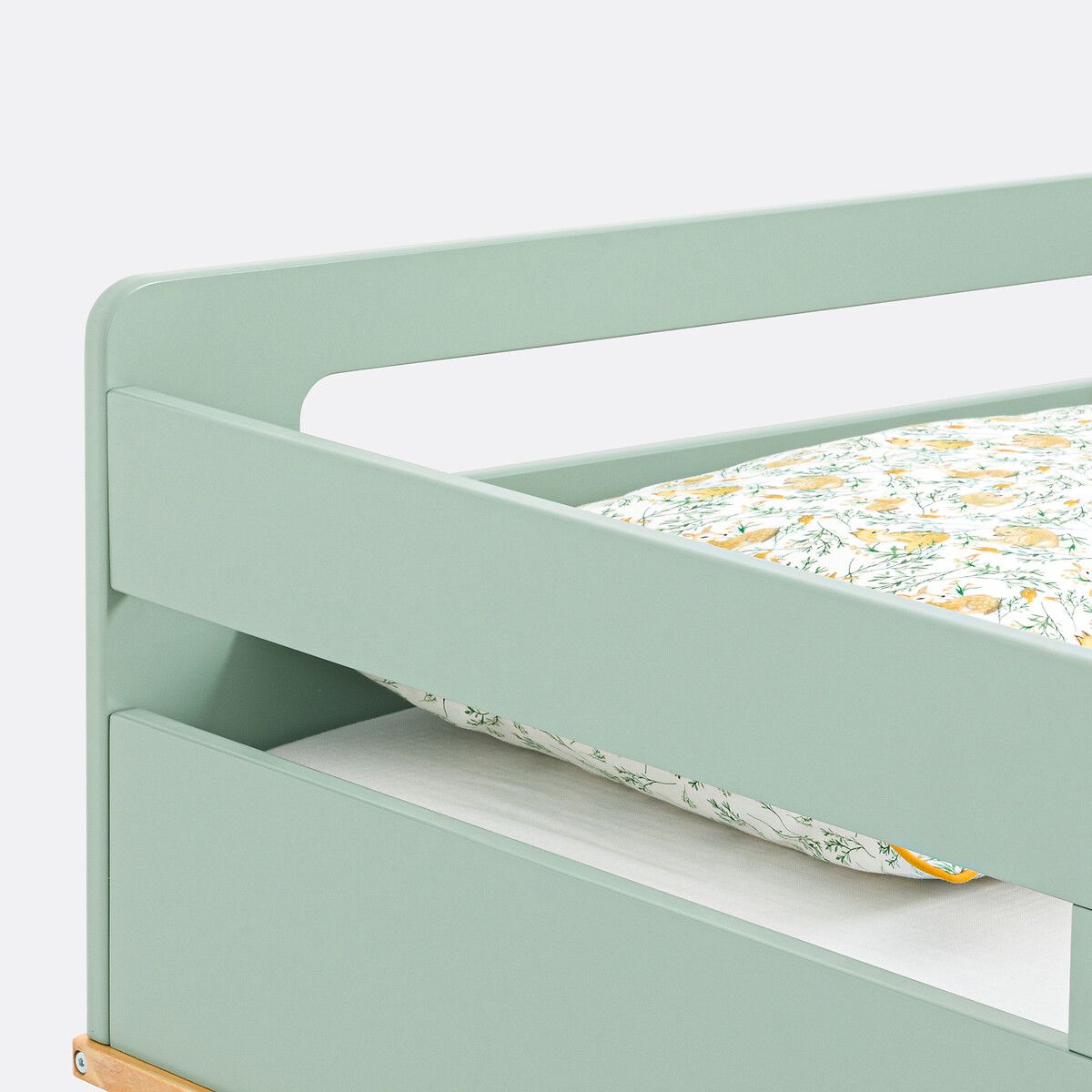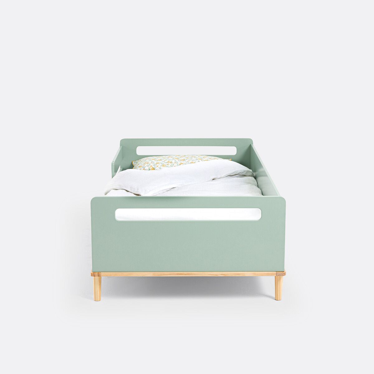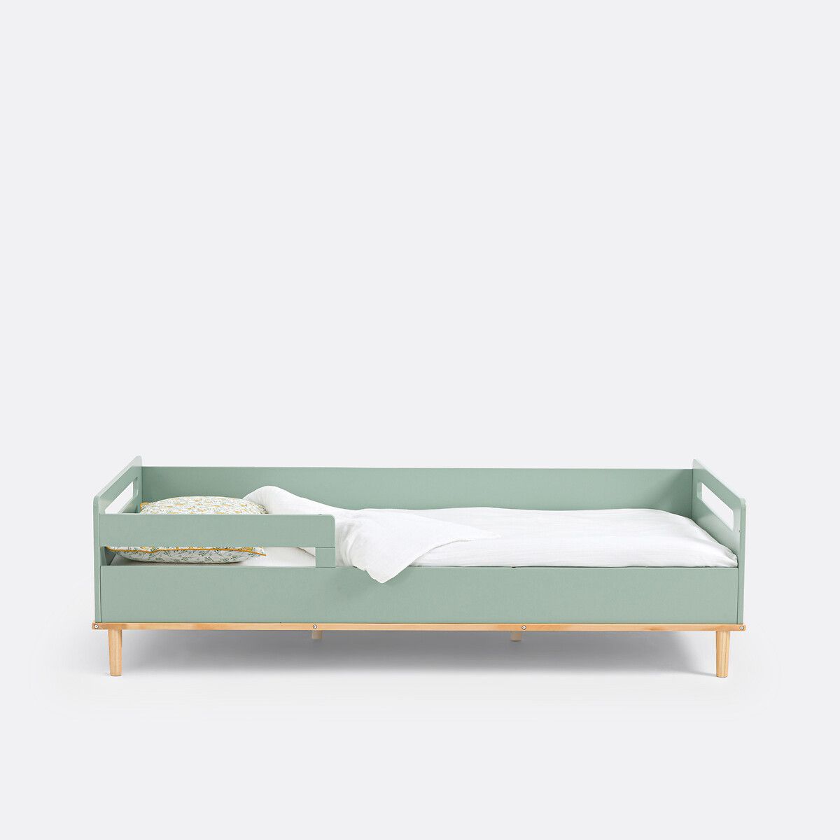 Диван-кровать в современном стиле с сеткой простой формы легко найдет свое место в детской спальне. Благодаря защитной панели ее можно использовать, не опасаясь за ребенка.