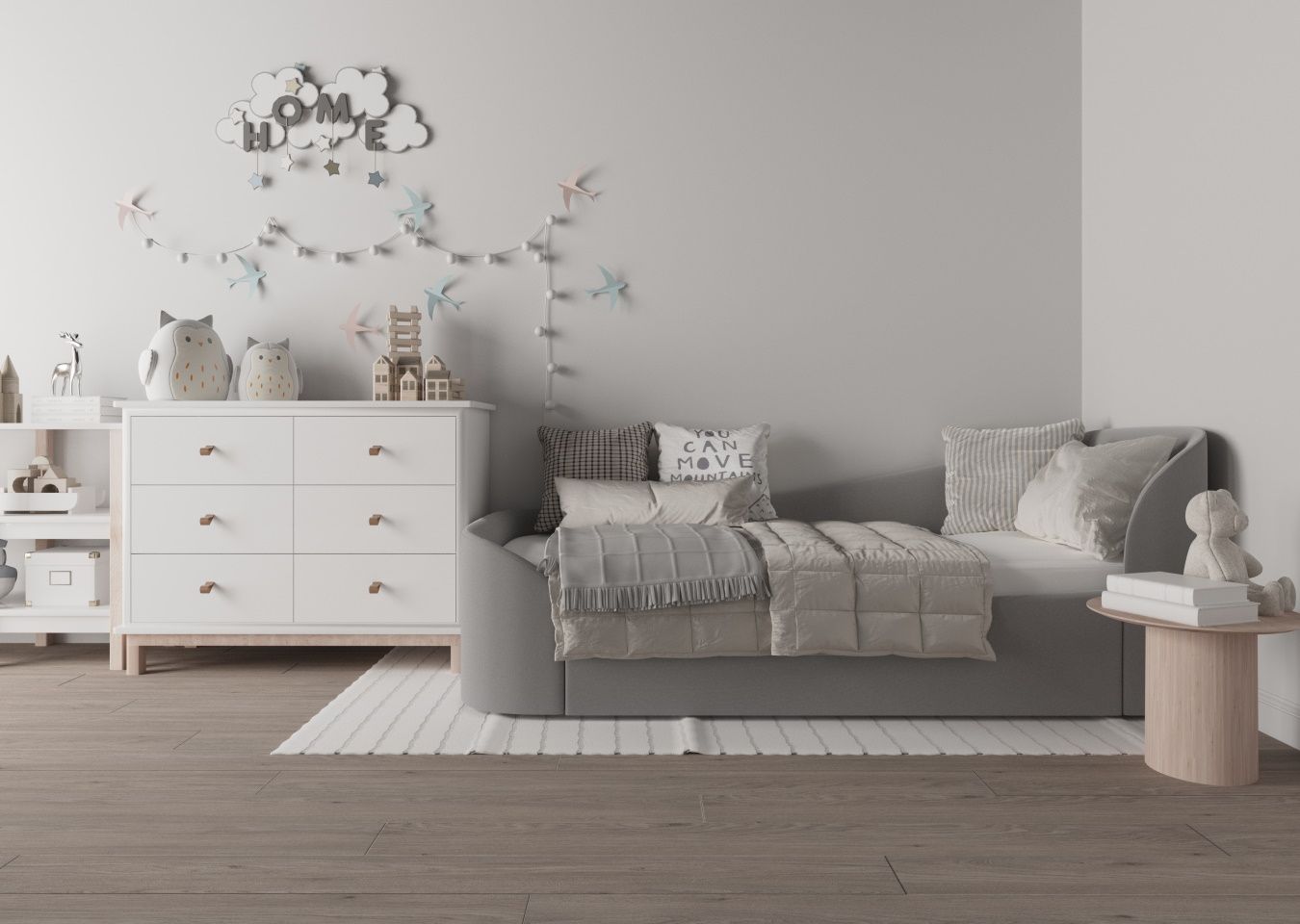 Закруглённые углы и мягкая приятная на ощупь обивка делают диван уютным и безопасным