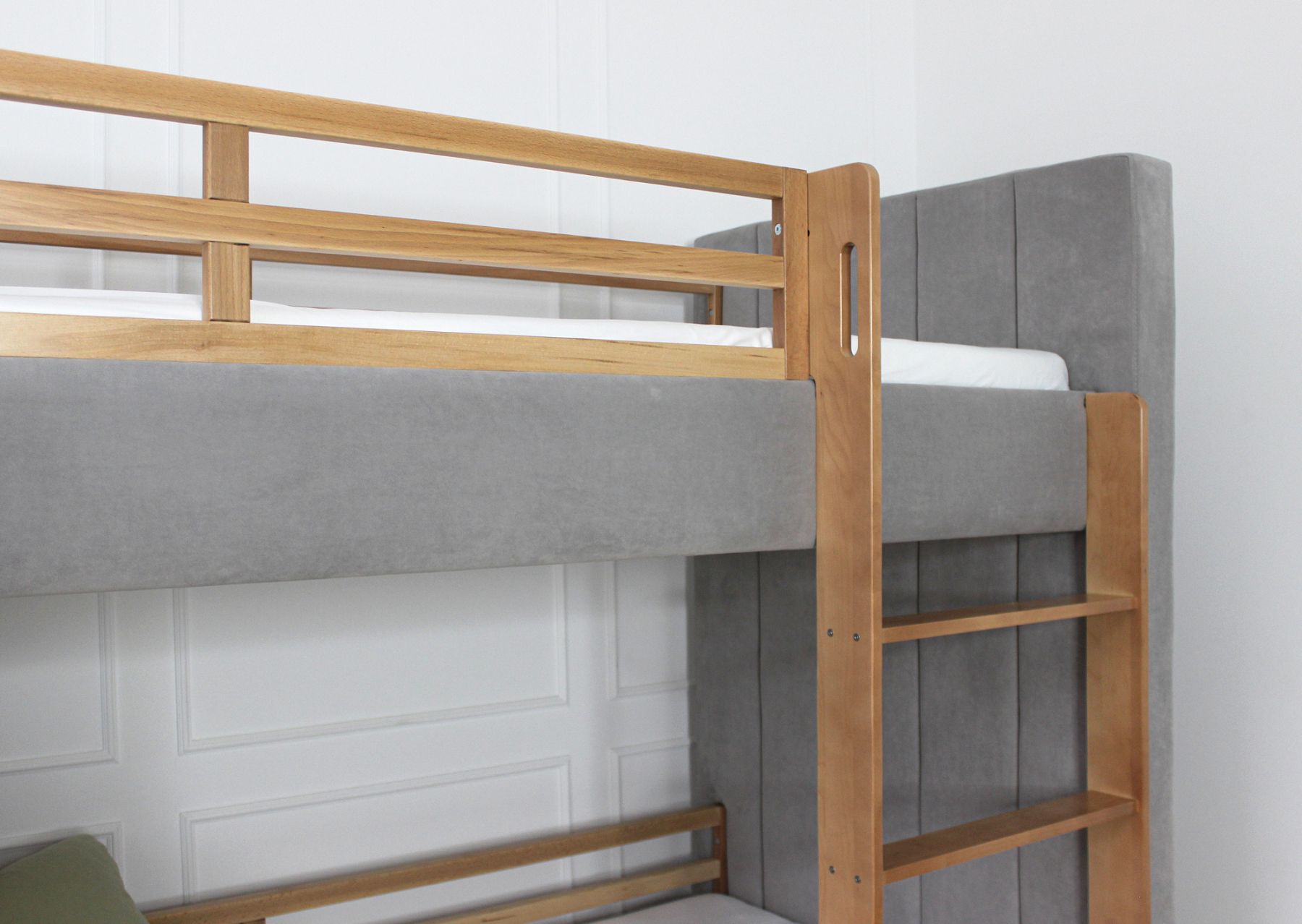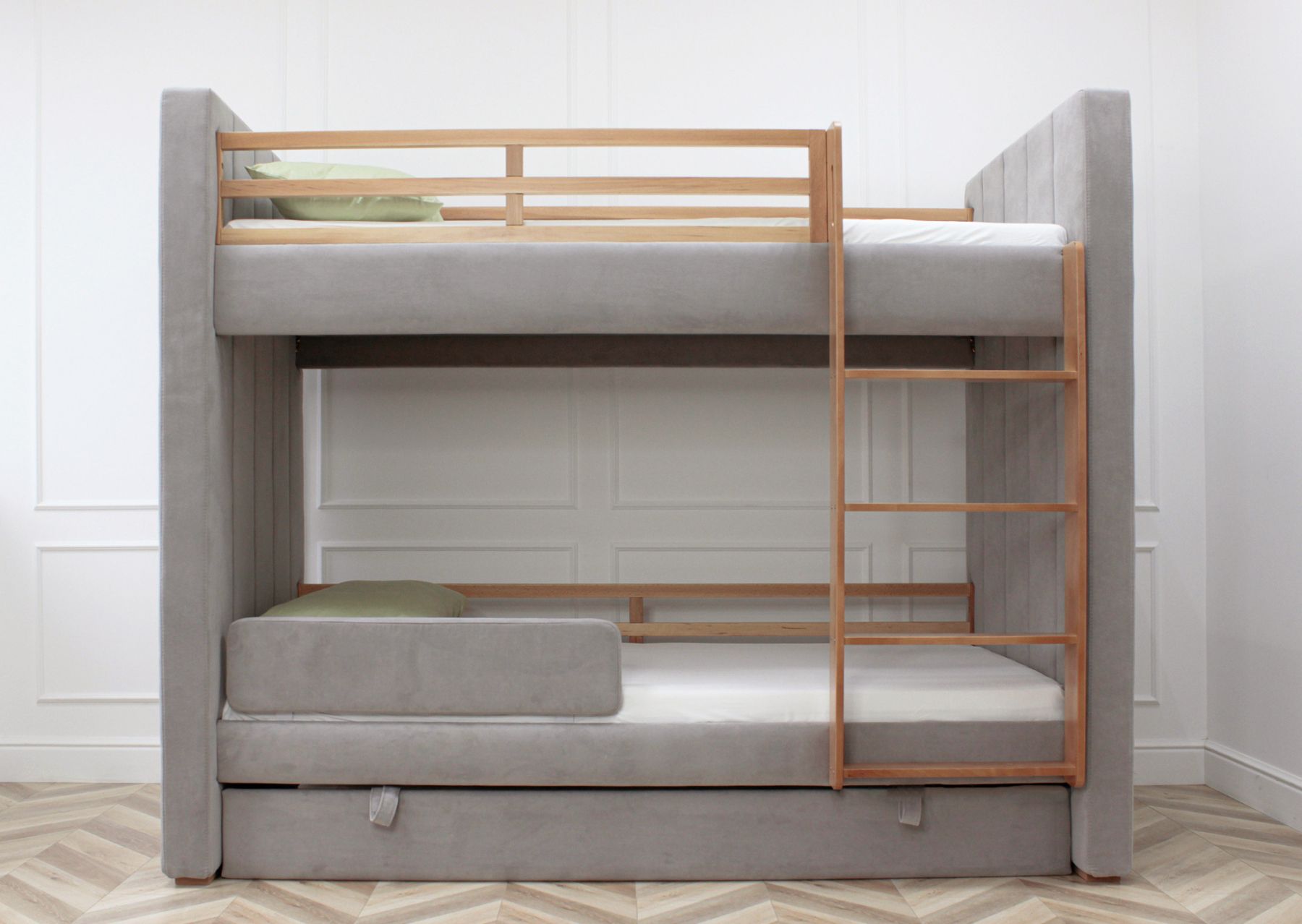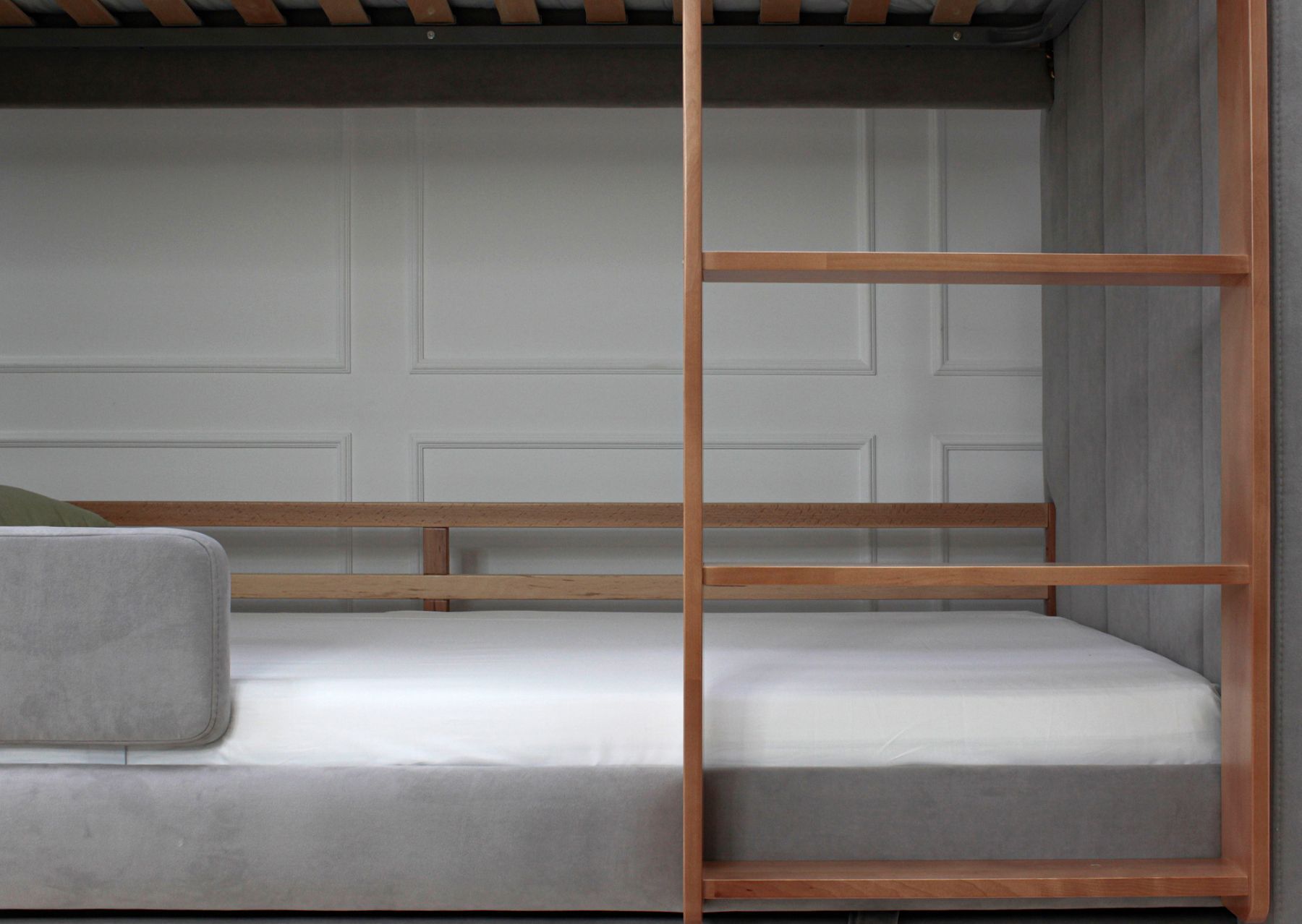 Мягкая уютная двухъярусная кровать Cosy может быть выполнена в различных цветах: бежевый, серый или розовый