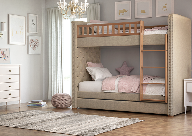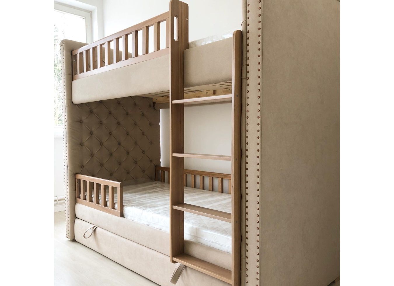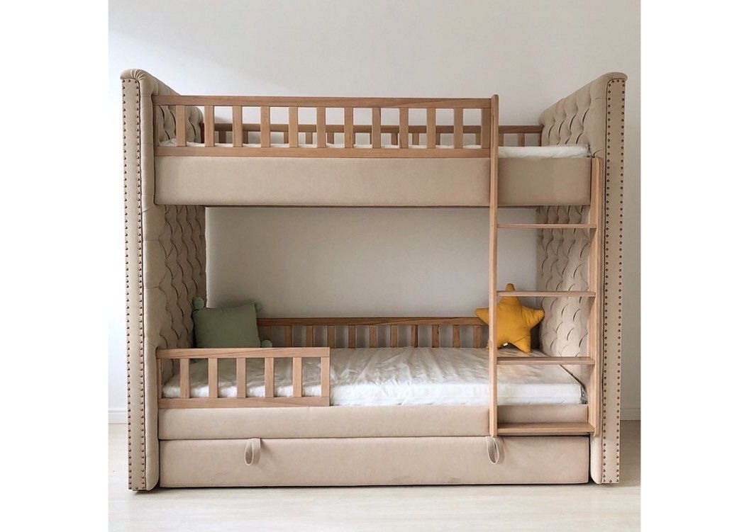 Мягкая уютная двухъярусная кровать Elit soft с каретной стяжкой