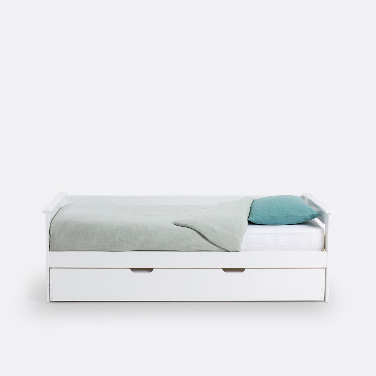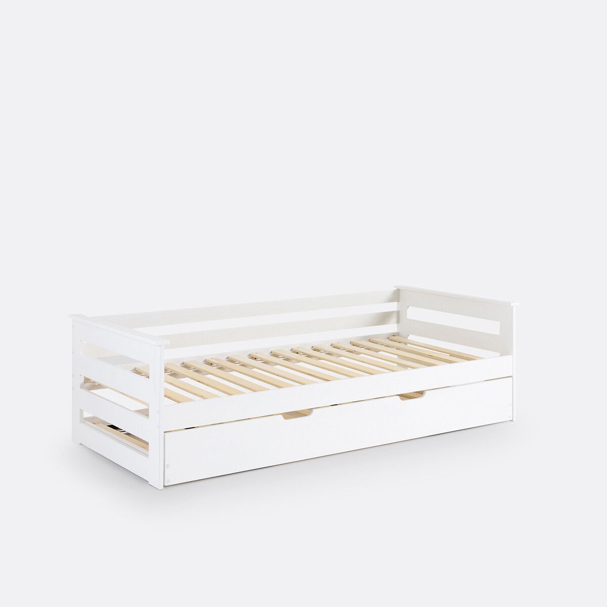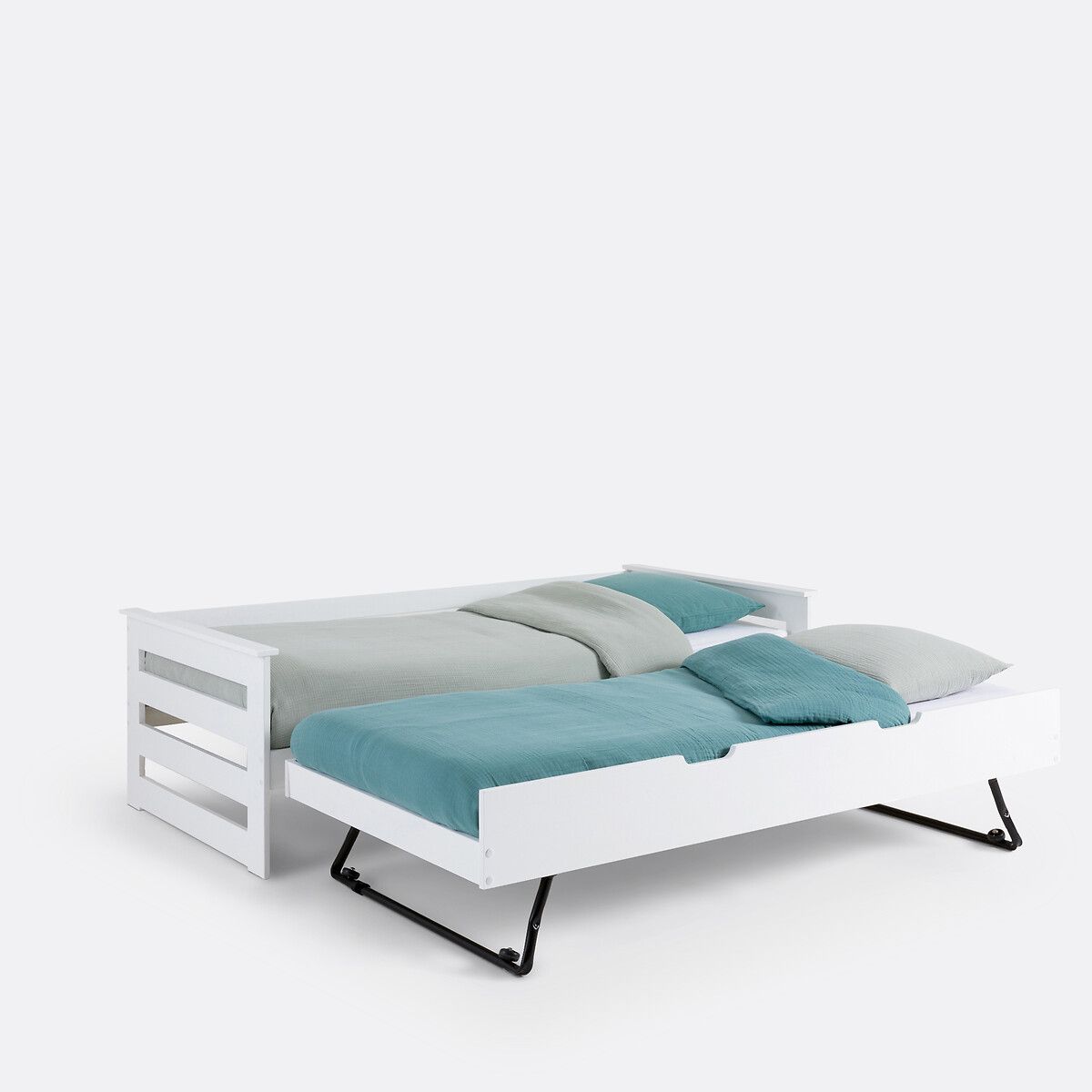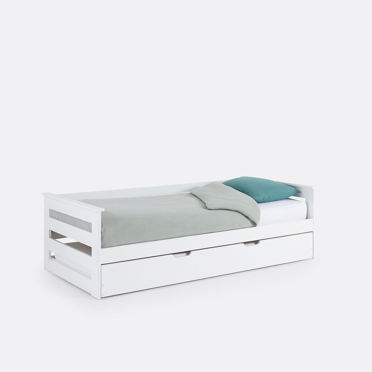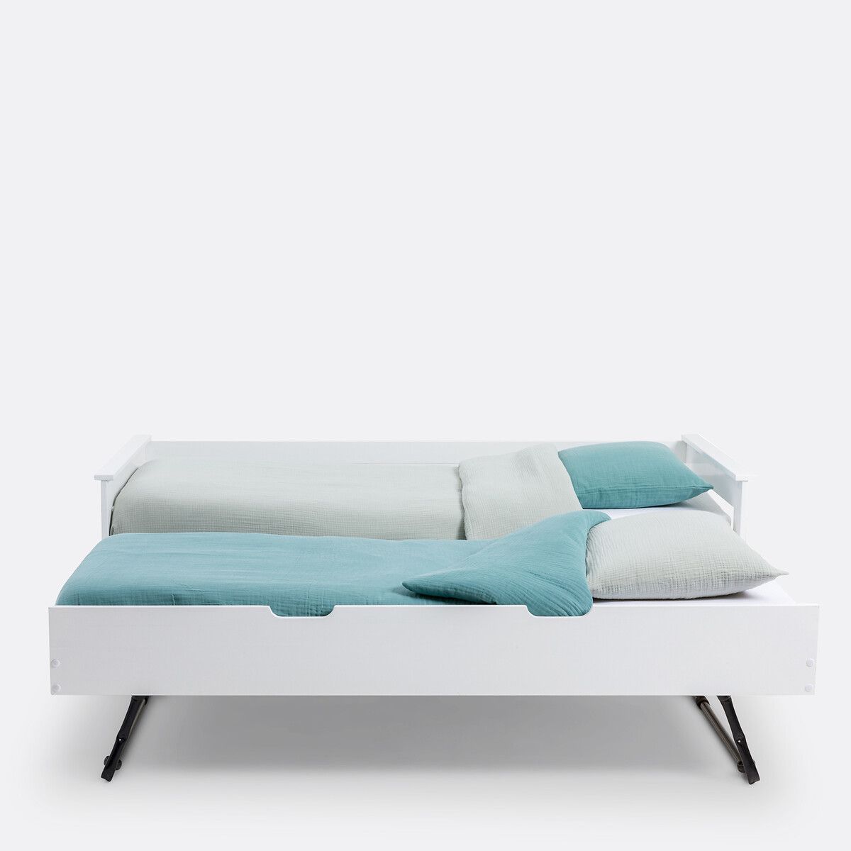 — Выдвижная секция на колесах с реечным дном (спальное место 90 x 190 см) с подвижным изножьем, которое позволяет трансформировать односпальную кровать в двухспальную.